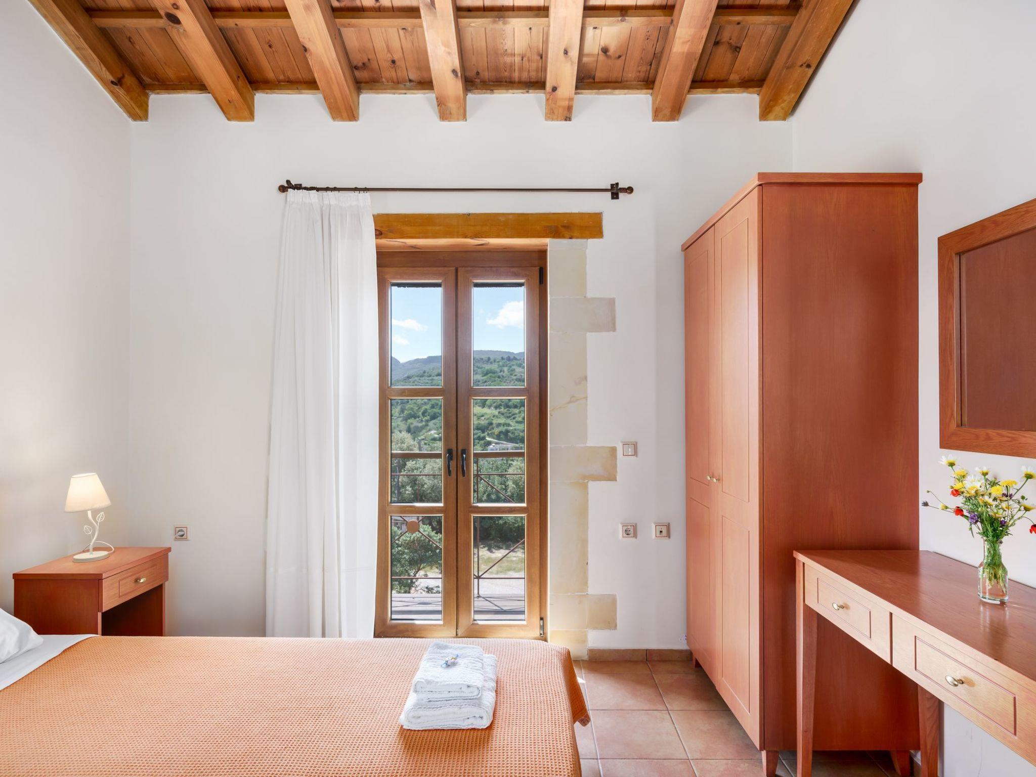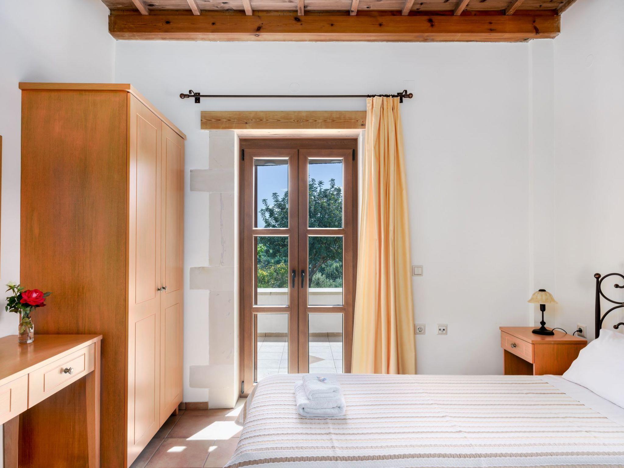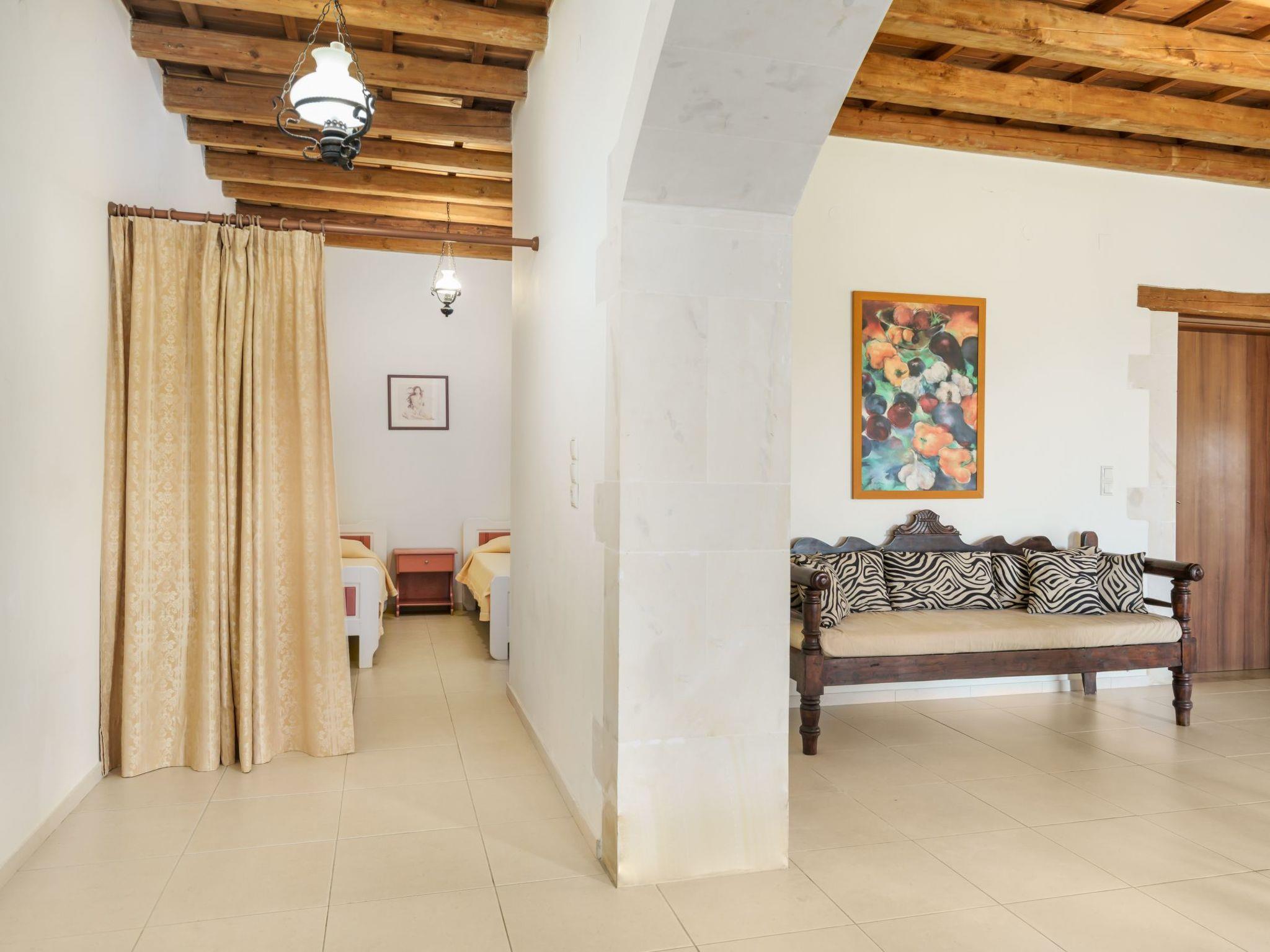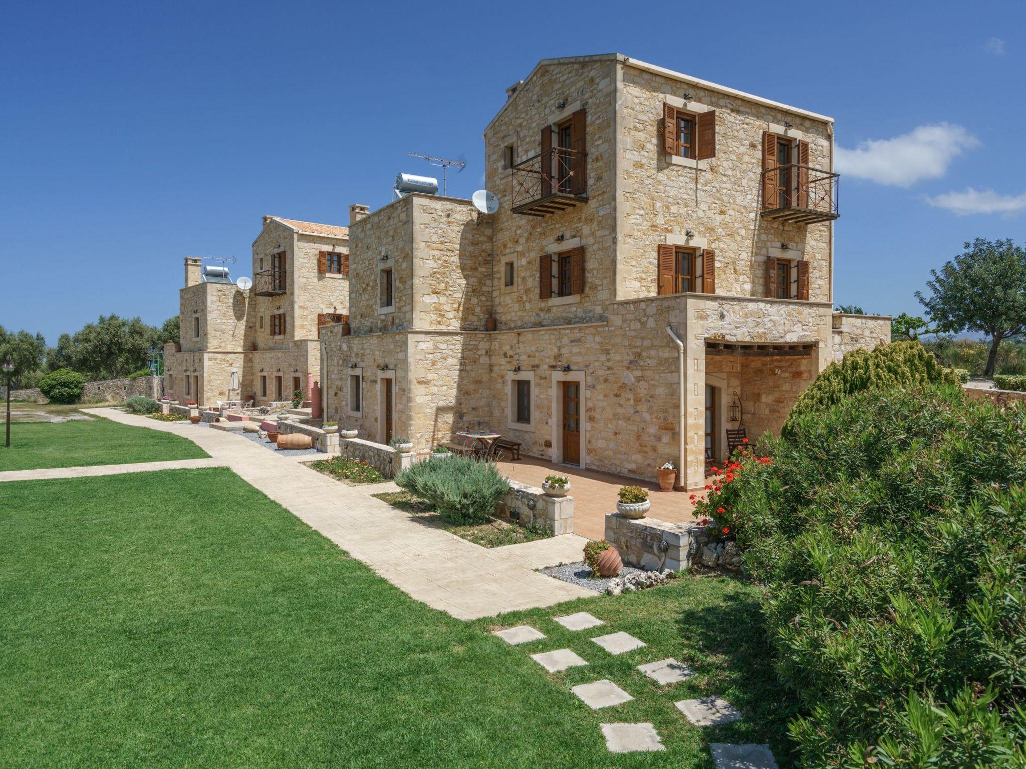 The exterior boasts 8 acres of private, fenced land, featuring an 85 sq. m. swimming pool. Guests can also enjoy fresh fruits and vegetables from the garden and cook with locally sourced Cretan olive oil provided upon arrival. A welcome pack with raki, wine, fresh fruits, and Cretan herbs will also greet you upon your stay.