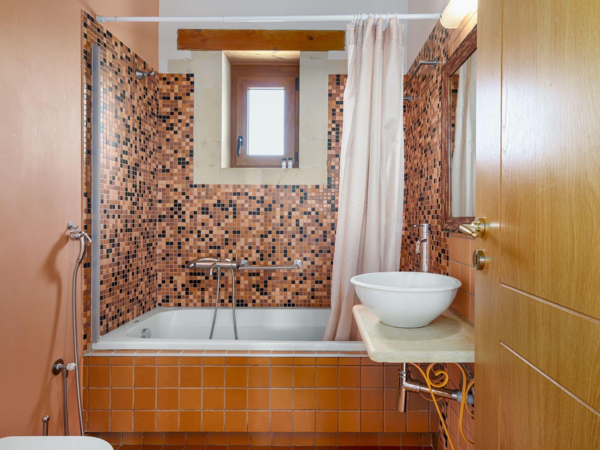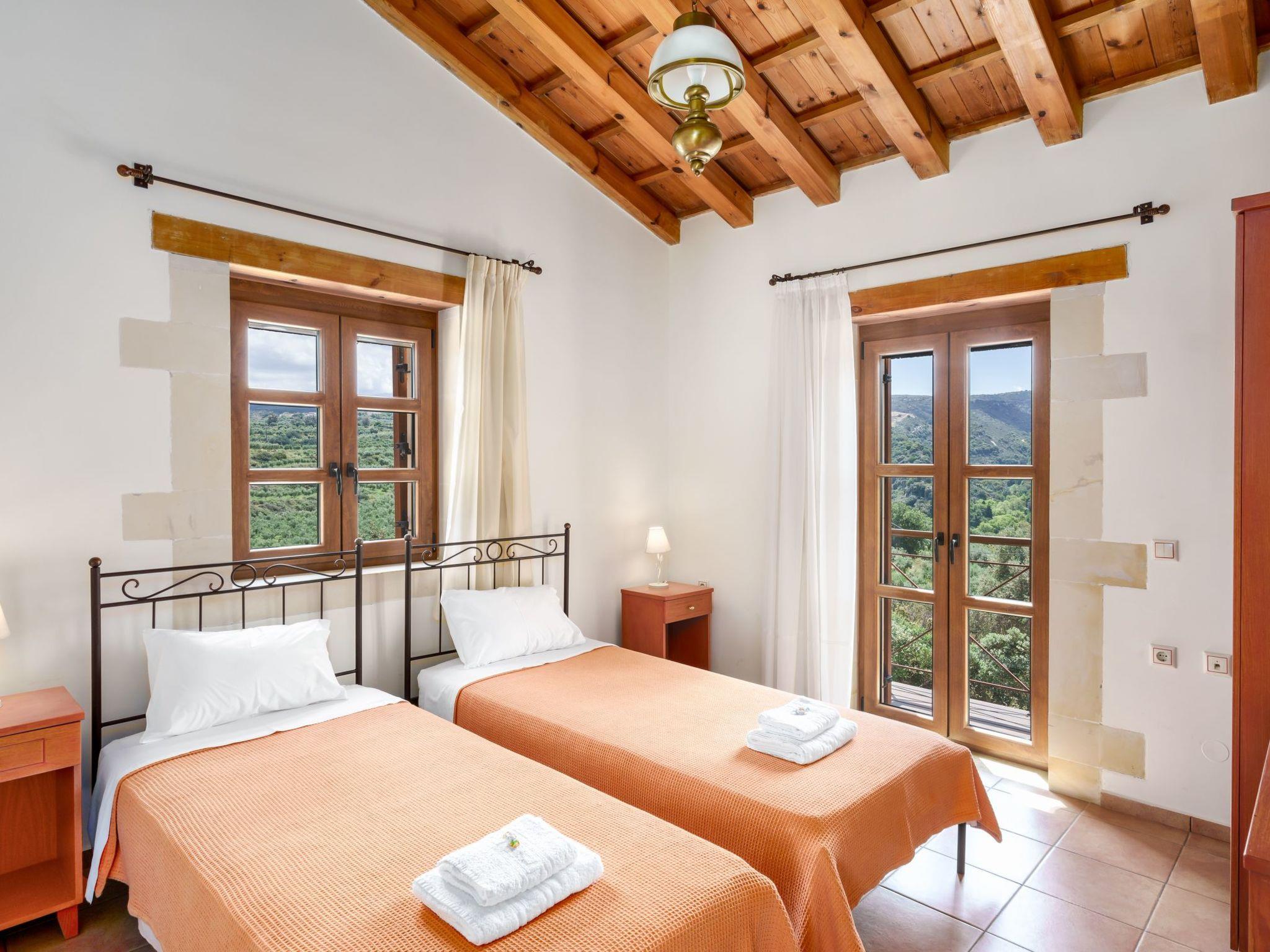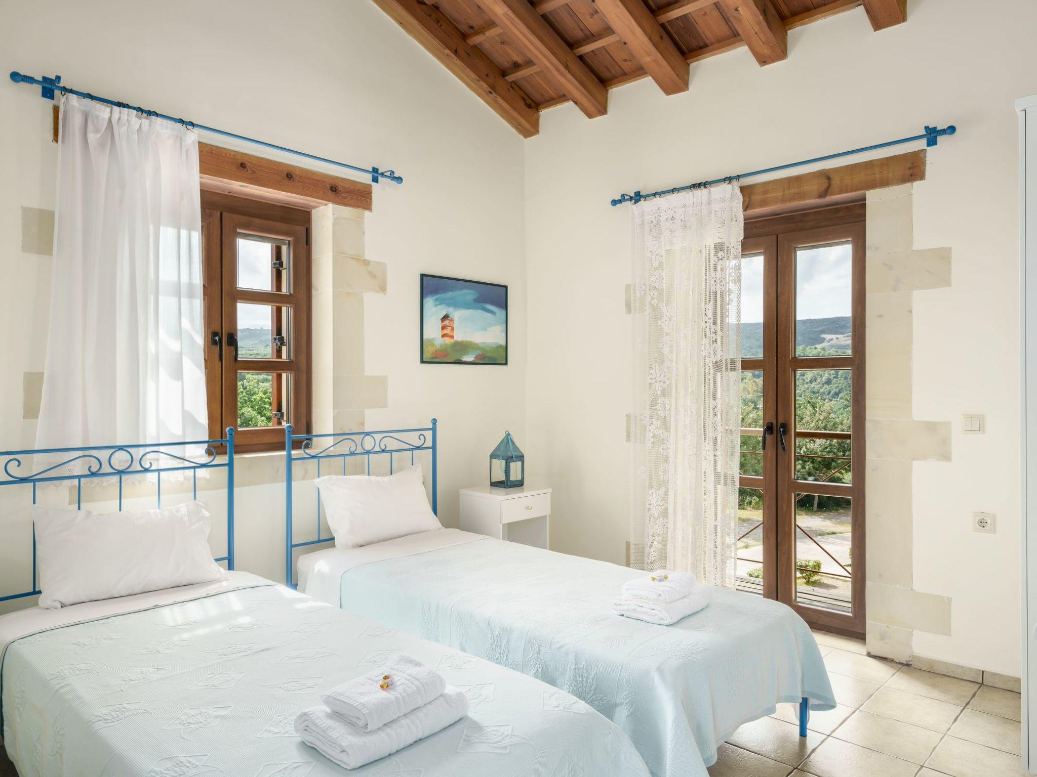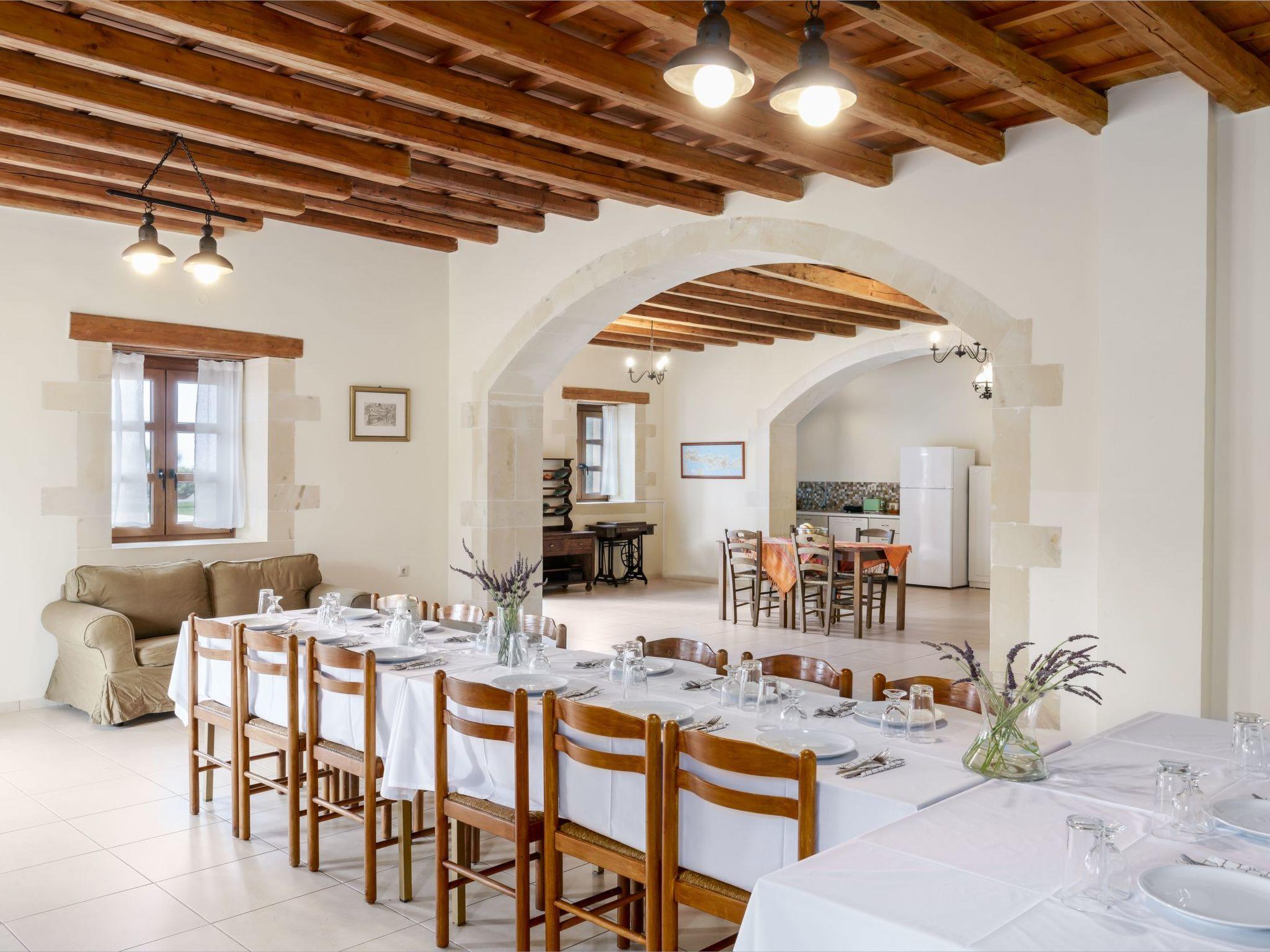 The exterior boasts 8 acres of private, fenced land, featuring an 85 sq. m. swimming pool. Guests can also enjoy fresh fruits and vegetables from the garden and cook with locally sourced Cretan olive oil provided upon arrival. A welcome pack with raki, wine, fresh fruits, and Cretan herbs will also greet you upon your stay.
