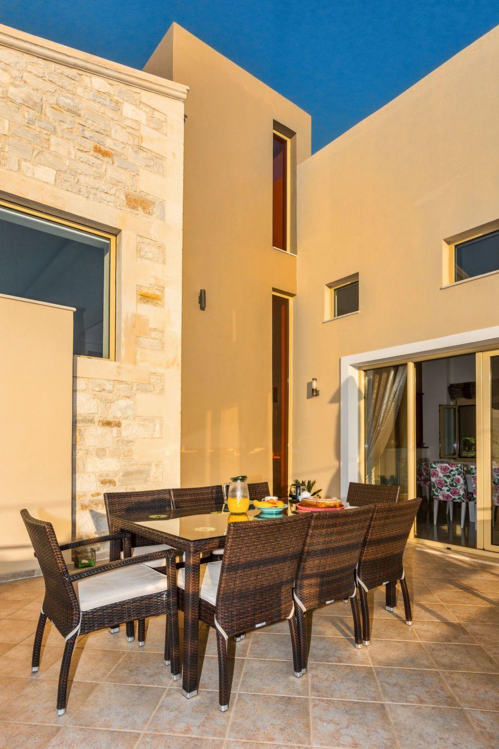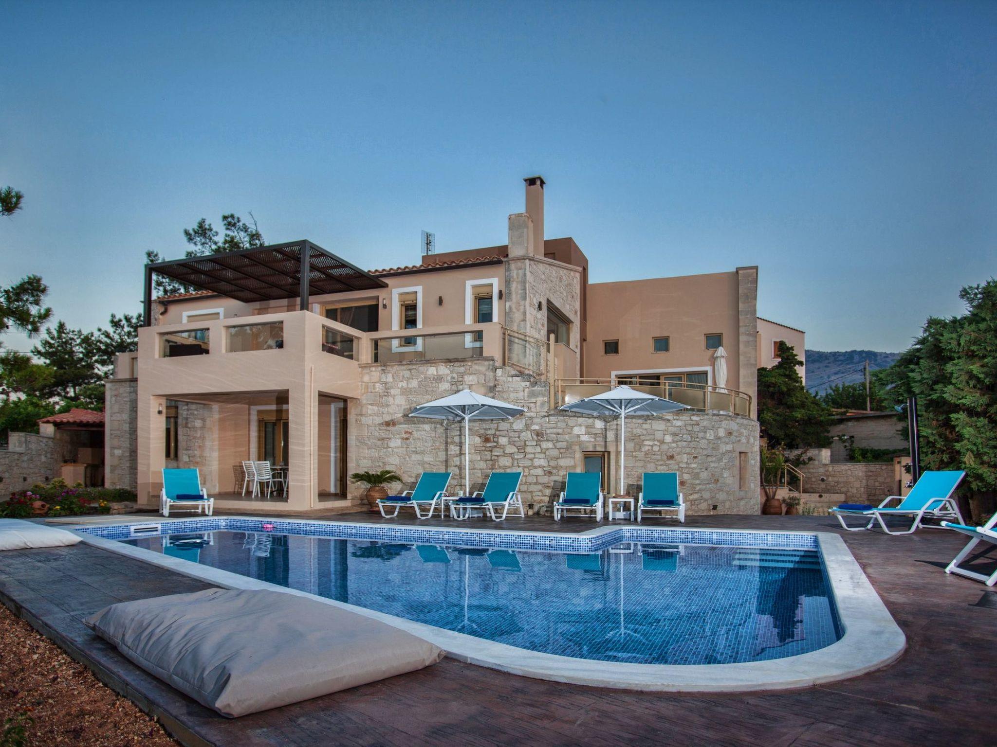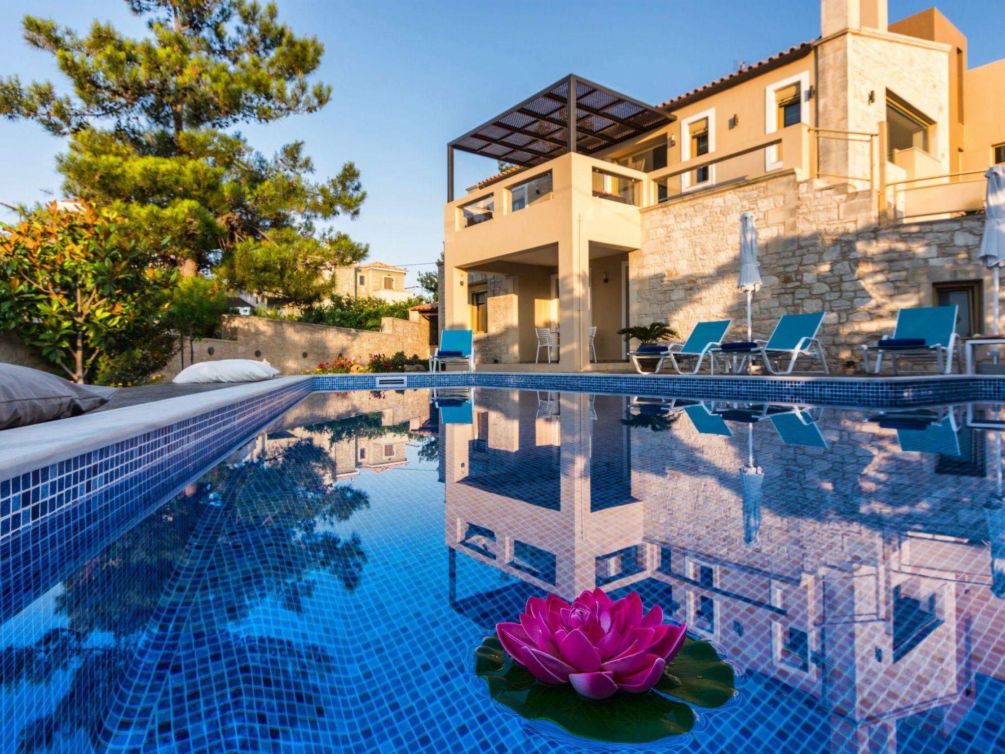 This luxury villa with private pool (approx. 40sqm 1,50m deep with children area 0,60m deep) is situated on the edge of the charming old village of Roussospiti, altitude 300m, 6km inland from Rethymnon. It is quietly positioned and surrounded by lovely gardens 900sqm plot of land and pretty stone walls, is perfect for visitors who are looking for peace, relaxation and comfort.