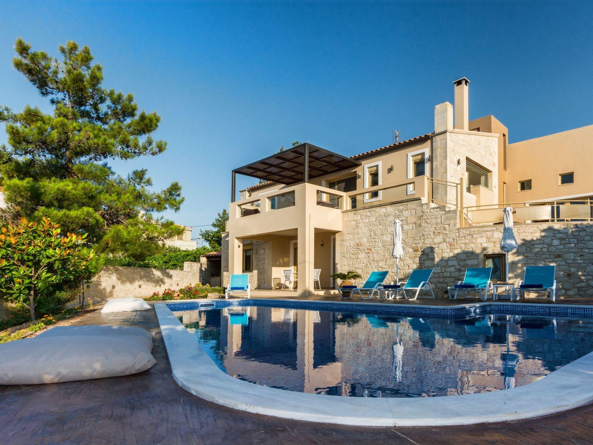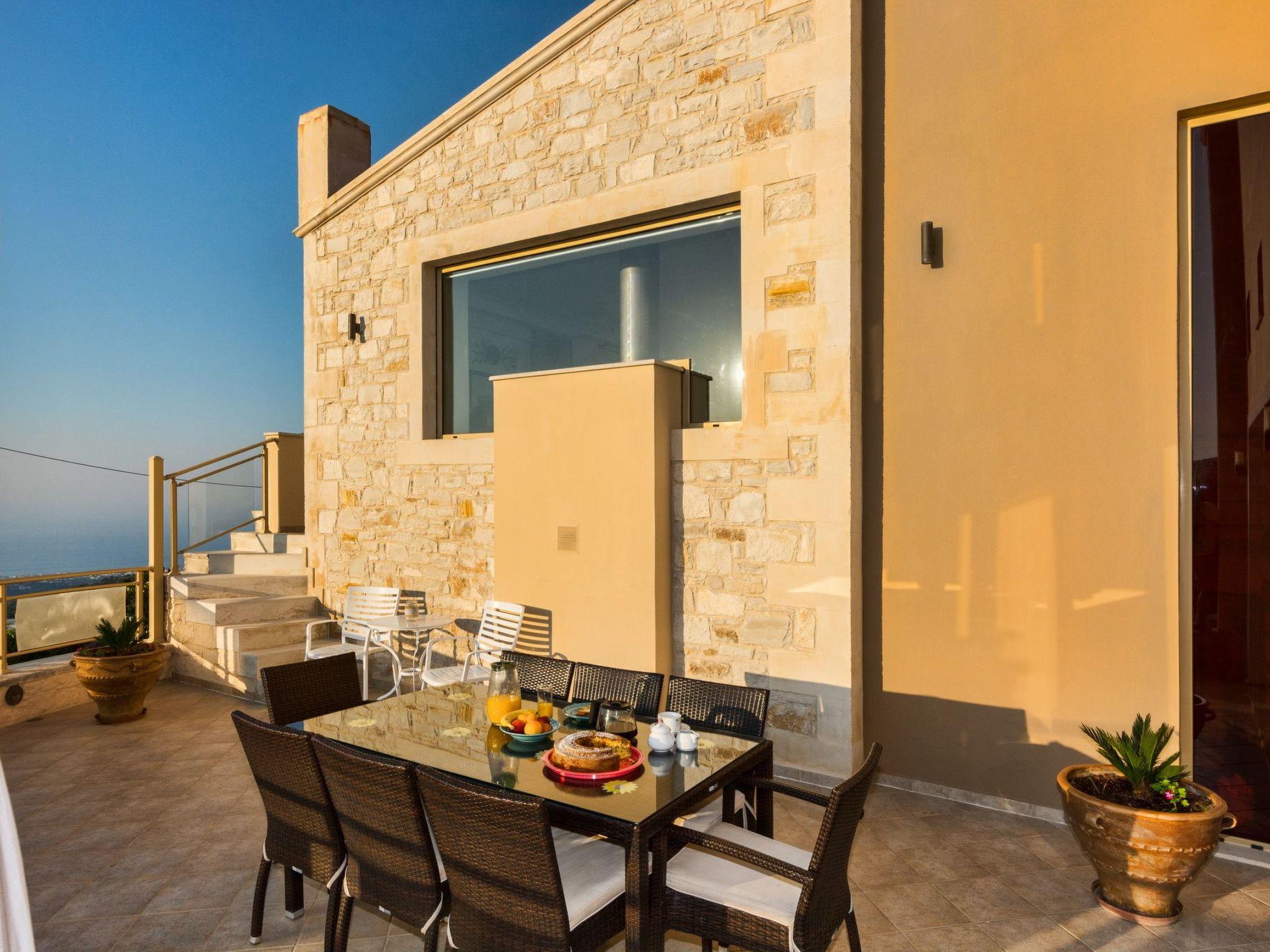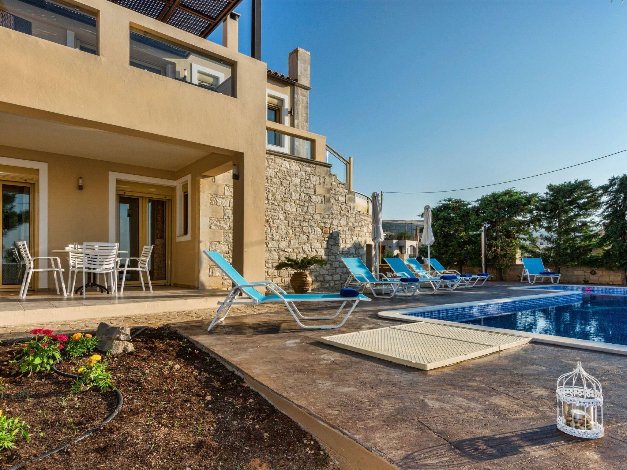 This luxury villa with private pool (approx. 40sqm 1,50m deep with children area 0,60m deep) is situated on the edge of the charming old village of Roussospiti, altitude 300m, 6km inland from Rethymnon. It is quietly positioned and surrounded by lovely gardens 900sqm plot of land and pretty stone walls, is perfect for visitors who are looking for peace, relaxation and comfort.