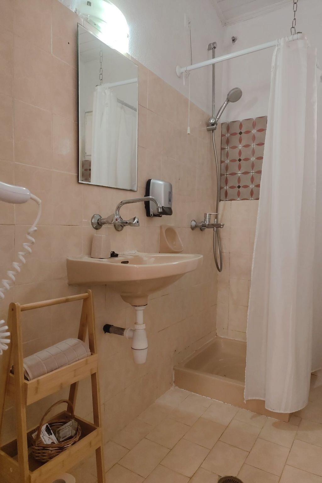 Amalia Ena has two bedrooms: one double with a balcony door opening to the front terrace and one twin with a back window overlooking the olive grove.