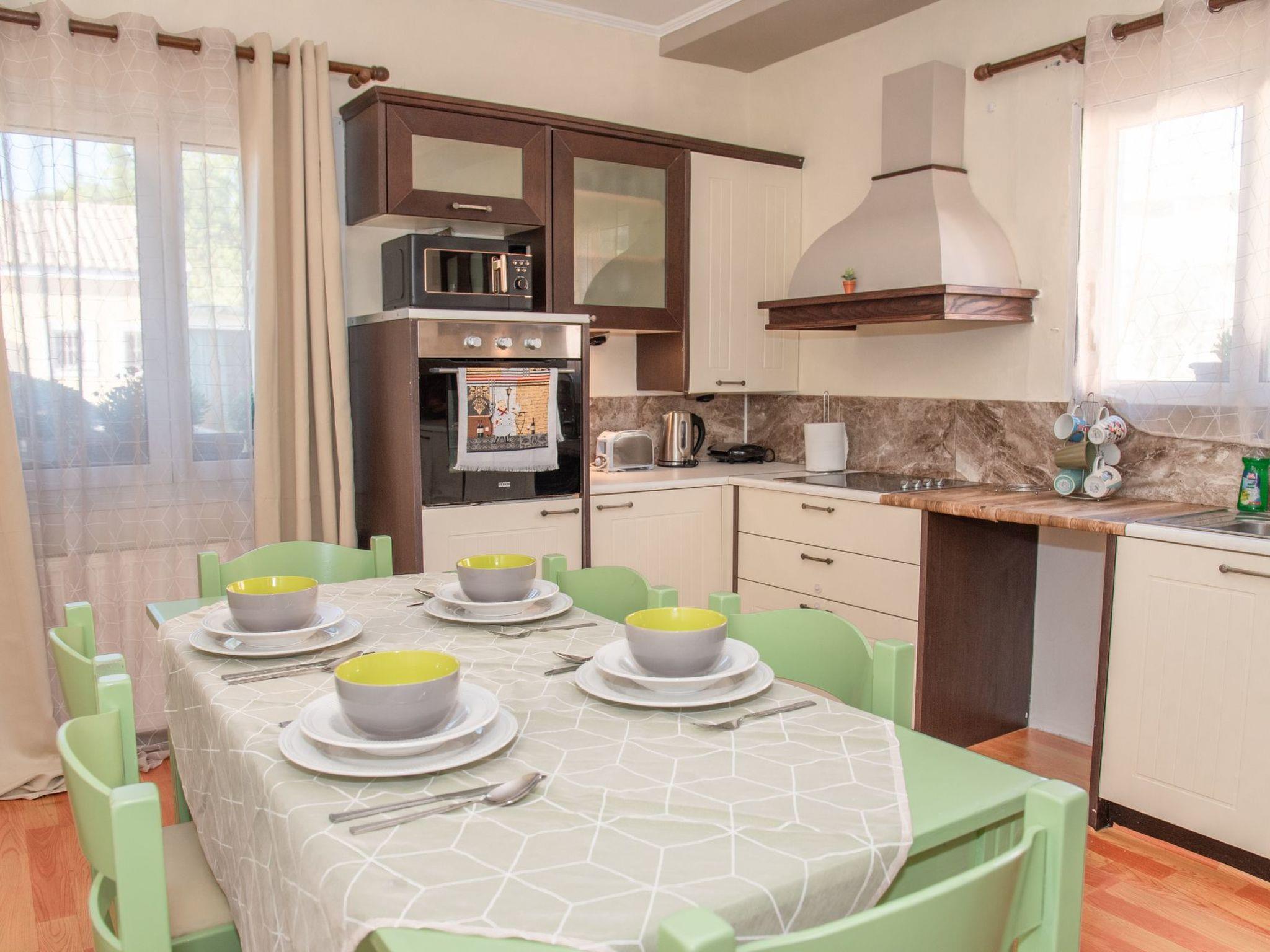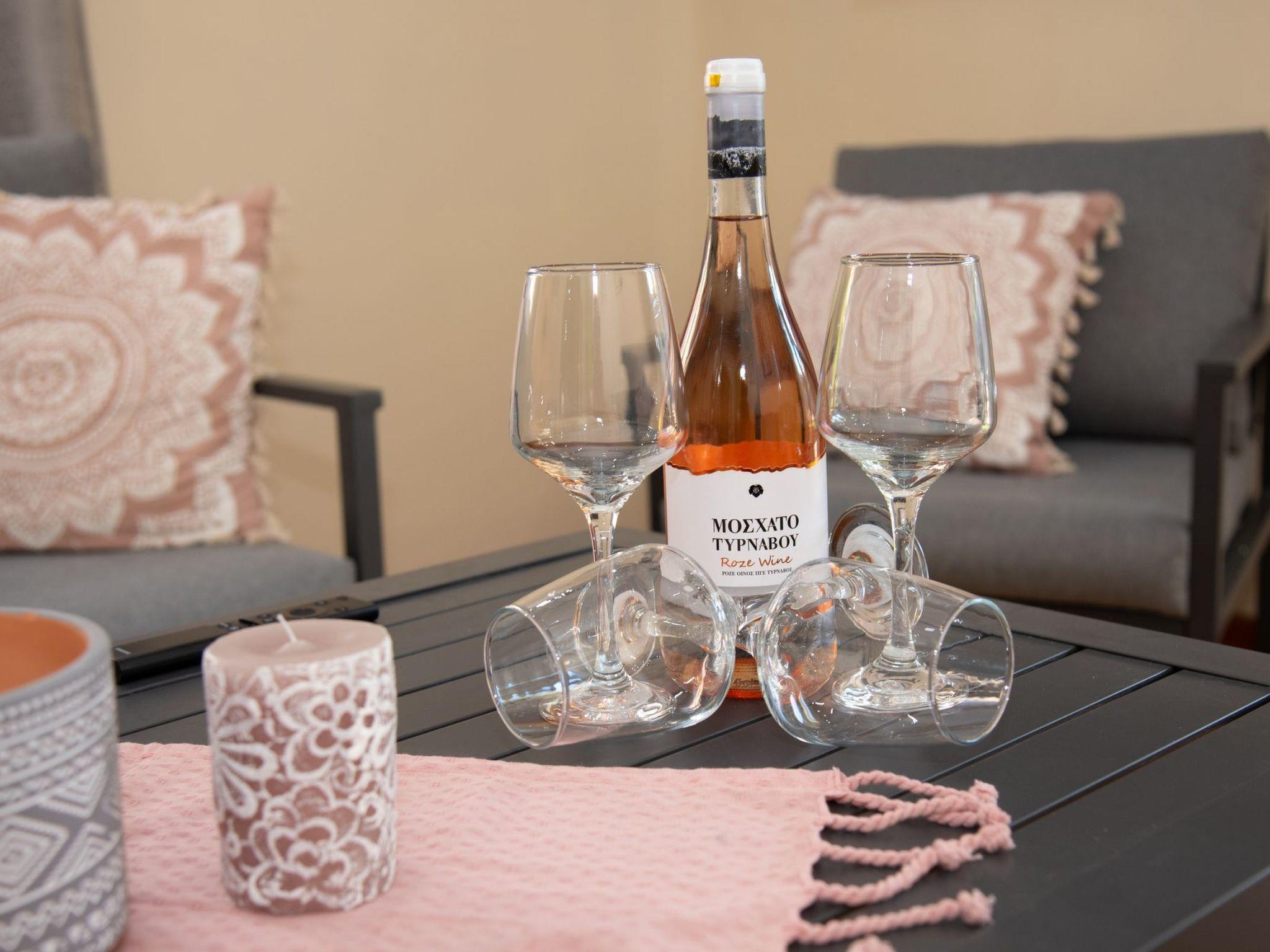 The well-equipped kitchen, featuring a dishwasher and all amenities for breakfast and meal preparation, adds a touch of convenience to your stay. The villa also boasts a cozy living area with a flat-screen TV, creating a perfect spot for relaxation. Fully air-conditioned, Villa Kouros ensures a comfortable environment throughout your stay.