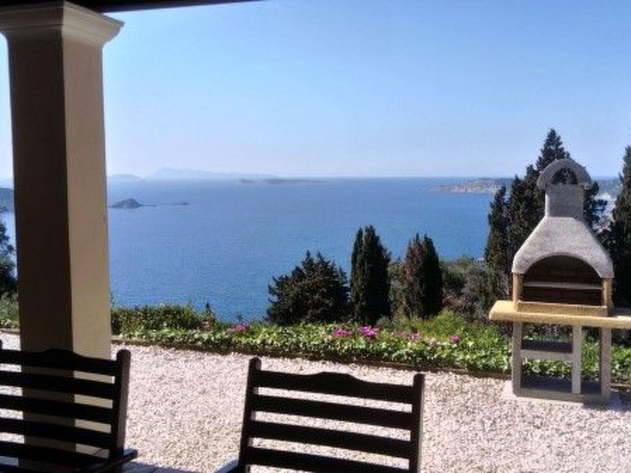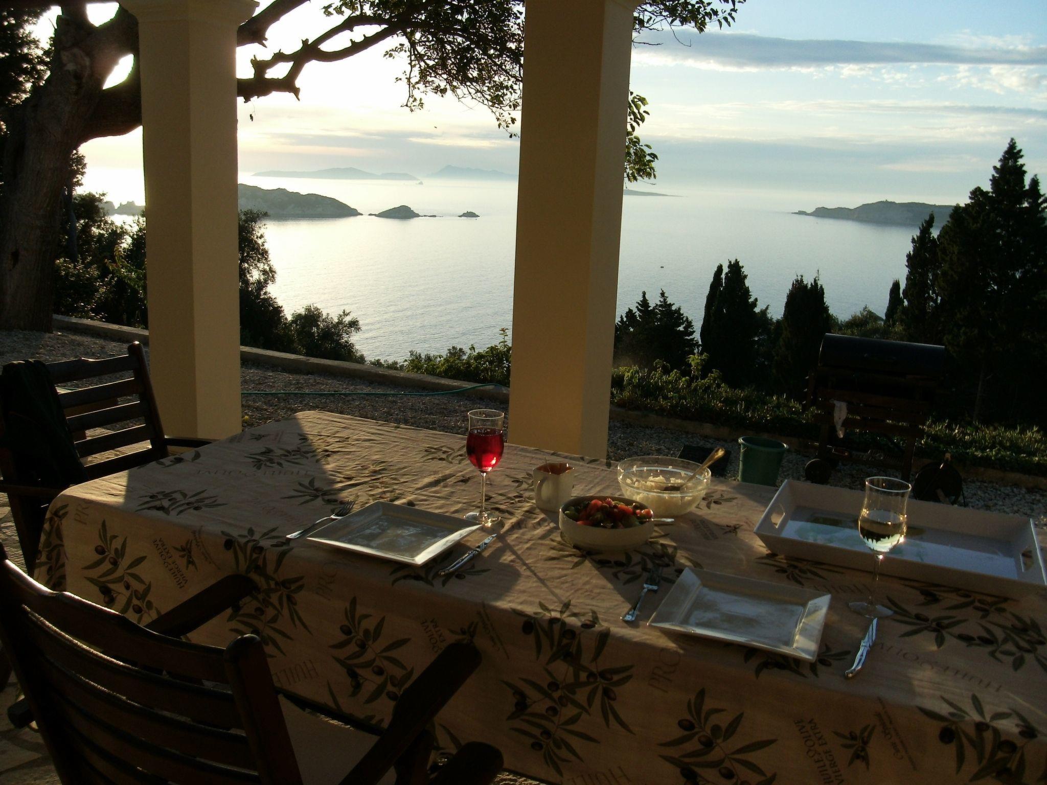 Villa Dysis, recently built amidst olive groves, has a fantastic, panoramic view of the sea and nearby islets. This makes this place a paradise for all those looking for peace & nature. Every evening you can enjoy the most beautiful sunsets. On the 2000 m2 plot there are plenty of opportunities to sunbathe or romp around with the children. On the lower part of the land, fruit trees were planted with native fruits such as lemons, oranges, figs, almonds and pomegranates. The cosy village of Afionas is 100m walking distance from the house and has many taverns and restaurants. The village of Afionas offers phenomenal sea views : Agios Georgios on one side, Arillas on the other, and is widely known for its beautiful sunsets. The resorts of Agios Georgios & Arillas have blue flag beaches with many water sports facilities and numerous restaurants, cafes and shops.