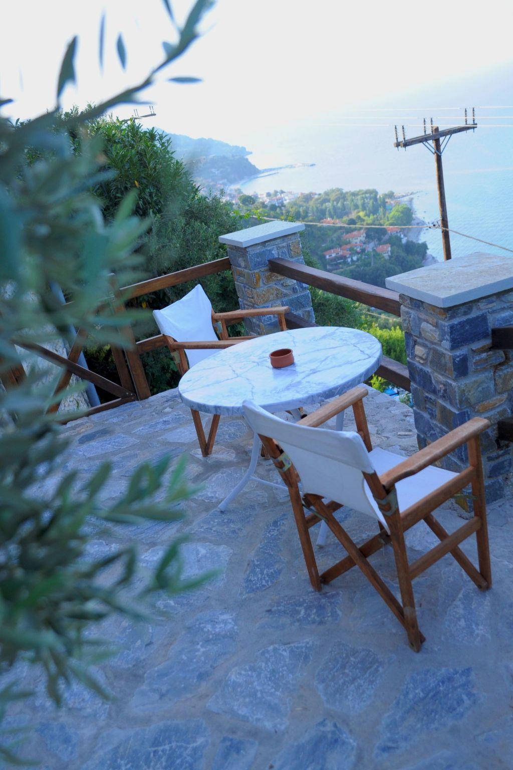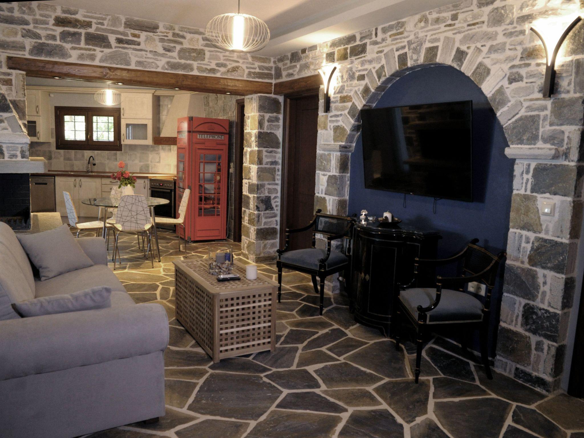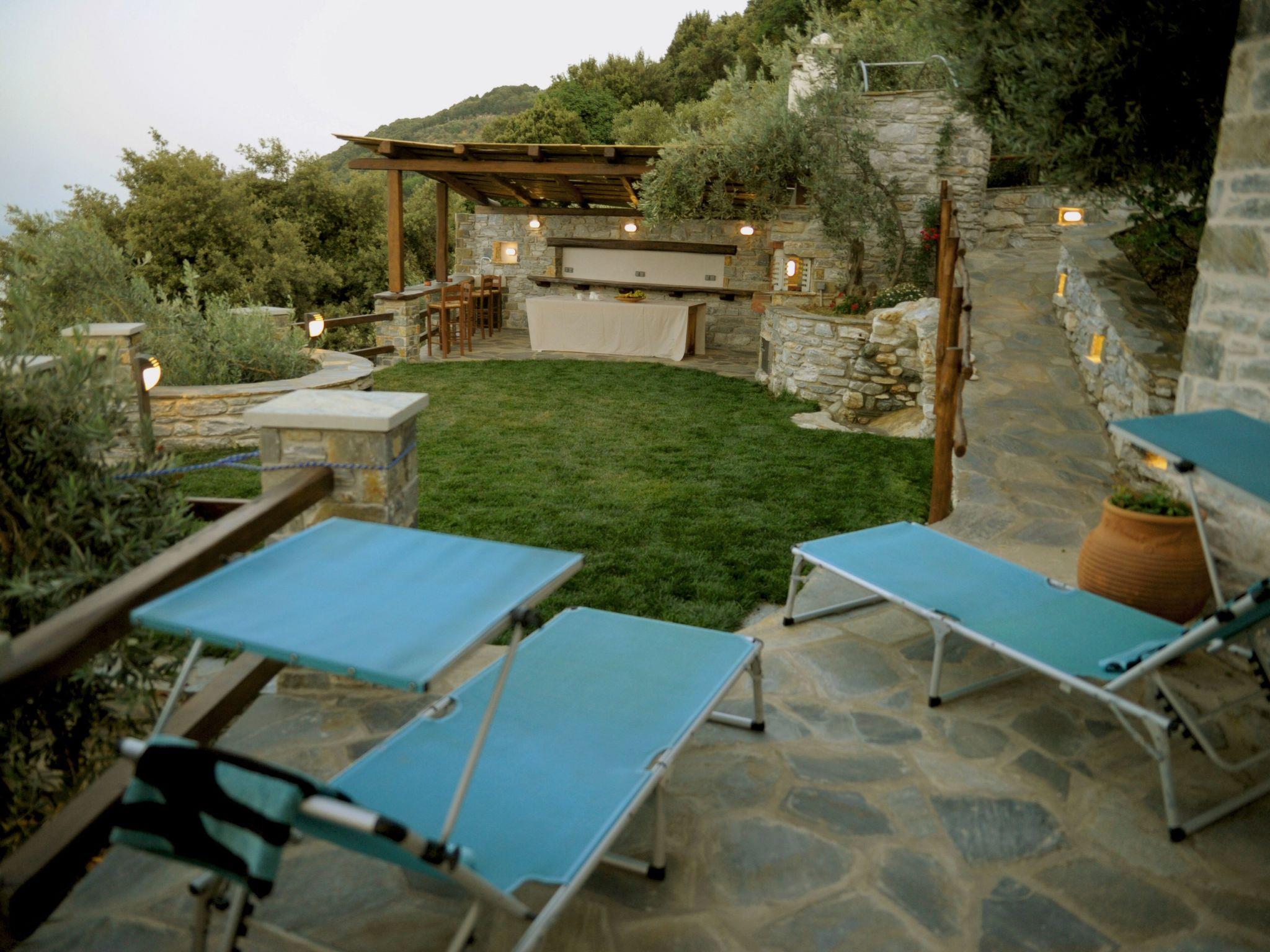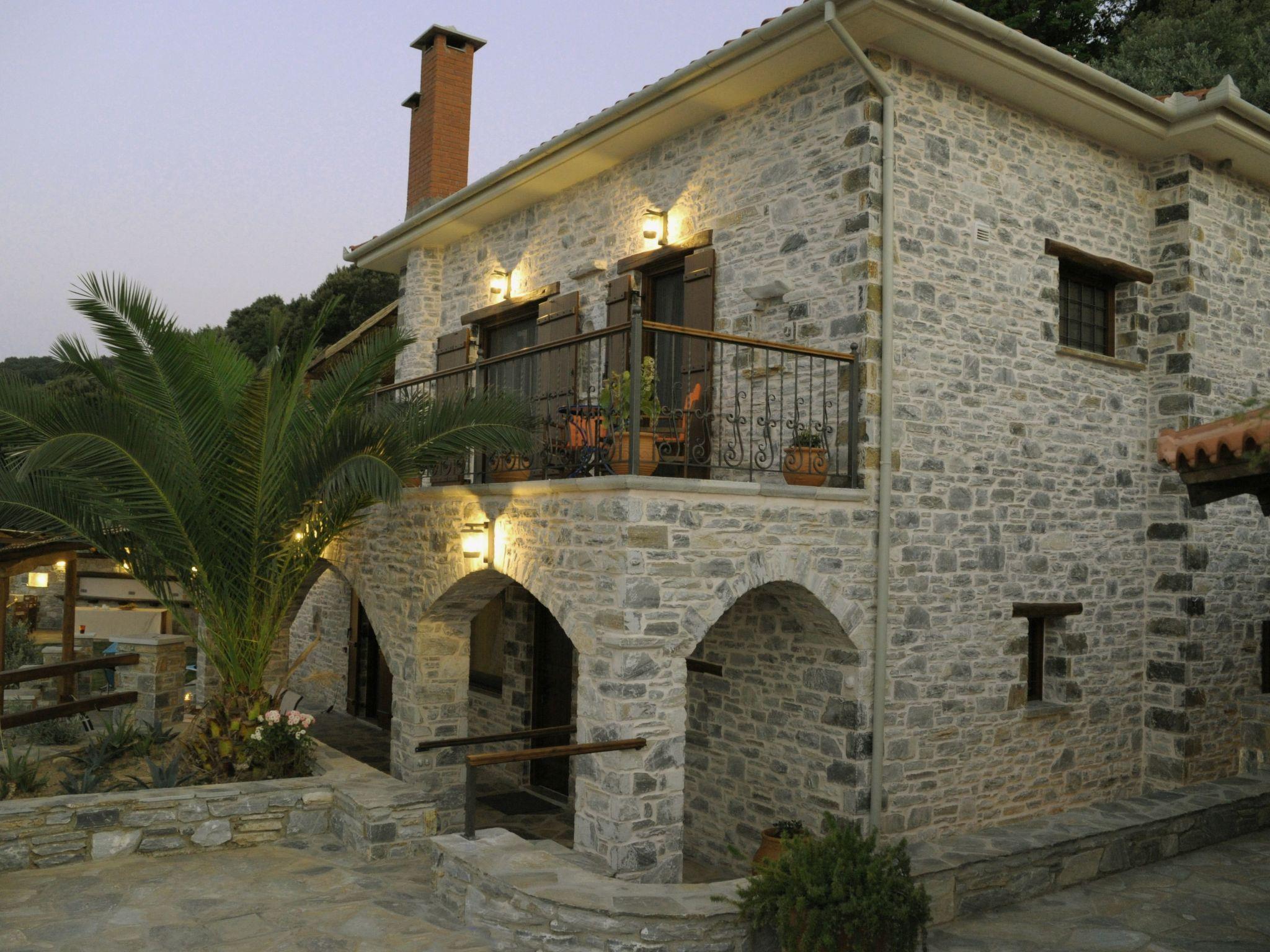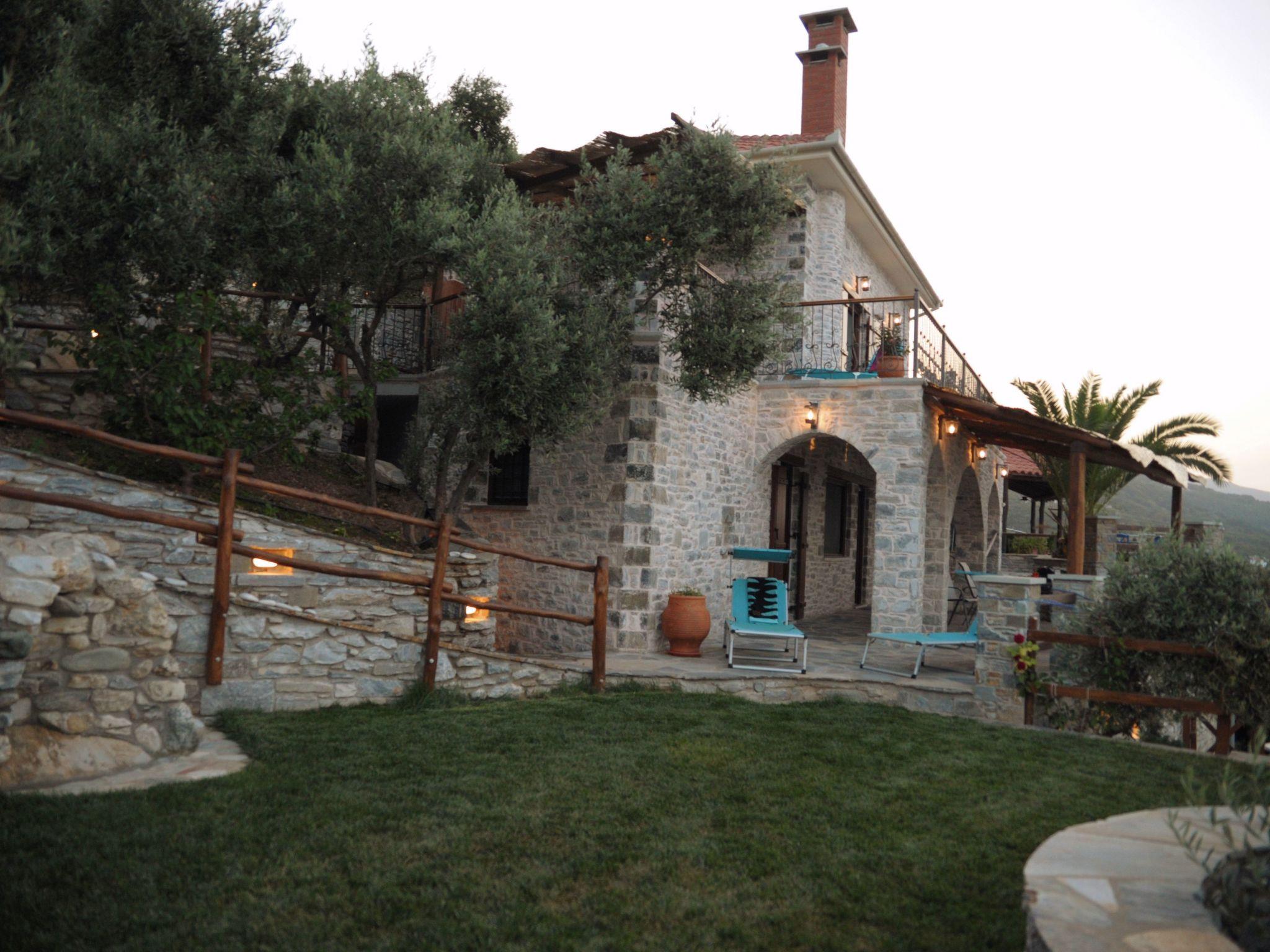 The villa is built of stone in 2021 in the foothills of Pelion, Greece. It is surrounded by green mountains and at the same time 2 km from the transparent Aegean Sea. The climate is very pleasant even when it is very hot. The view is of the sea and the mountain. From the villa there are hiking trails in the mountain where the fauna is very varied and very beautiful. In the surrounding area there are several small villages characteristic of Pelion with small restaurants ( Greek taverns ) where you can try tasty, traditional local dishes. The beaches are clean and equipped to satisfy even the most demanding travellers. You can visit small coves and bathe in the clear waters and away from the crowds.
