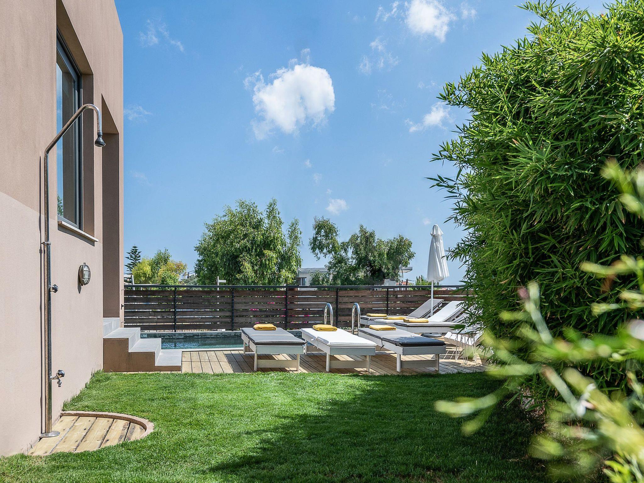 The closest sandy beach (Kalamaki) is in a walking distance of 1 km from the villa. A number of convenient shops and services (mini market, pharmacy, tavernas, bus station) are available in the neighborhood at a walking distance of less than 5 min. There is also a fantastic greek Taverna just in a few meters away from the house