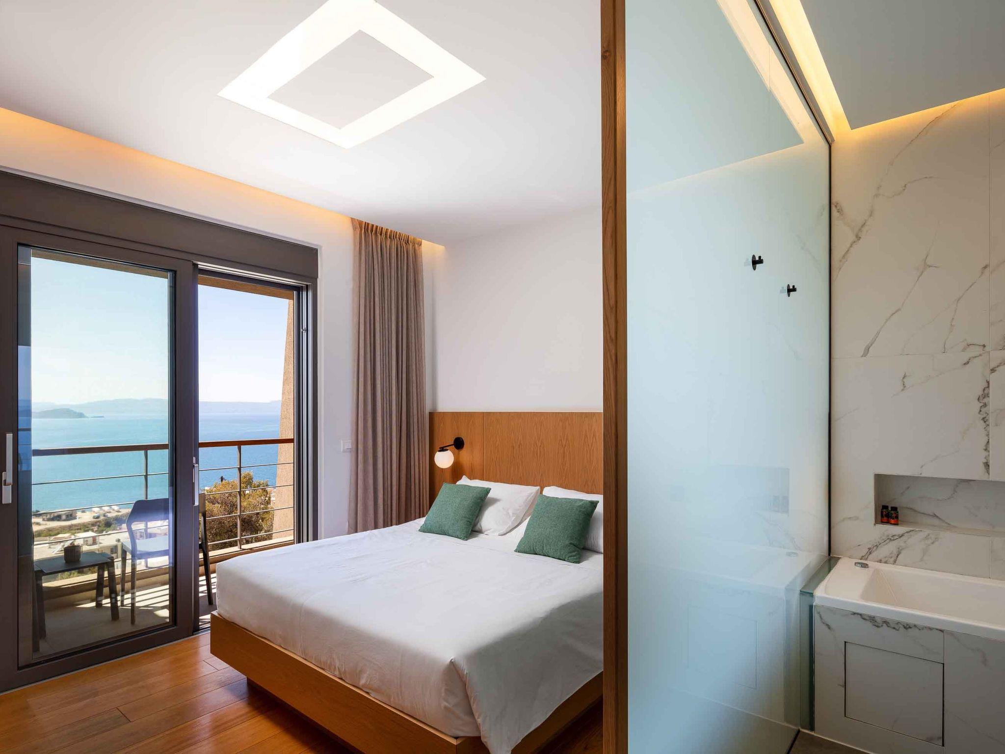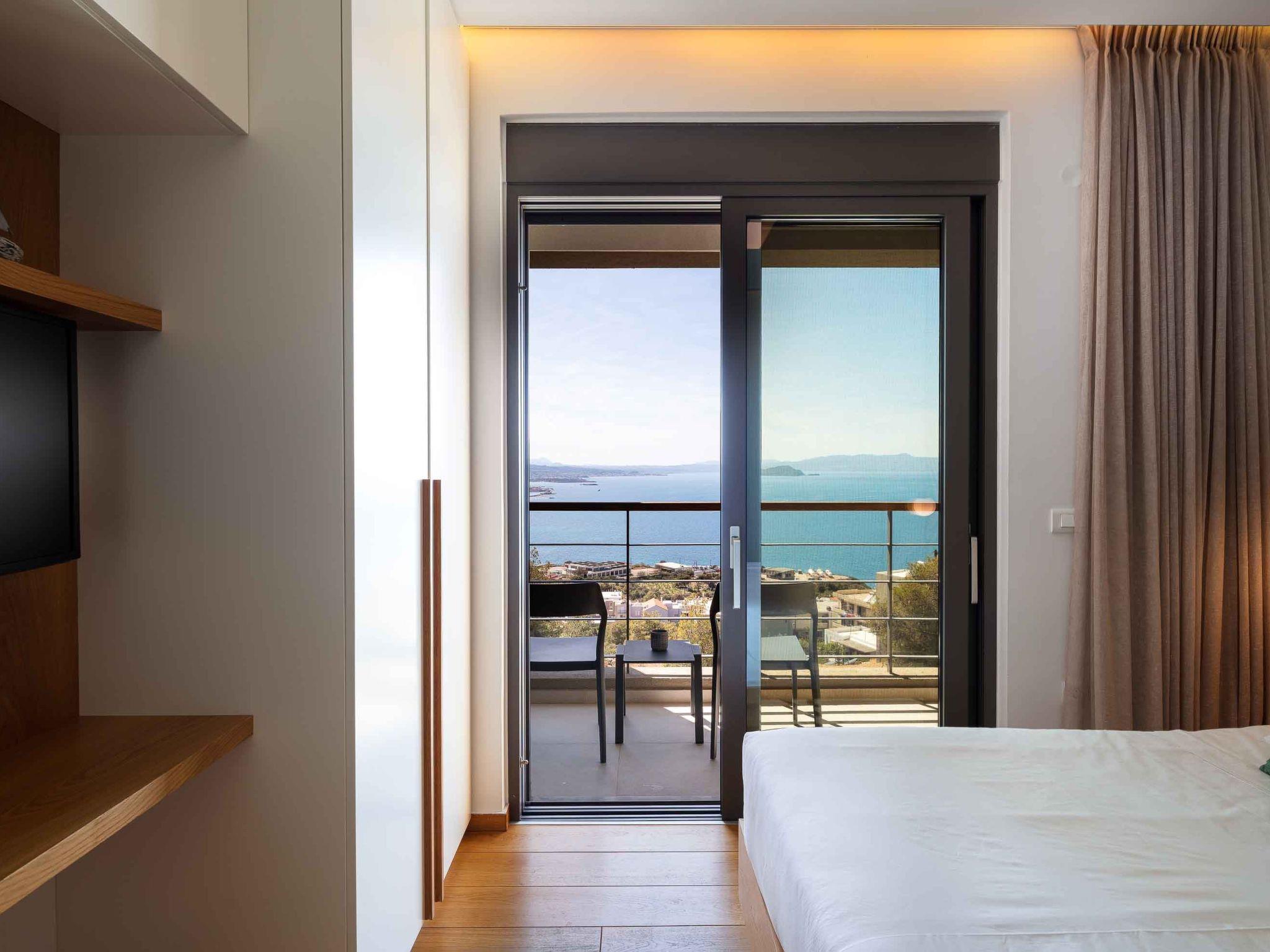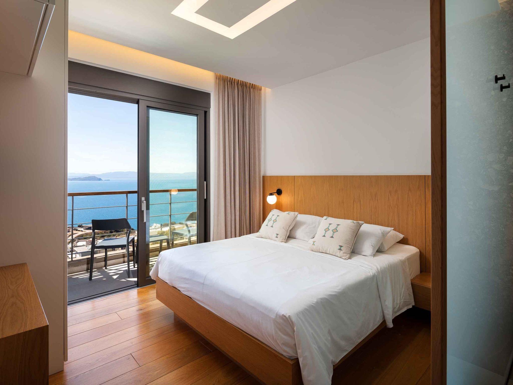 Bedroom 1: Double size bed (1.60x2.00), A/C, 32’’ Smart Satellite TV, ensuite bathroom with bathtub, hairdryer, safe box, private balcony, seaview