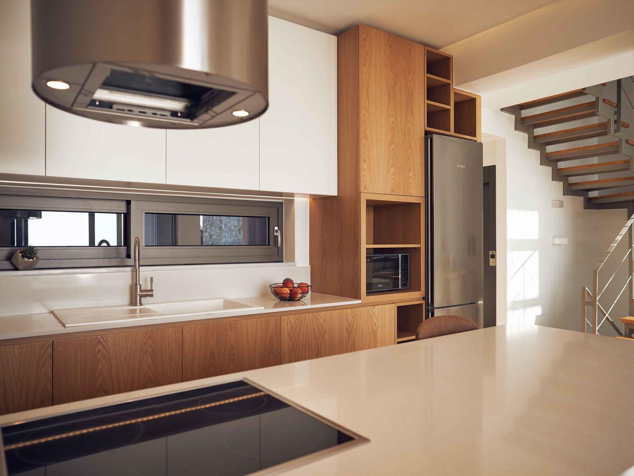 Entering the balcony, you will see a view that will impress you! Swimming in the outdoor pool or drinking a glass of wine above the sea will offer you the most unforgettable experience that you may ever have. Sunbeds, showers, and a table with chairs complete the outdoor area. The selected choice of earthy colors creates a warm place that lets your kids swim with safety as there is a safe shallow separate pool for them next to the main pool. On the lower level, there is a secure parking space that is common for both villas, suitable for 2 cars (for each villa).OutdoorsPrivate outdoor swimming pool (16.5sqm and 1.4Om depth)Kids pool( 1.5sqm and 0.80m depth)Sun loungers & umbrellaOutdoor showerBarbeque (gas) with a dining table for 4 guestsGarage for 2 cars
