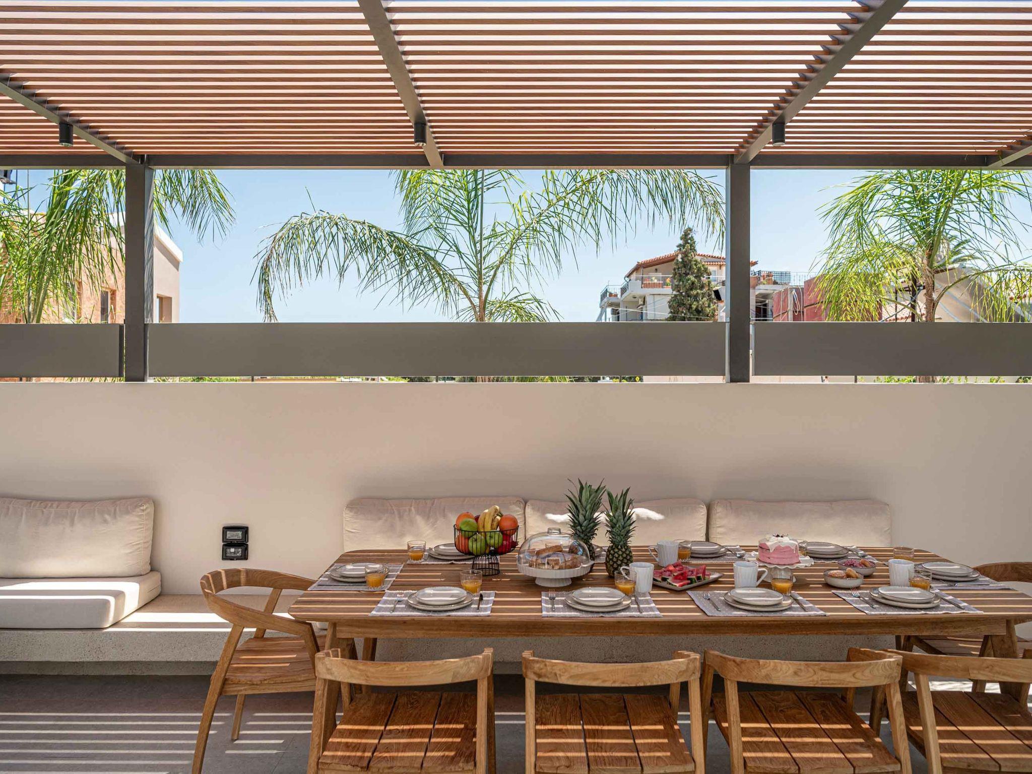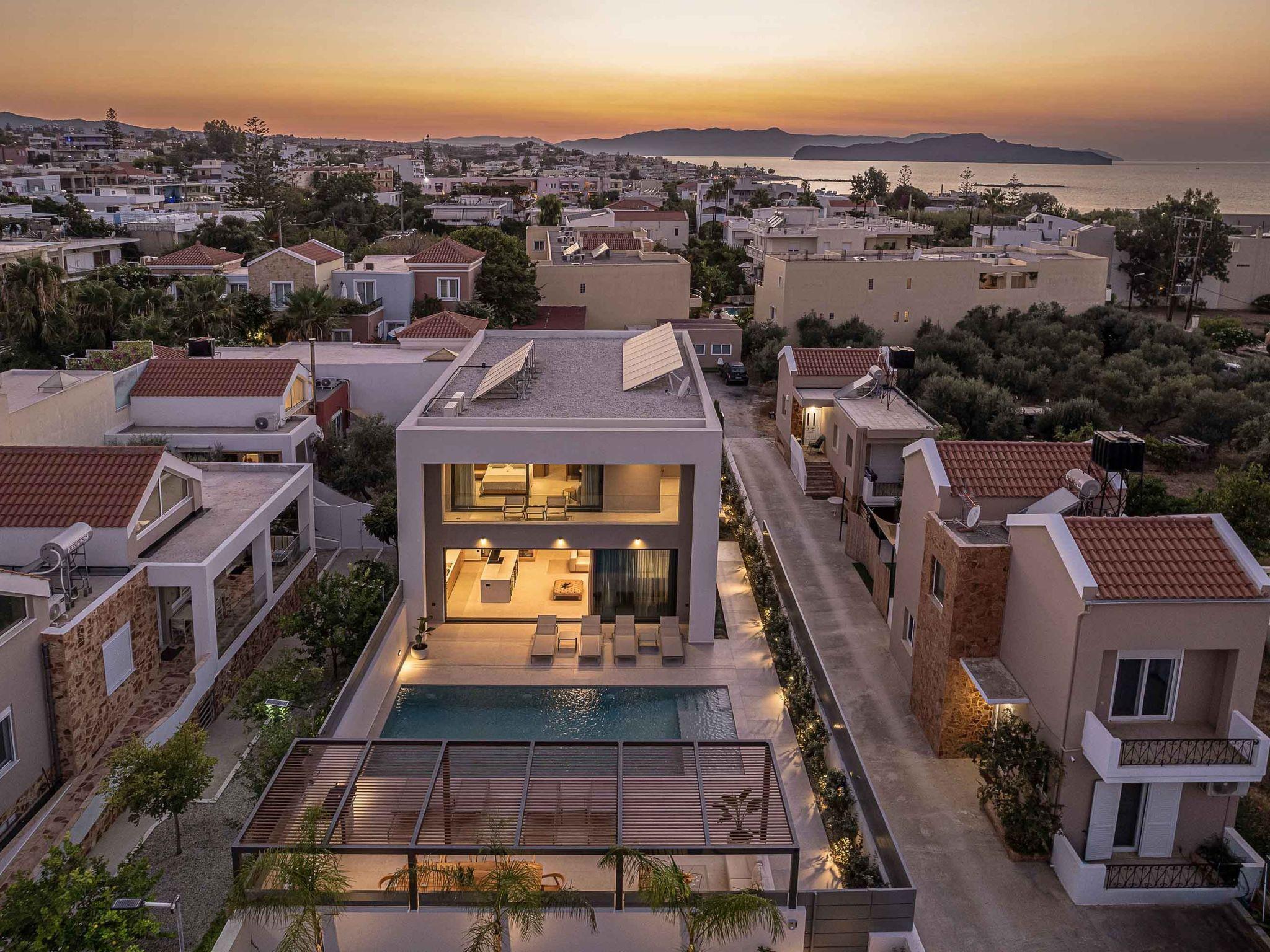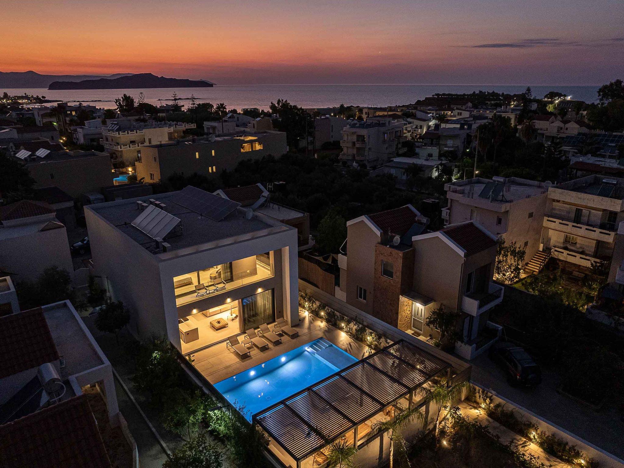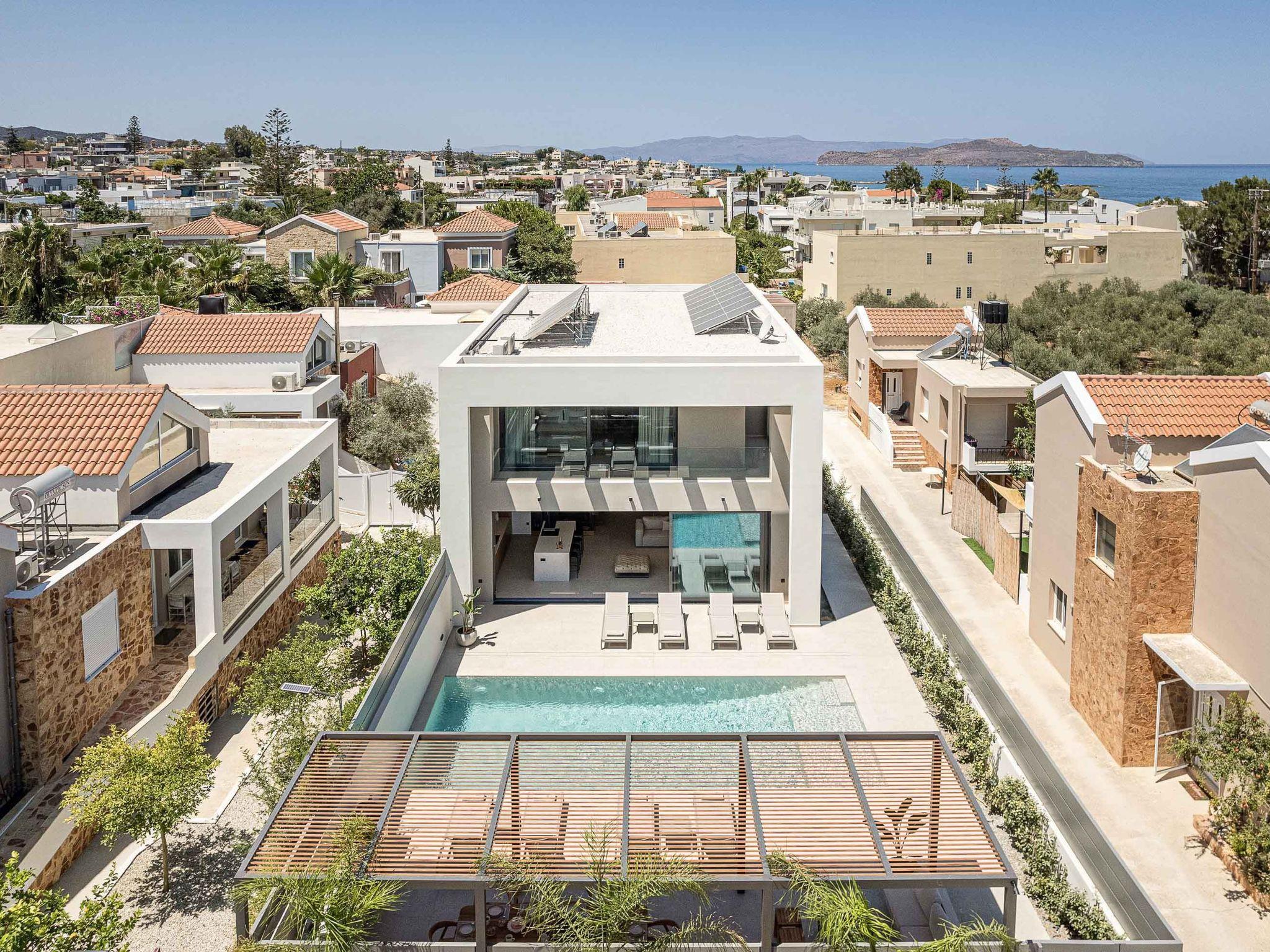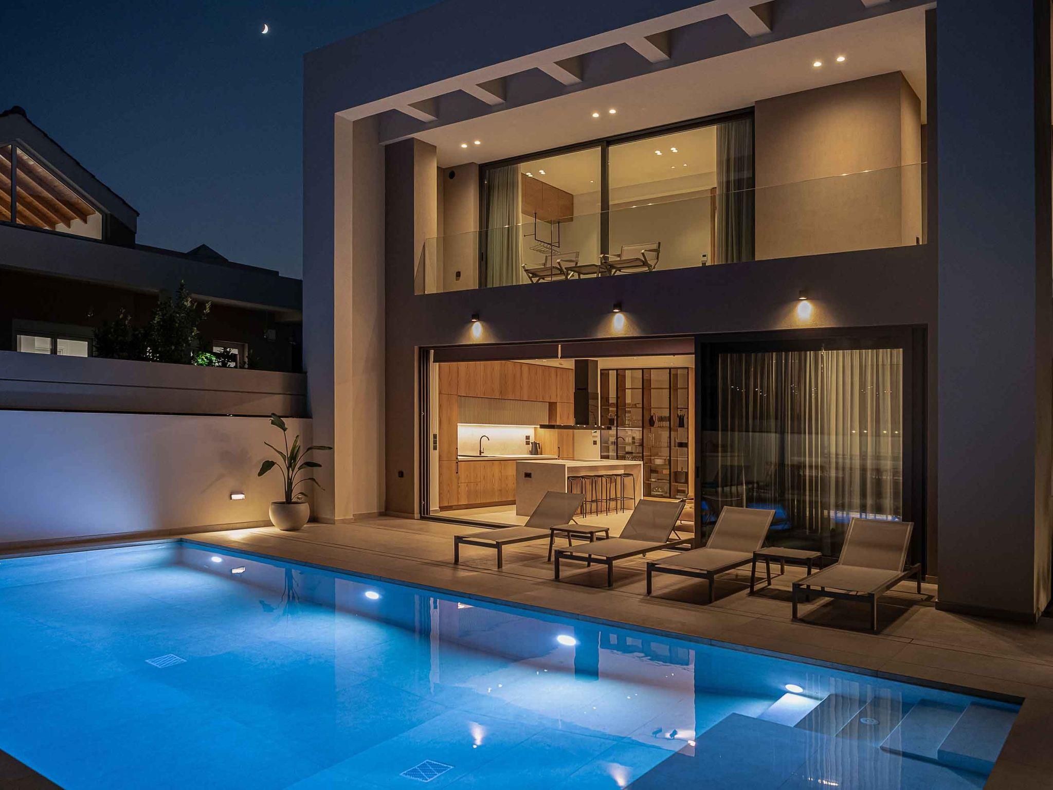 A private, & autonomous villa next to the beach of Agioi Apostoloi. Brand new three-story villa, located in the area of Agioi Apostoloi, ensures a high-quality vacation with amenities that provide you with the perfect getaway only 500m to the sandy beach. Name a better place if you can after visiting this residence. Elegance and contemporary architecture blend and create the perfect combination away from the bustle and hustle of the city center.