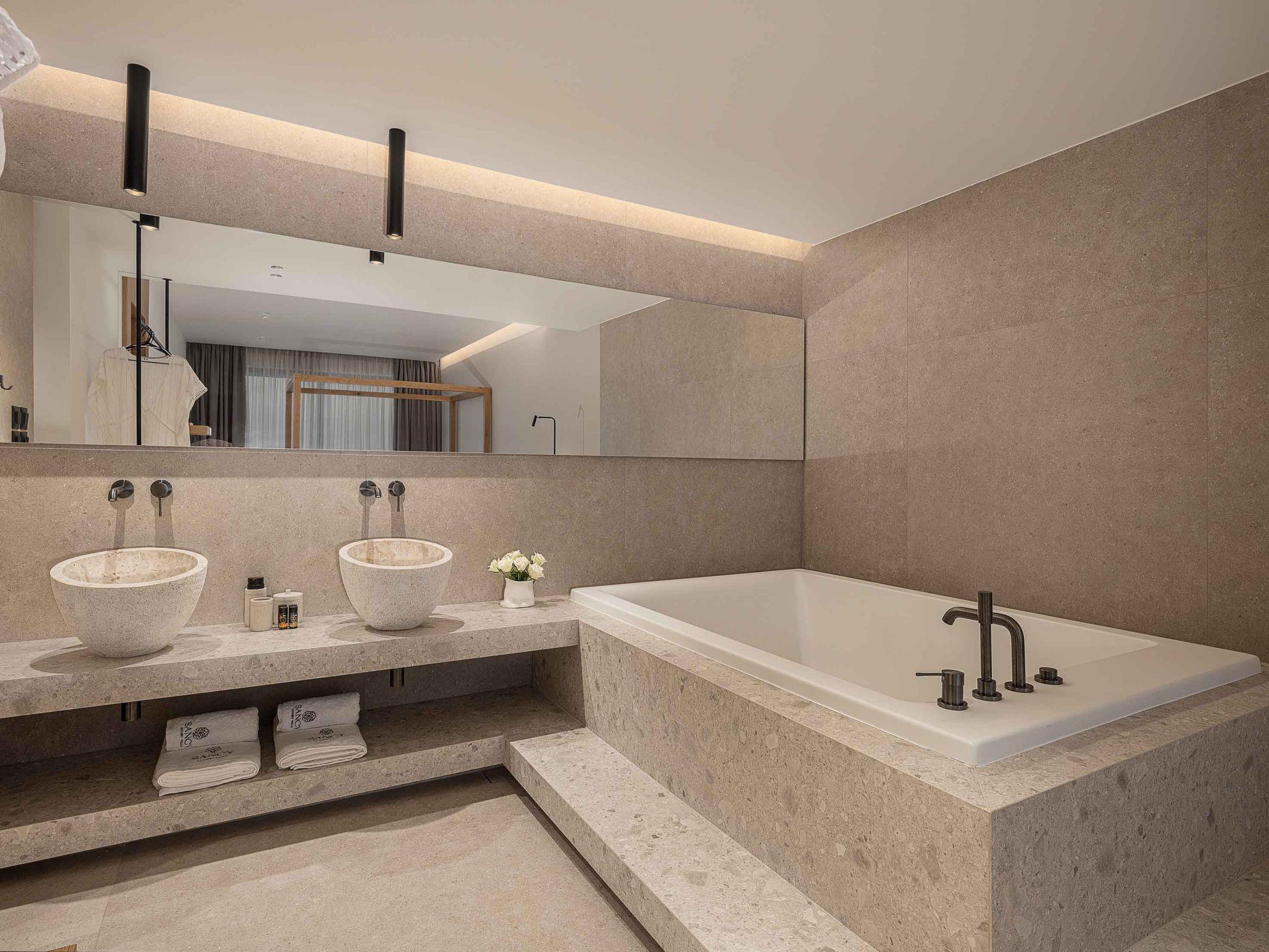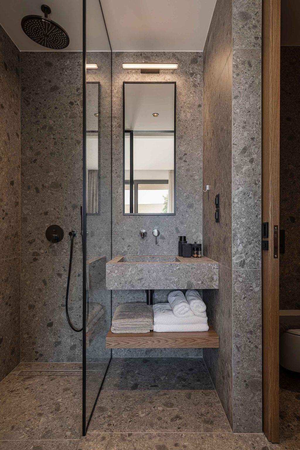 On the first floor, there are three bedrooms. All of the bedrooms offer queen-sized beds where all of the guests can enjoy the Coco-Mat mattress. All of the bathrooms are ensuite to the bedrooms. One of them offers a bathtub to the guests while the rest offers a shower. The scenery of contemporary architecture and high-quality elements, and the modern furniture create a cosy atmosphere.
