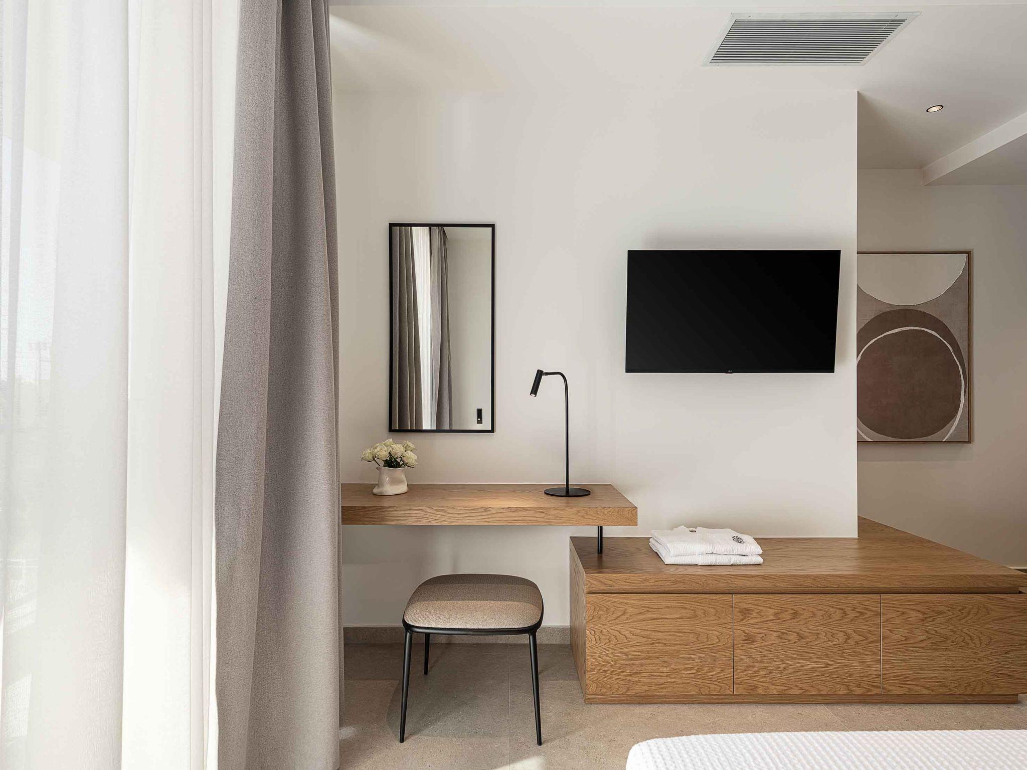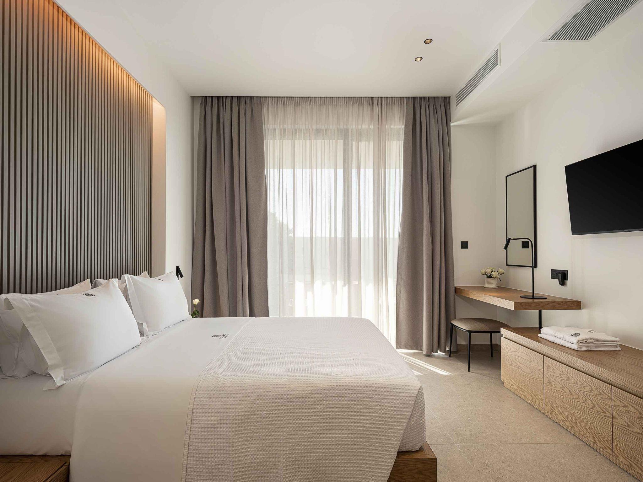 Bedroom 5: Queen-size bed (1.60*2.00) with Coco-Mat mattress, A/C, 43’’ Smart TV, ensuite bathroom with shower, direct access to the balcony