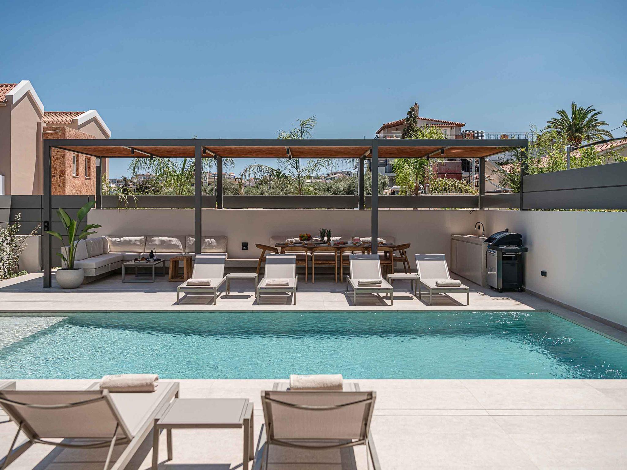 Is there a better place for you during summer vacation rather than lying by the pool and having your tanning session? The outdoor heated swimming pool and the lounge space are the spots where you can rustle up a cocktail or relax while gazing at the gorgeous sunset on the sun loungers. A dining table with 12 chairs under a pergola and a comfortable lounge on the patio where you can have a barbecue and the sunbeds create the perfect scenery where you can enjoy the Cretan sun. Your kids will be able to spend their day outside, playing in the kid's section pool, while you can have some quality time with your loved ones. Don't forget that a secure parking area is provided outside of the villa.
