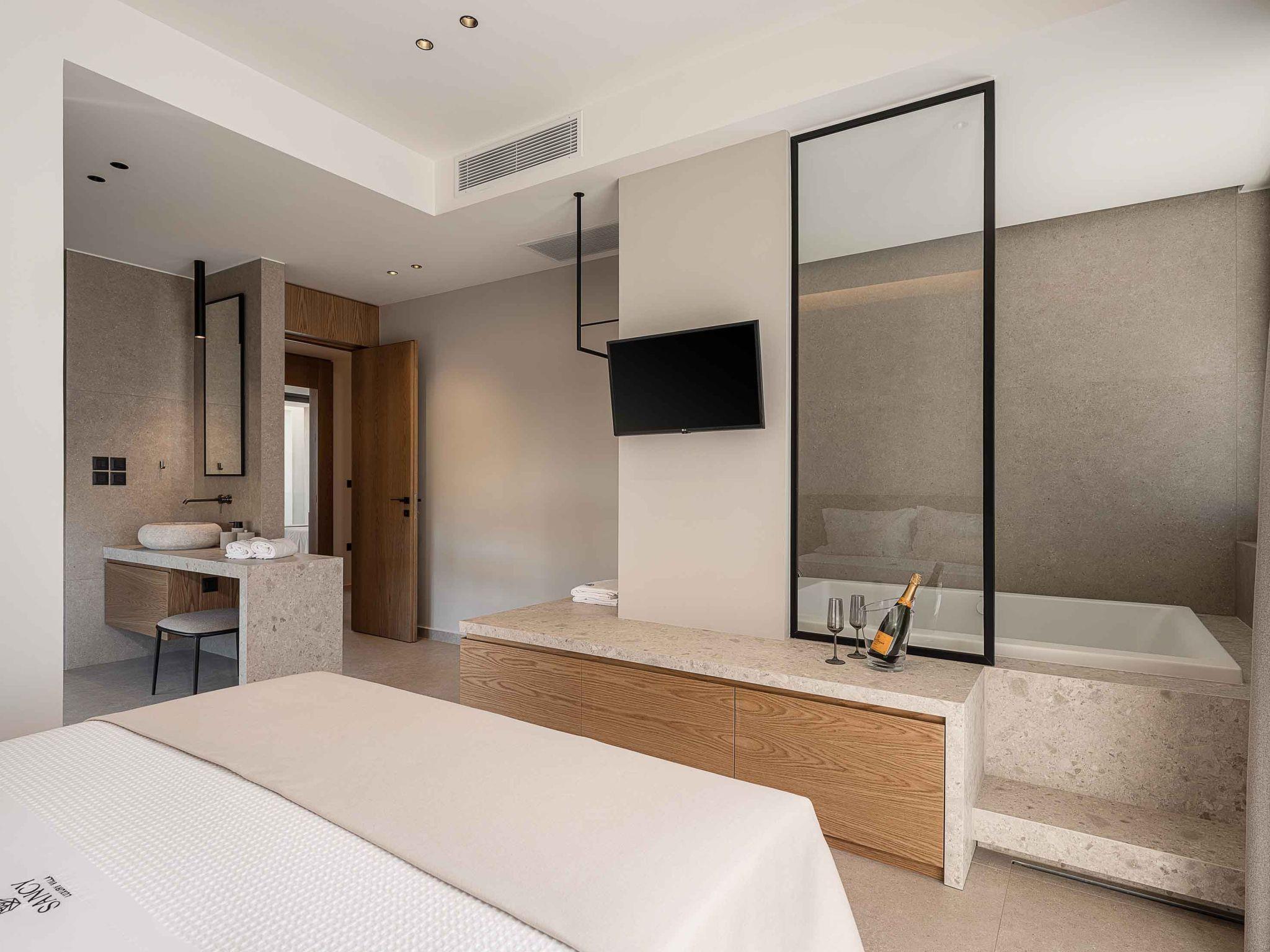 Bedroom 4: Queen-size bed (1.60*2.00) with Coco-Mat mattress, A/C, 43’’ Smart TV, ensuite bathroom with bathtub, direct access to the balcony