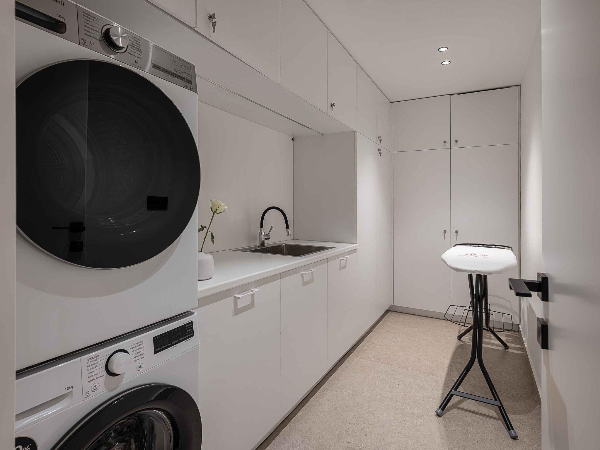 Laundry: Iron board & iron, washing machine & tumble dryer