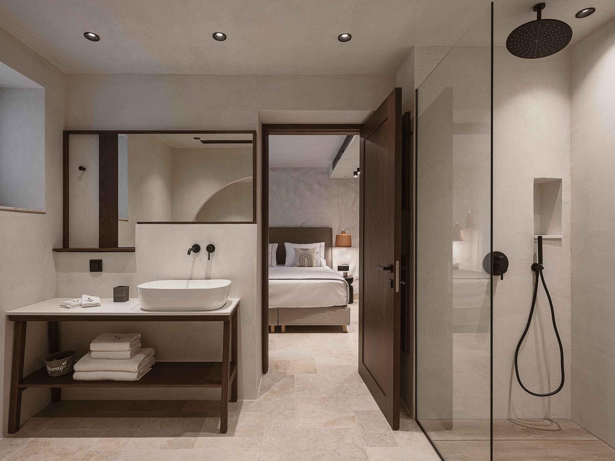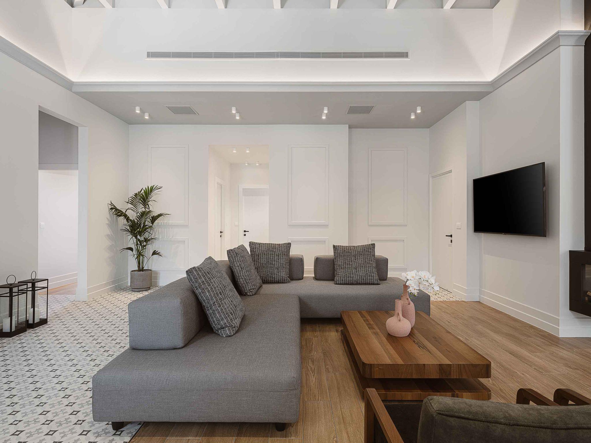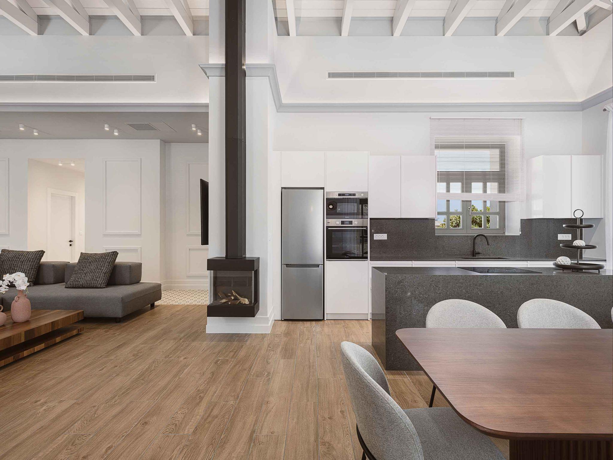 This stylish villa wows at every corner, with five airy and well-equipped bedrooms with air conditioning, and free Wi-Fi. Four of the five bedrooms offer luxury en-suite bathrooms with either a shower or bathtub. City Moments Villa is a two-storey villa consisting of five bedrooms, three of them on the ground level and the rest of them, are situated on the lower floor. There are four ensuite bathrooms and one communal that is finished to a luxurious standard and has a walk-in shower while the bathroom benefits from the addition of a bathtub in one of them. Entering the villa on the ground level you will find a spacious open area with a fantastically-equipped kitchen which is heaven for foodies. The area is completed with a dining and a living room with a big flat-screen smart TV with satellite channels and a gas fireplace. Luxury and modern design complete the scenery of contemporary architecture and high-quality products. The neutral palette that is used here creates the perfect scenery for a serene getaway from the fast pace of life making your stay unforgettable.