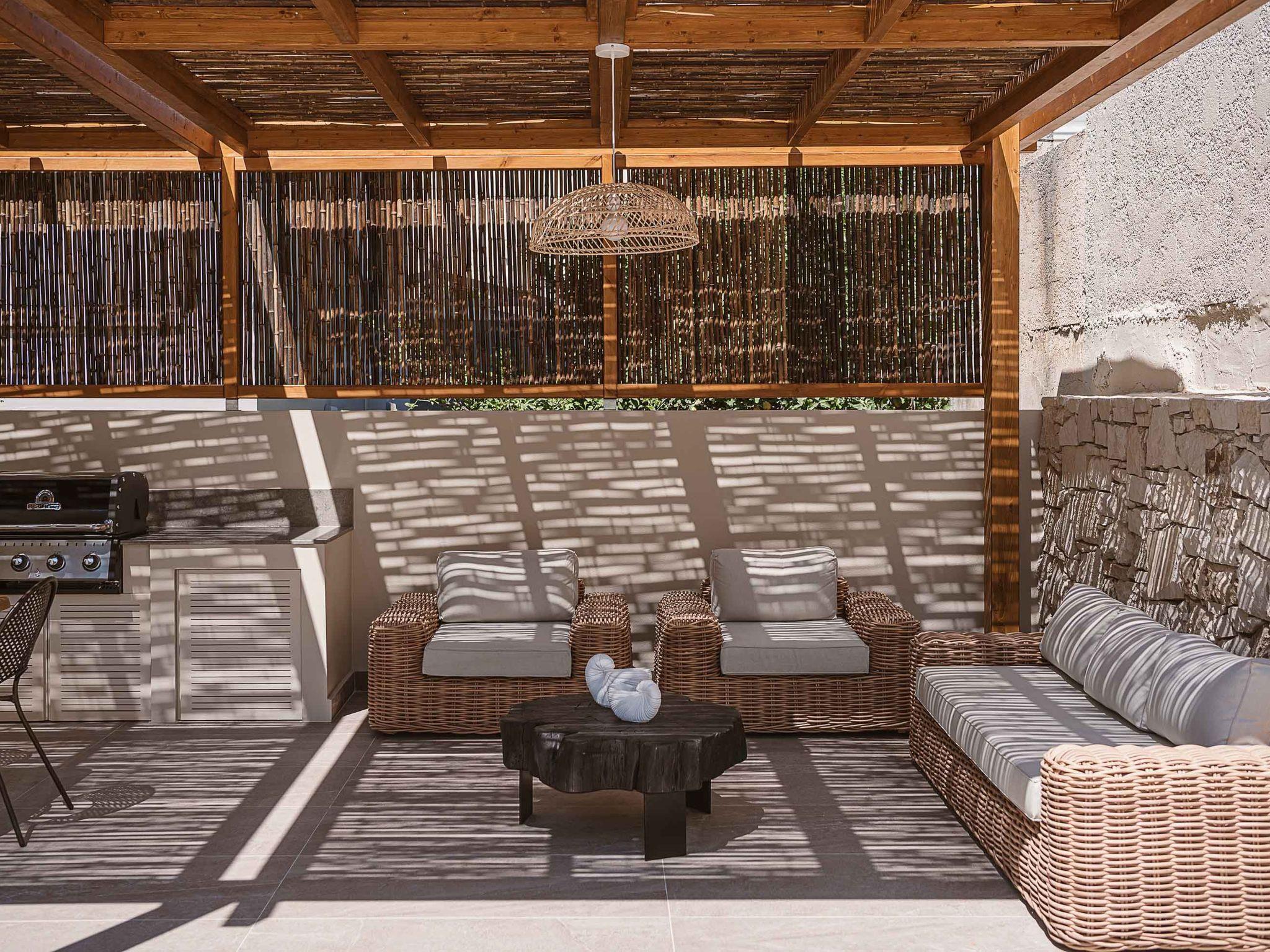 Pergola-protected lounge and dining area