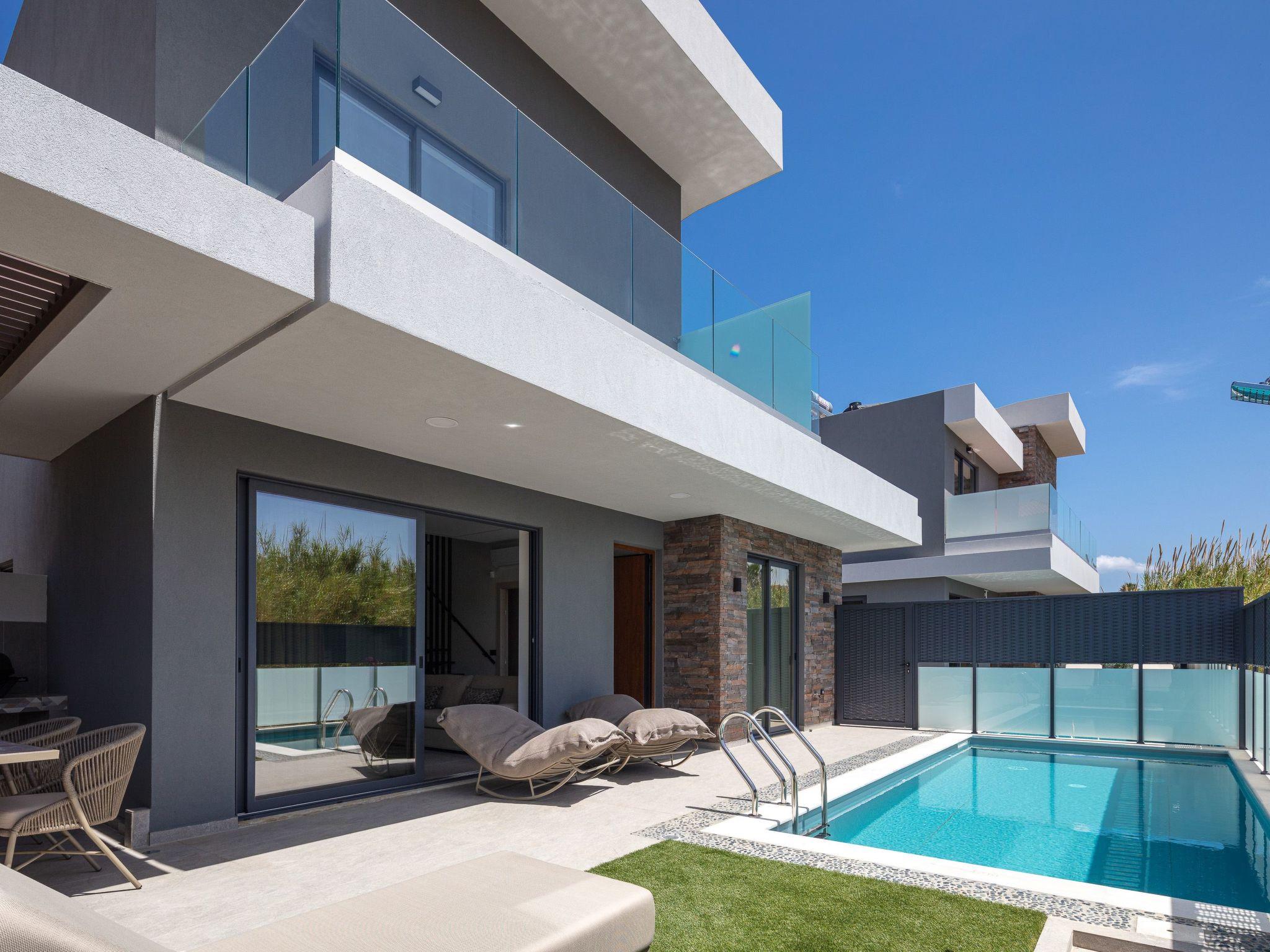 VillaSaints I is a modern two-story luxury villa, designed to offer a serene and stylish escape just moments from the sea. Blending contemporary indoor comforts with elegant outdoor living, this villa features a private swimming pool, a shaded BBQ area, and thoughtfully curated spaces for relaxation and socializing. Ideally located near the beach and within easy reach of local tavernas, cafes, and shops, it is the perfect retreat for families, couples, or small groups looking to experience the beauty of coastal Crete.