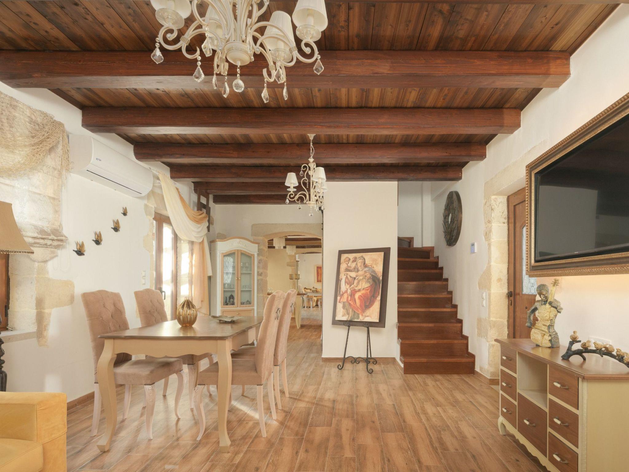 Nicole Villa, located in the traditional Cretan village of Embrosneros in the Apokoronas region of Chania, Crete, offers an elegant blend of modern comfort and authentic village charm. Designed across multiple levels, this spacious villa is perfect for families, couples, or groups of friends seeking a luxurious retreat within walking distance of local amenities. Its warm design and serene atmosphere make it an ideal base for exploring the beauty of Crete.