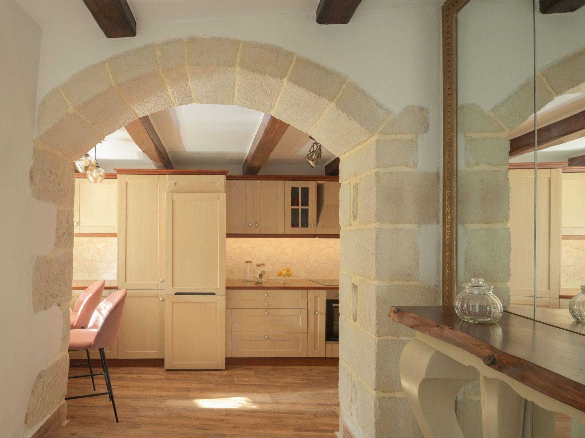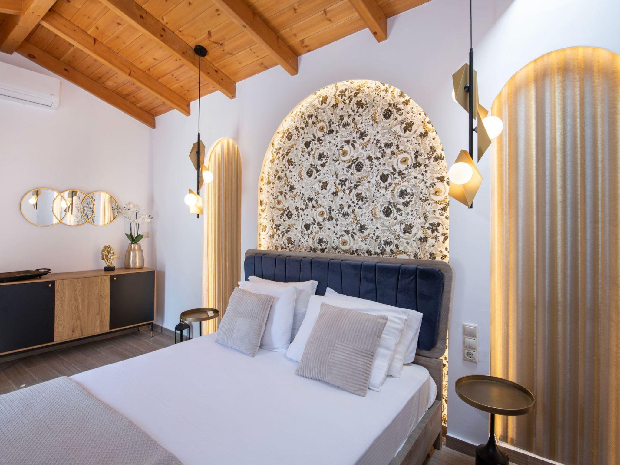 The villa is ideally positioned between Chania and Rethymno, making it a perfect base for exploring Western Crete. Chania Town, with its famous Venetian harbor, is 38 km away, while Rethymno is just 35 km. The nearest beach, Georgioupolis, lies 12 km from the villa, offering long stretches of golden sand and crystal-clear waters. For everyday needs, the small town of Vrysses is only 4.8 km away, where guests can find many facilities.