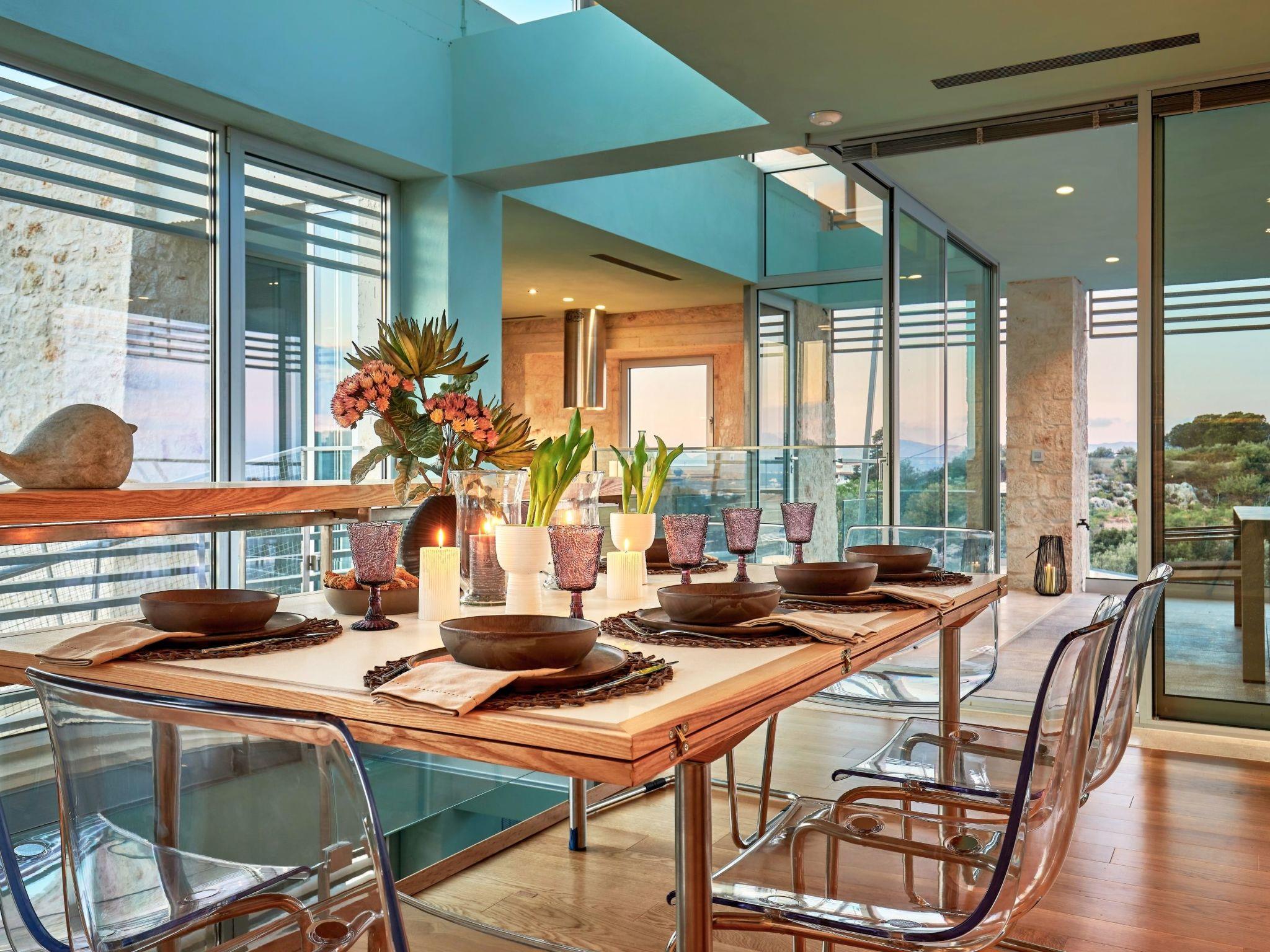 Escape to Olives and Thyme Retreat, a unique luxury villa estate set in an olive grove, with breathtaking views of Souda Bay. Designed with a blend of modern luxury and Mediterranean charm, this exclusive estate accommodates up to 12 guests, and it is perfect for large families, friends, or group retreats.