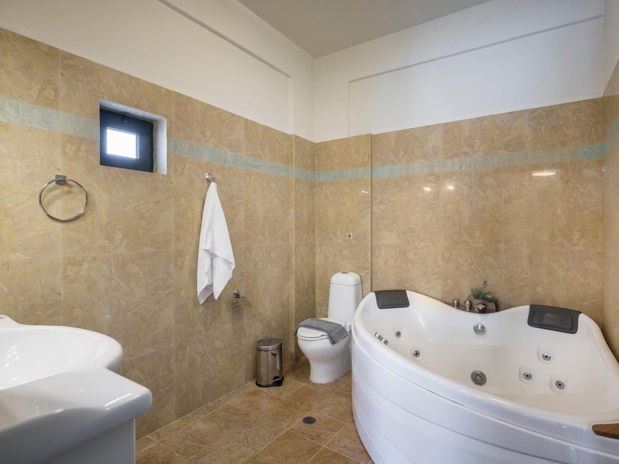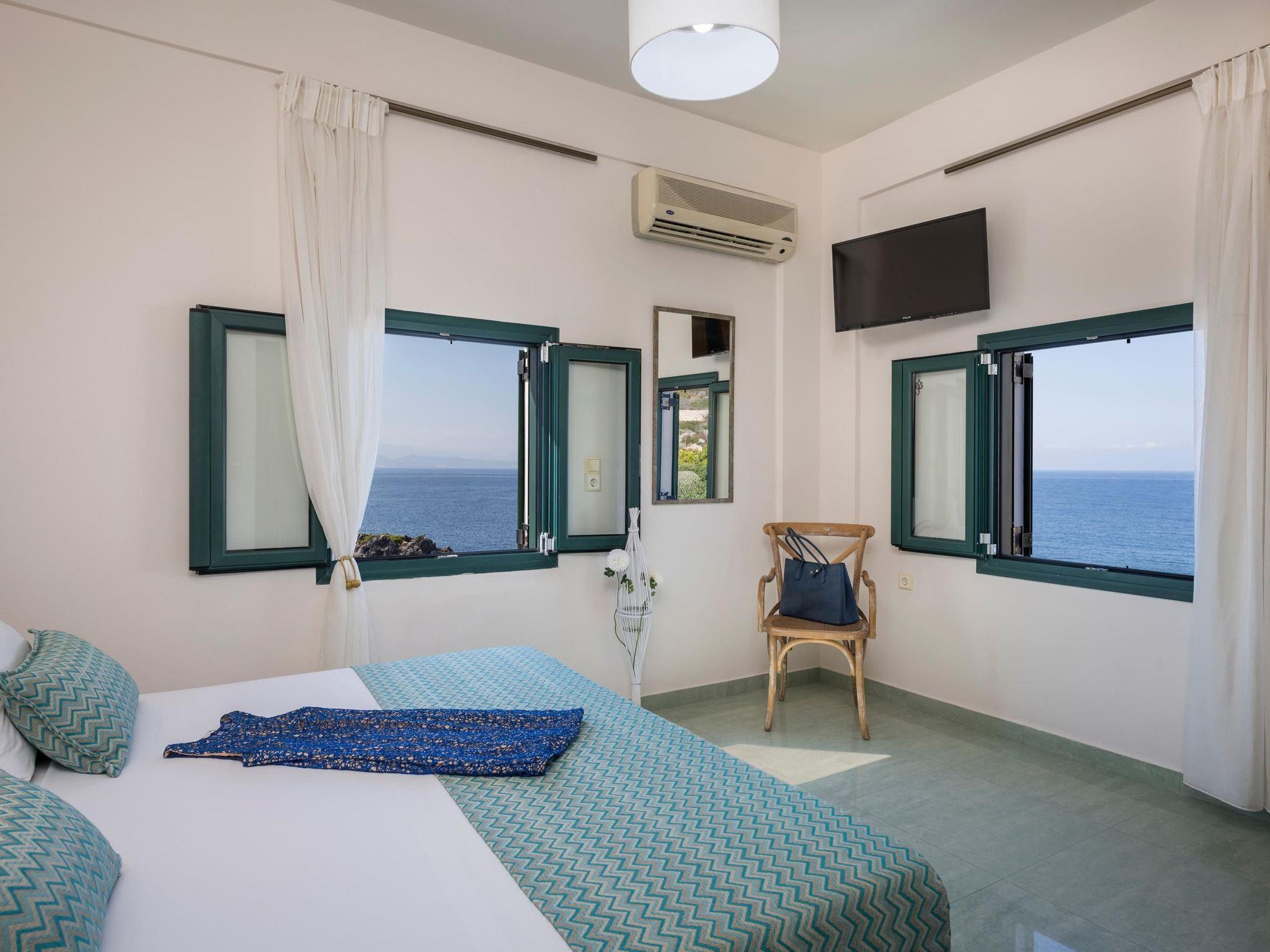 Villa Faidra is a seafront 7-bedroom Villa in Tersanas village in the area of Akrotiri, about 12km from Chania. The villa is built in three levels, with a private pool, placed in the edge of the sea. The lovely sandy beach of Tersanas is 1200 meters away. Villa Faidra is stylishly designed and elegantly furnished with minimal style colours, fully equipped with all modern amenities. The villa has seven bedrooms and it can host up to 14 guests. Five bedrooms have en-suite bathrooms with Jacuzzi tub or Jacuzzi shower, and the rest two bedrooms share a common bathroom. Satellite TV and air conditioning are provided in all areas. An open plan, fully equipped kitchen and the main living room area are located on the ground floor. A second smaller kitchen area is available on the lower ground floor/pool level, next to the pool and the BBQ area. One separate suite/apartment with a twin bedroom and a bathtub is located on the pool level. In addition one double bedroom and one twin bedroom with a bathroom are located on the pool level. Two double ensuite bedrooms and one twin ensuite bedroom are available on the ground floor level, while one double bedroom ensuite is on the first floor. Check out is 11:00 latest and check in is 15:00 earliest.