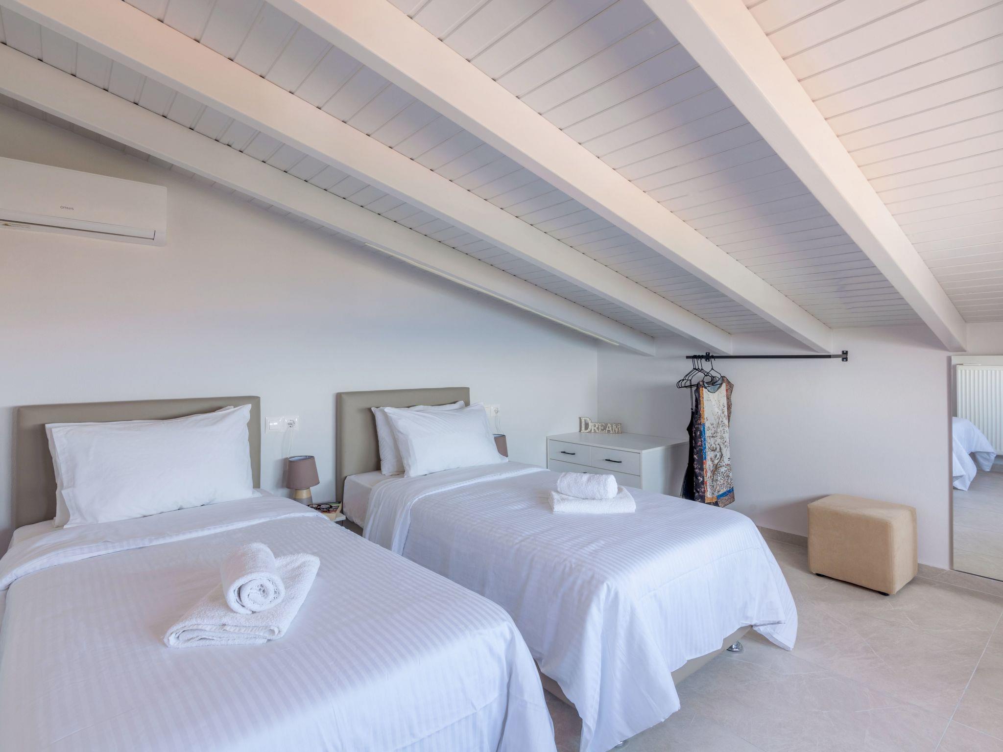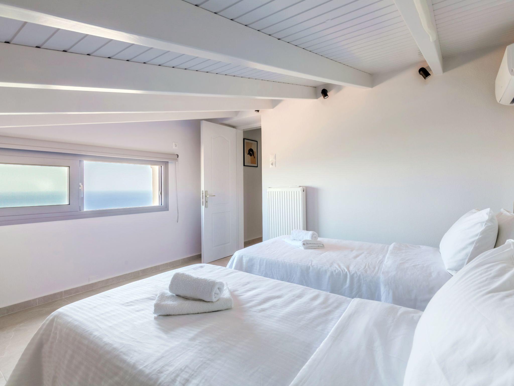 Next to “Ioannis” there is a further newly added low ceiling bedroom, “The Loft”. It has two single beds, air-conditioning, and a window with panoramic sea view. The beds can be merged into a King size bed, if needed and requested before arrival.