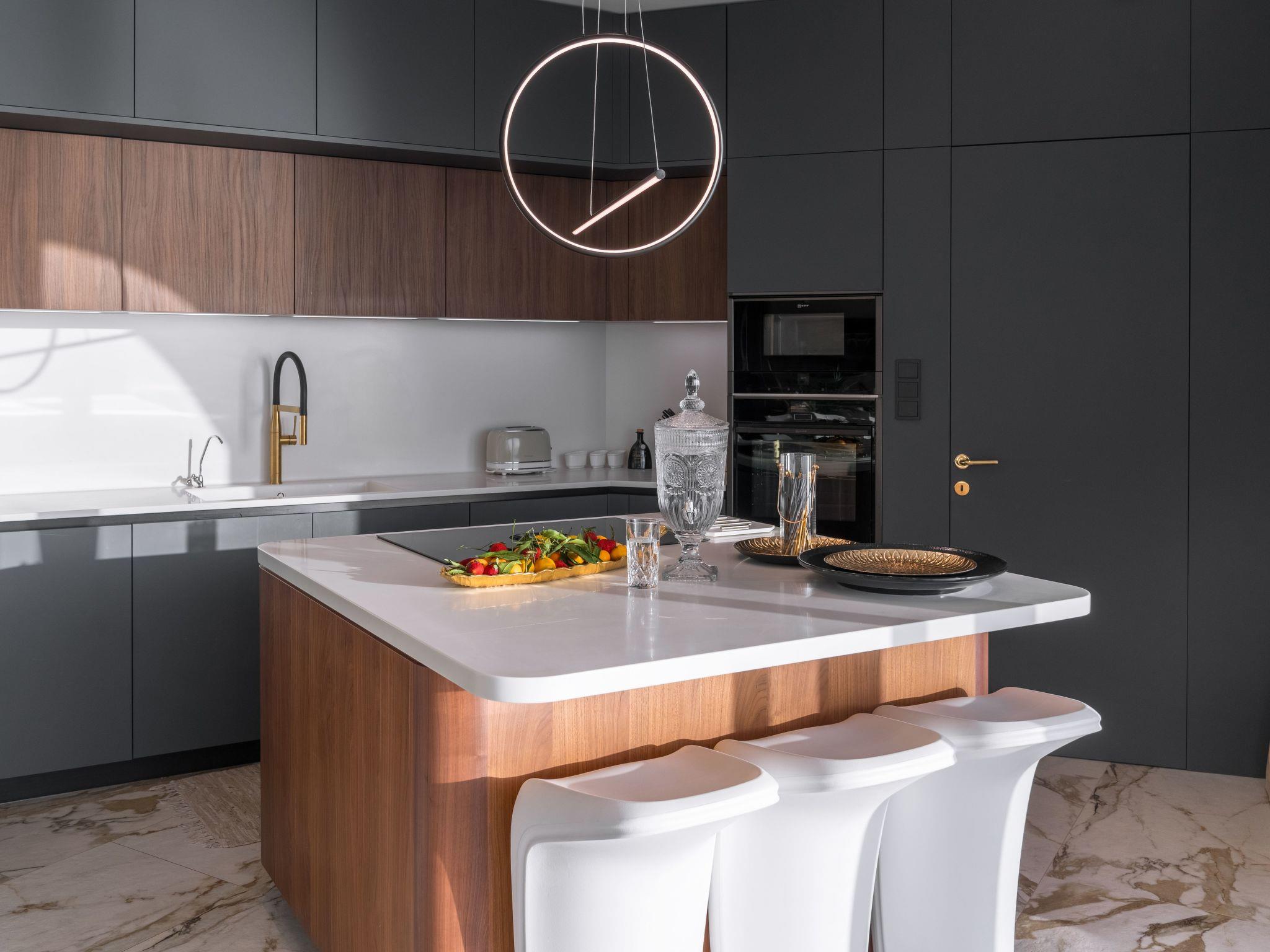 Transitioning to the exterior, the villa seamlessly integrates indoor and outdoor living through massive sliding windows that connect the living space with a captivating pool area. This transformative design not only invites natural light but also creates a sprawling space ideal for social gatherings. The pool area serves as a prime spot to relish the panoramic views of the bay, especially alluring during sunrise or as the night city lights flicker across the water.