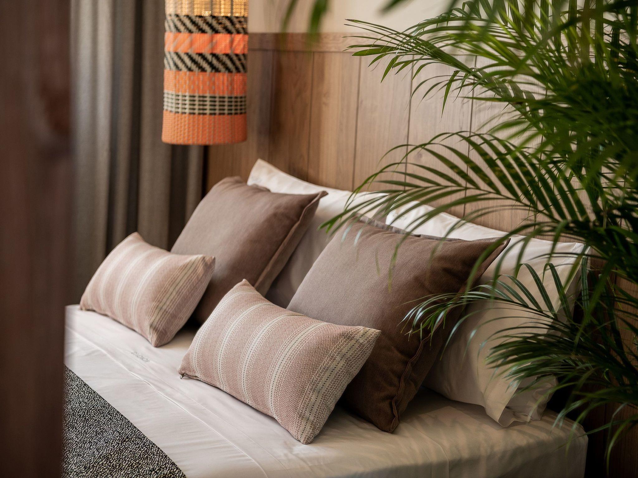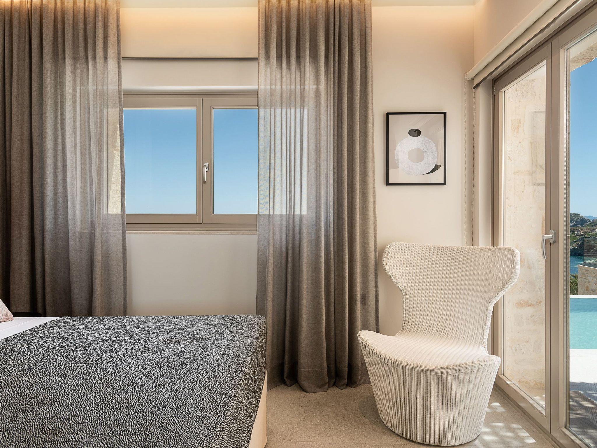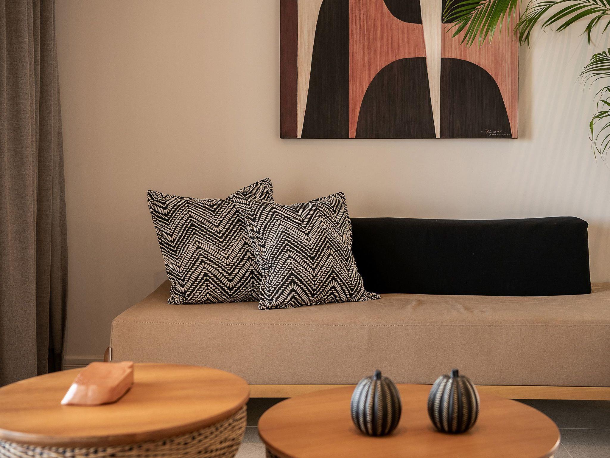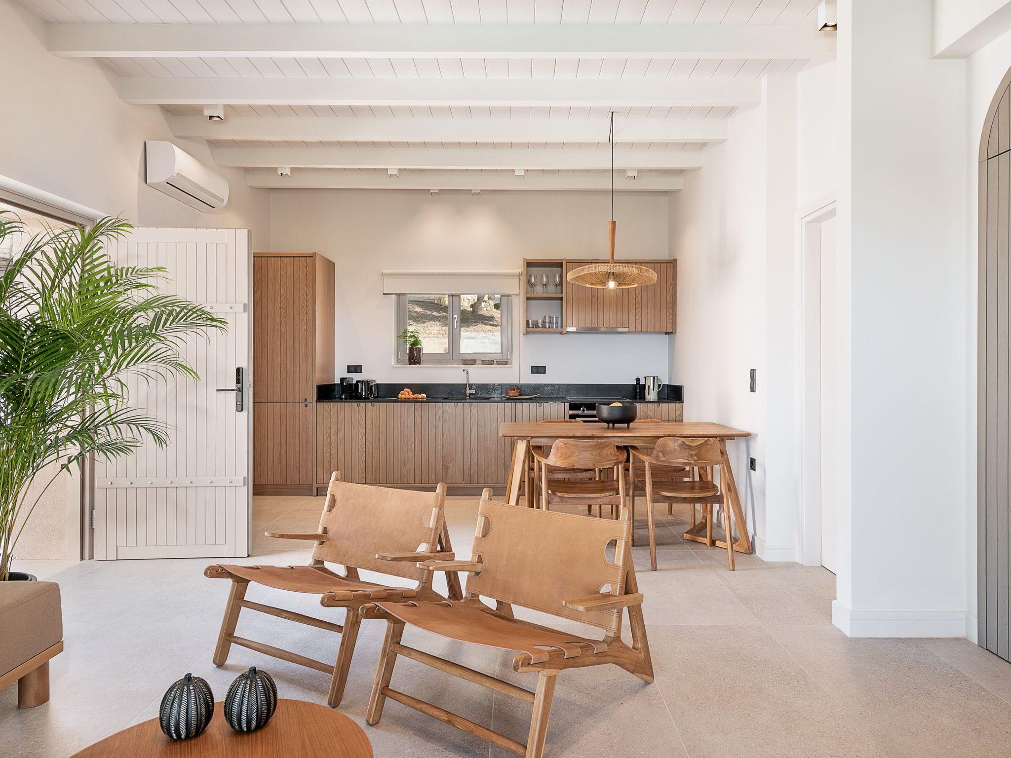 Kokomo Villas are located on a hill overlooking the bay of Lygaria in the greater area of Agia Pelagia. It can be reached from Heraklion/Heraklion Airport in about 25 minutes. It is easily accessible from the Highway and ideal as a base for exploring places of interest. Although close to various magnificent beaches, restaurants and supermarkets, it is also perfect for relaxing in privacy.The villa is characterized by high aesthetics and stunning panoramic views of the Cretan Sea. The earthy tones of the spaces merge into the deep blue of the sea and sky, offering an unforgettable sense of harmony and gentleness. Every aspect, material and element has been carefully selected to wrap you in a state of calmness and satisfaction. All you need to do is enjoy.Villa Thea hosts 1 bedroom with king size bed and panoramic sea view as well as directs access to the front veranda. Guests will enjoy the lovely stylish bathroom with double sinks and double showers. The spacious living-room with a gorgeous view of the sea is connected to a fully equipped open kitchen and dining room. The living room also opens out to the front veranda, which offers a dining table and barbeque (gas). Just below the veranda, there is the pool area which has a private swimming pool with sunbeds, an outdoor shower and lounge poufs.Furthermore, Kokomo Villas has solar panels installed to provide some of the energy needed in the property through them. IMPORTANT NOTICE: This property is not suitable for children from 2 to 7 years old, since there is an infinity pool and some not covered areas