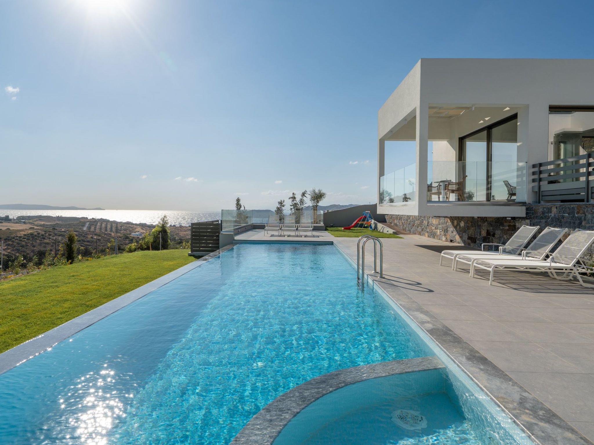Build by local architects and builders these villas capture the essence of their fine location. Situated on the bay of Aghia Pelagia, enjoys excellent views of the deep blue of the Aegean Sea. The interiors are modern and spacious for the residence while their high-class kitchen ensures meals of excellence. Dinning is available both inside and outside under pergola with the magnificent vies. The exteriors are permeated by the tantalizing scenes of levanter rosemary and theme. Pool loungers and shade sitting makes daytime leisure around the pool as relaxed as possible. Bedrooms are equipped with all you can wish for a dream night. Ensuite bathrooms and showers ensure the privacy of each bedroom. Larger groups wishing to travel and enjoy together, both villas can be combined