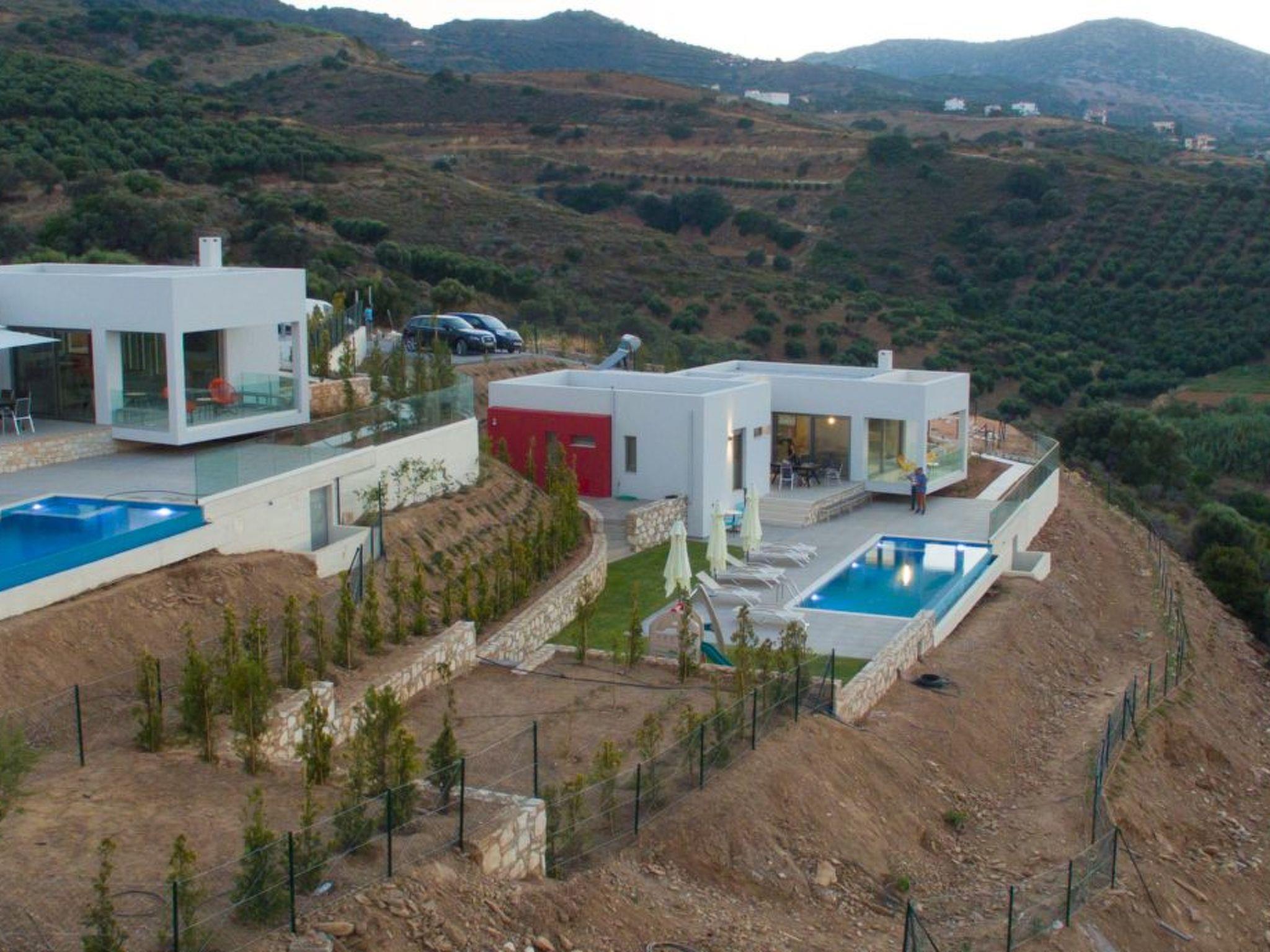 Discover the epitome of luxury and serenity at our exclusive sea view holiday villas, nestled in the heart of the picturesque village of Aghia Pelagia on the Greek island of Crete. Overlooking the stunning Pelagia bay and boasting panoramic views of the Aegean Sea, these newly built (2017), fully detached villas offer a tranquil oasis for those seeking the perfect escape. Each villa features its very own illuminated infinity pool, ensuring a vacation experience like no other, with the sun-kissed terrace and traditional stone grill setting the scene for unforgettable moments under the Grecian sky.
