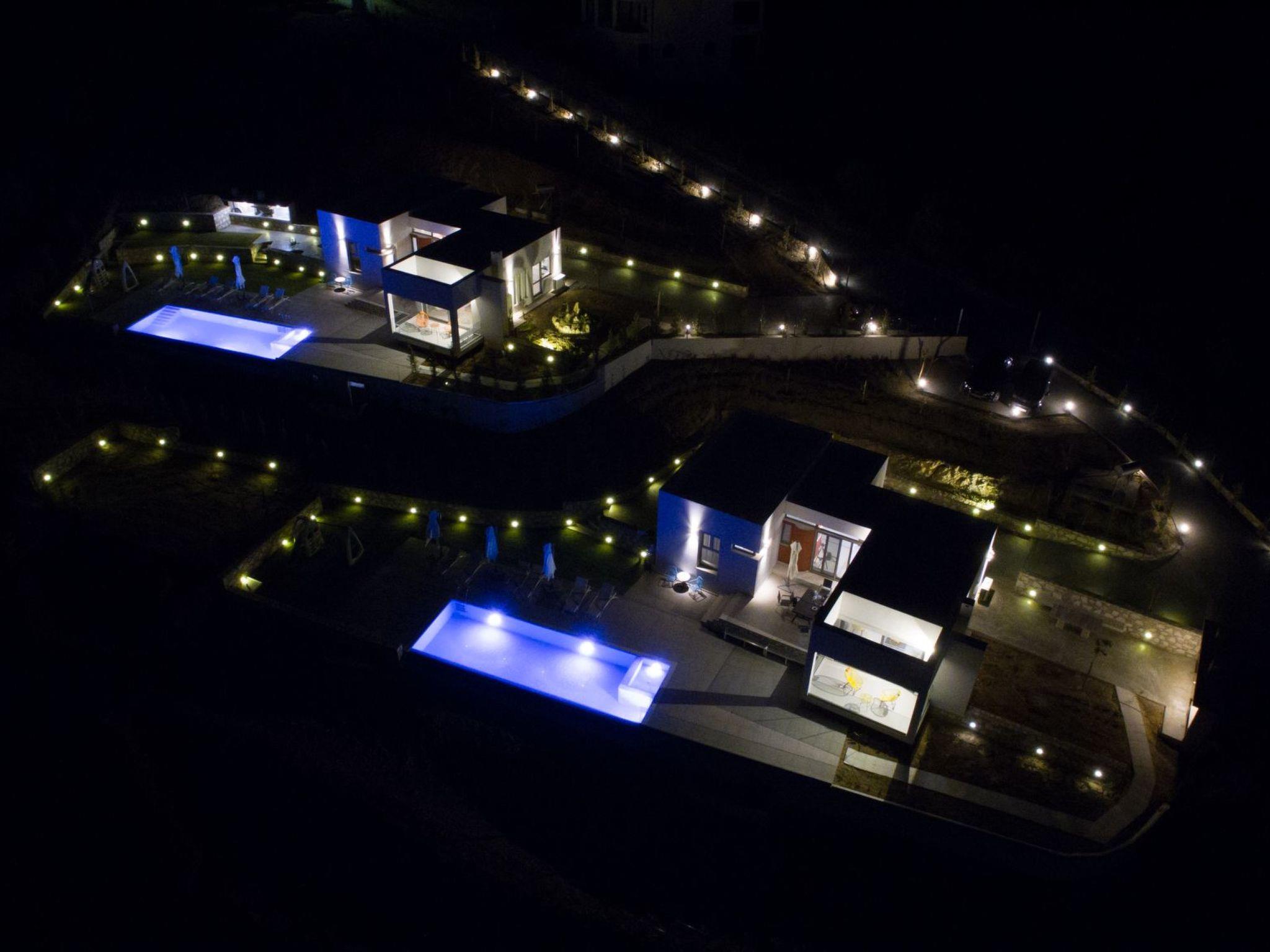 The exterior of each villa is an extension of its luxurious interior. The private, 3.5 x 10 m illuminated swimming pool invites you to plunge into bliss, surrounded by sun loungers and sun shades that promise endless relaxation. Adjacent to the terrace, guests will find an outdoor kitchen complete with a traditional stone grill, perfect for al fresco dining. For our younger guests, a playground with a slide and swings ensures entertainment and joy.