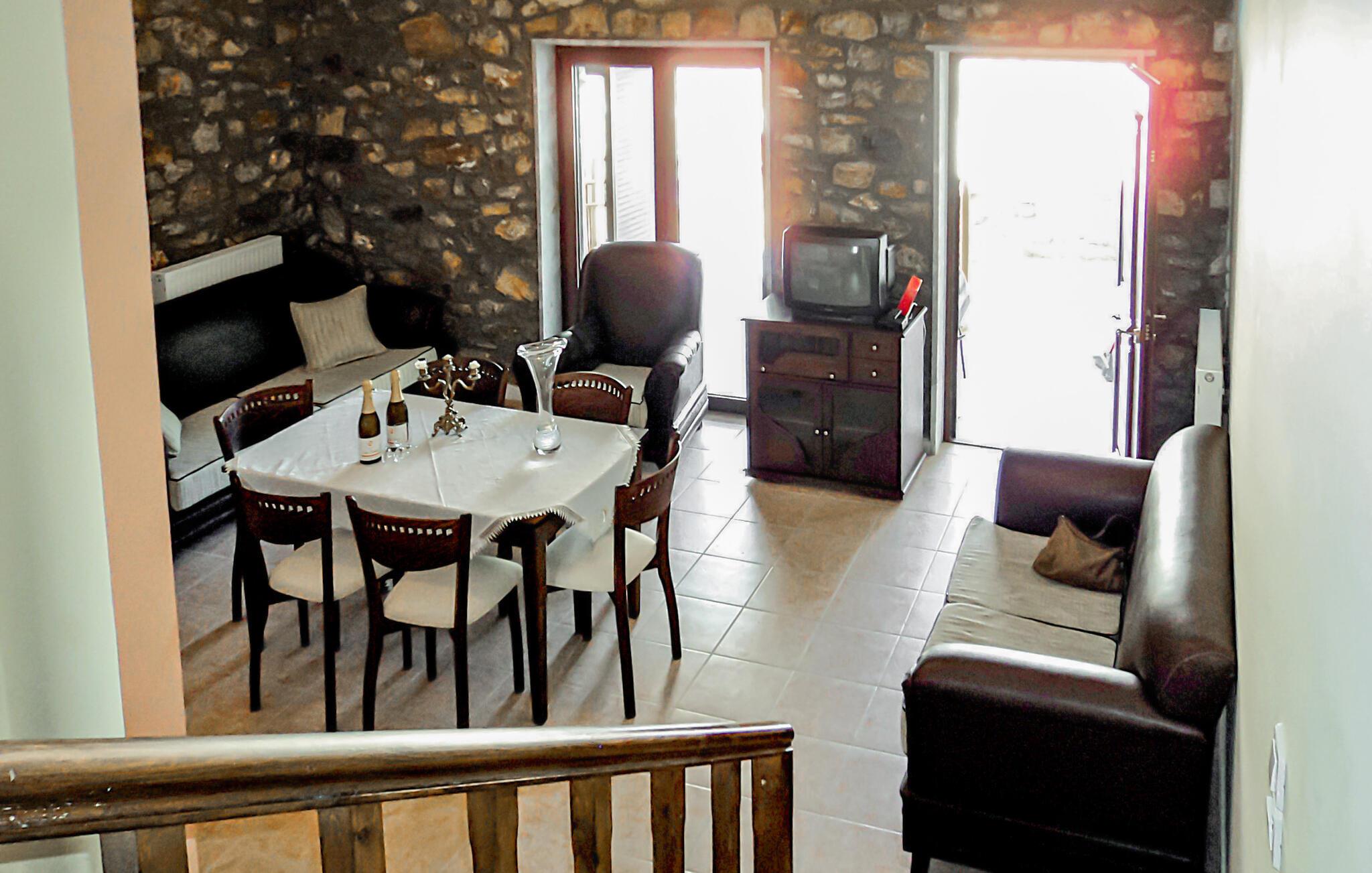 Dette hus af sten er fordelt på to etager af et af tre rækkehuse, hvis gæster deles om en swimmingpool.