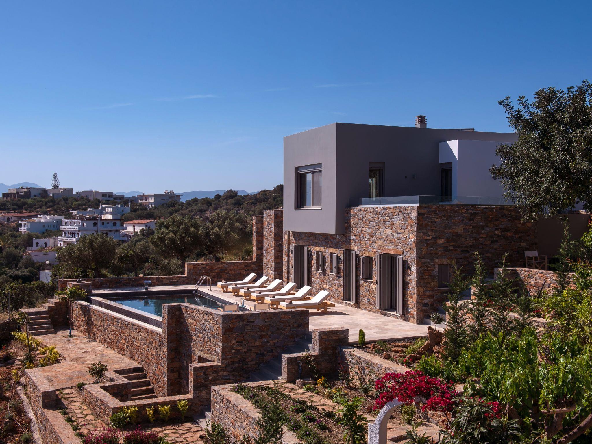 This exclusive and elegant holiday villa is situated-between the town of Aghios Nikolaos and the village of Elounda on the sunny Greek island of Crete. It is only approximately 200 m away from the blue flag awarded Havania beach in the Mirabello Gulf. The villa offers extraordinary views across the bay.
