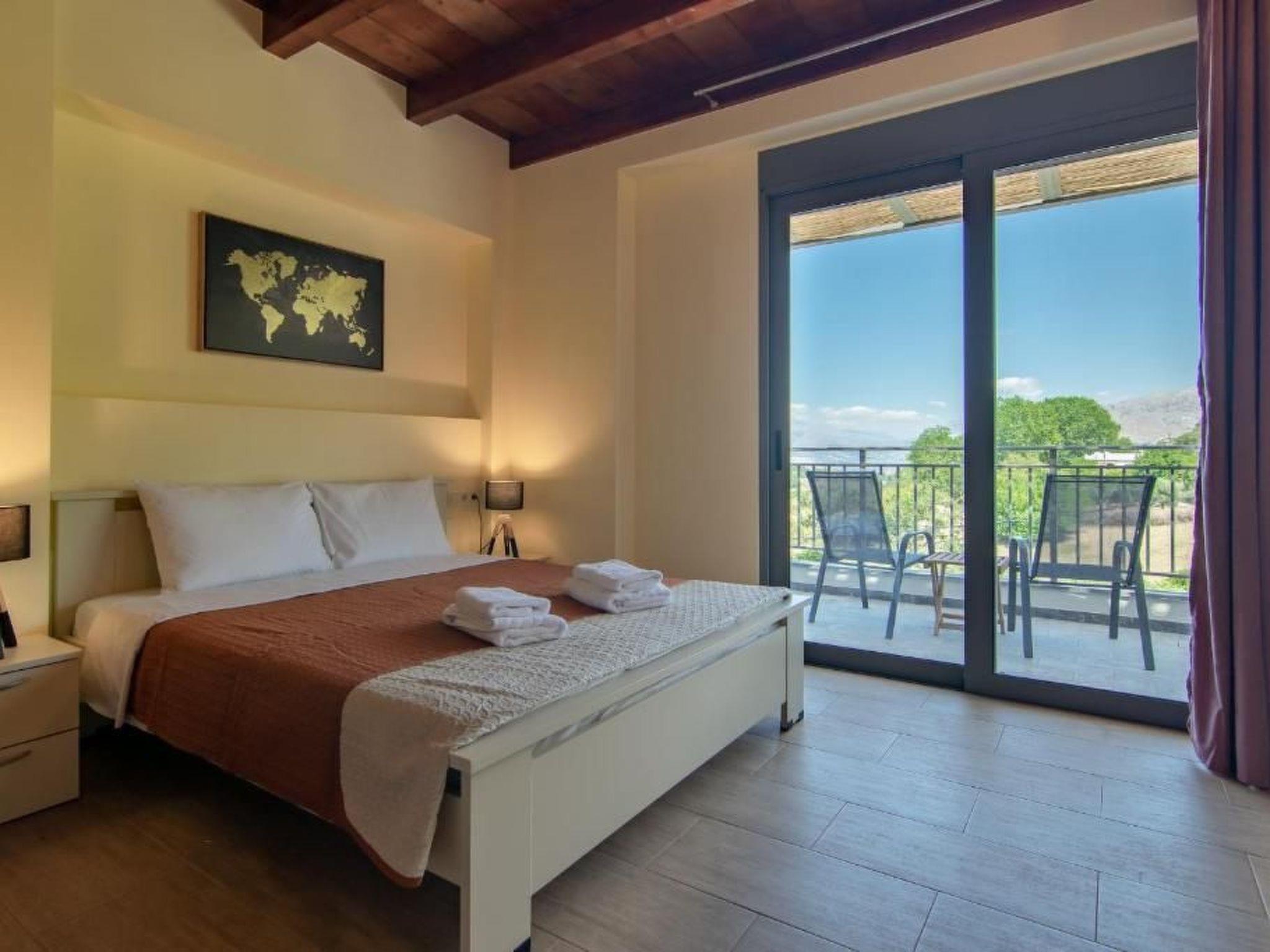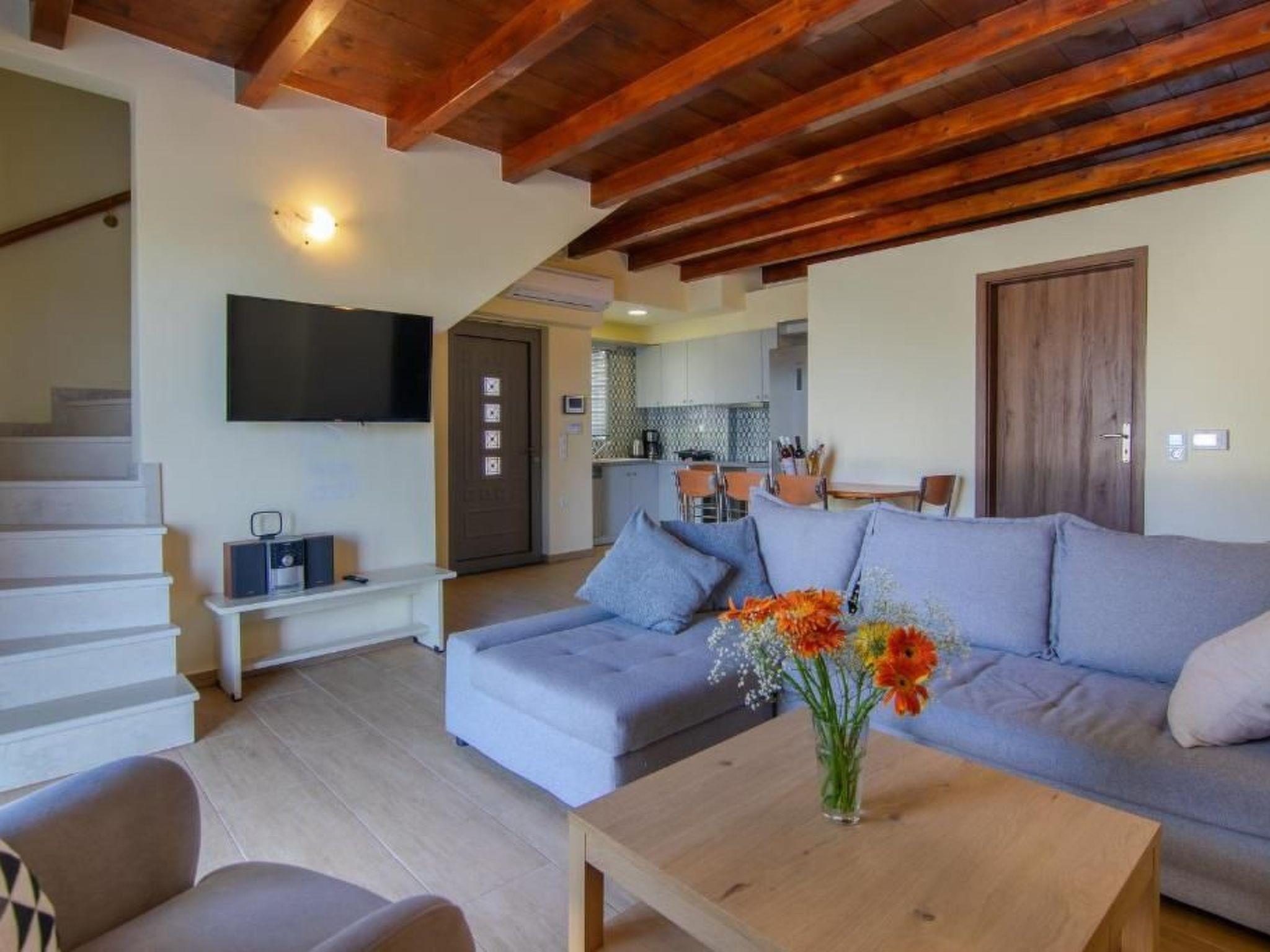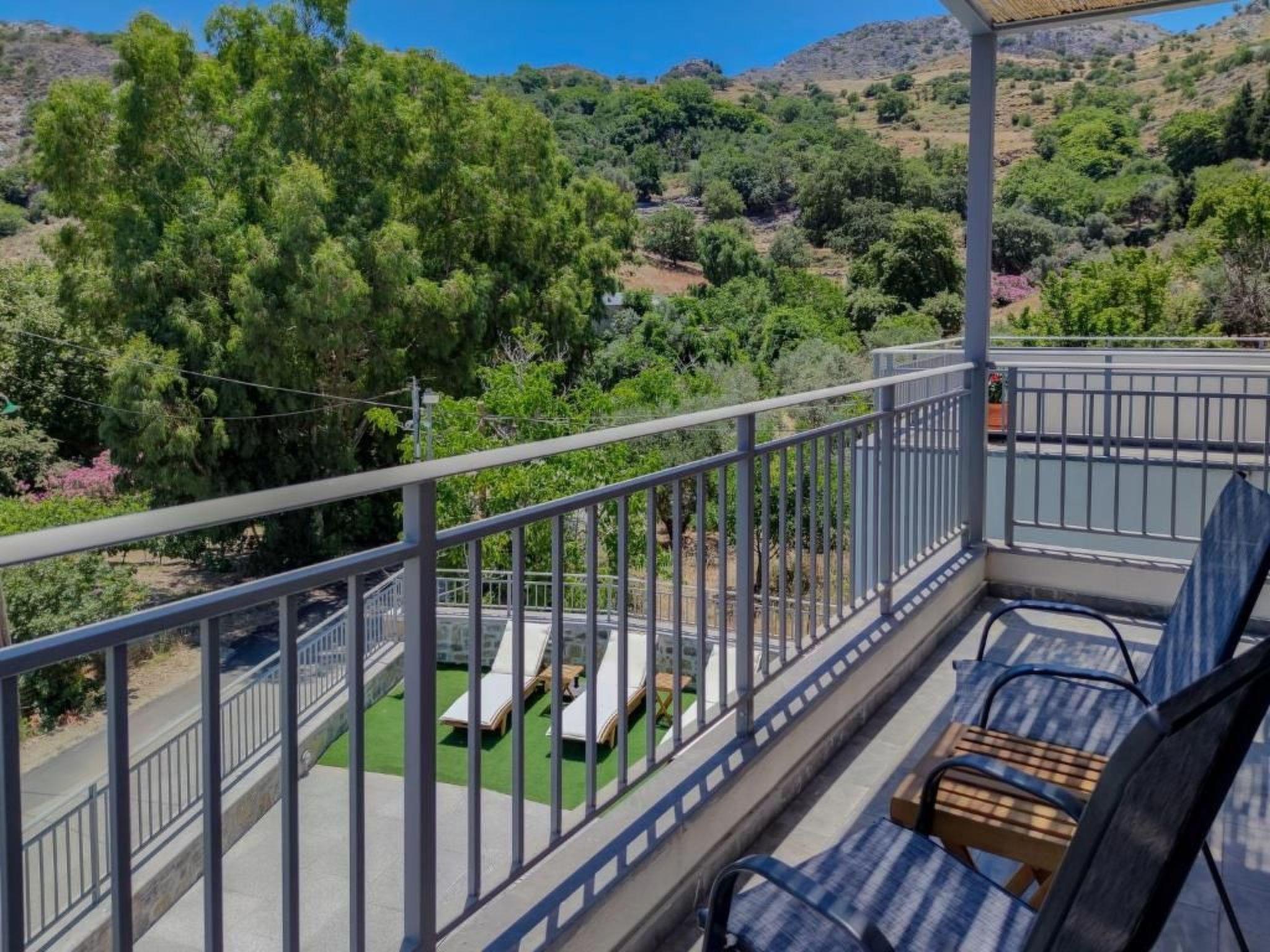 This new villa with a guest house and private pool is an impeccably designed villa and great care and can be seen in every detail. It is a high quality 3 bedroom villa with an independent guest house. Situated on the village of Kali Sykia, 8km from Plakias and can accommodate up to 8 people. It is quietly positioned and suitable for families and groups.Entering the villa, on the ground floor, there is a spacious open plan area consisting of the living room with a large sofa, fireplace, a TV, the dining area and a fully equipped kitchen of fixtures and appliances including. Additionally, a bathroom is found on the same floor. The open plan area opens the yard that leads to the pool area while has a fully equipped barbecue area.On the first floor there are three bedrooms and one bathroom. The first bedroom has a double bed, TV, air condition and a balcony overlooking the pool and the mountain. The second and the third bedroom have two single beds each one (that can be joined to one bed), a TV, air condition and balcony. Also, on this floor there is a large terrace with outstanding panoramic views.?Independent Guest HouseThe independent guest house is located next to the villa. The guest house consisting of a kitchen, a bedroom with two single beds and an en-suite bathroom with shower. Additionally, the house has direct access to the swimming pool.
