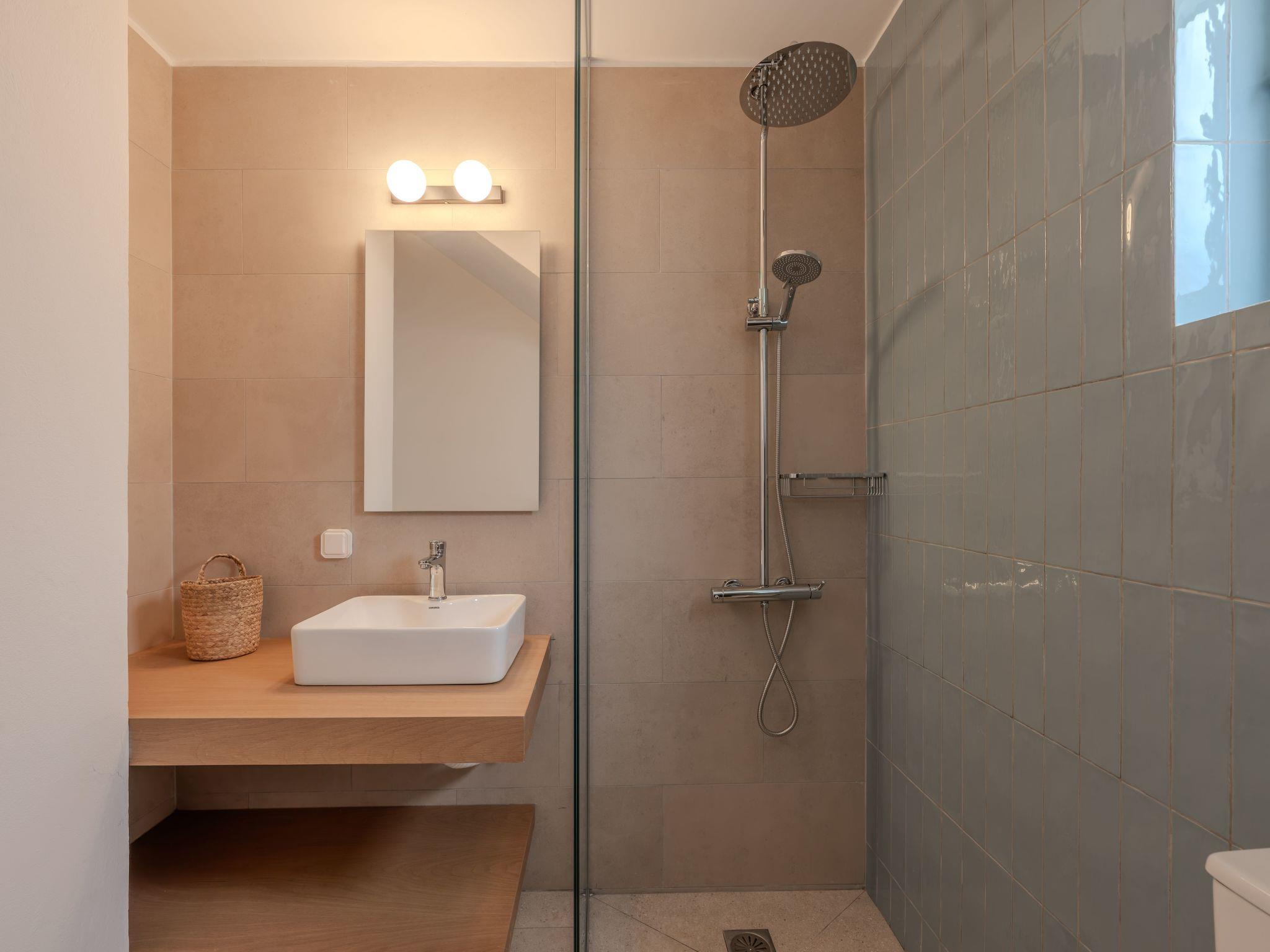 Upstairs, the master bedroom features a double bed facing a picture window that frames the sea. The second bedroom has twin beds and equally stunning views. Both rooms open to a spacious south-facing terrace with lounge seating overlooking your private pool, garden and the glistening sea. Both bedrooms are air-conditioned.