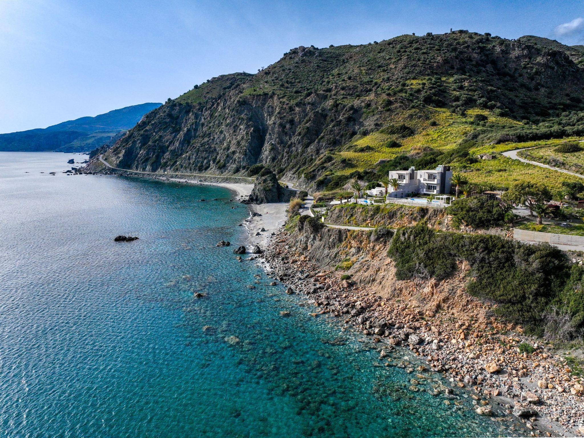 Nestled in a serene bay where rugged mountains meet the deep blue of the Libyan Sea, East of Preveli Villas offers a dreamy escape on Crete’s tranquil southern shoreline. Just 30 meters from the water’s edge, this peaceful seaside retreat includes two spacious 105 m² villas—each with a private pool—and a charming 50 m² beach cottage just steps from the sea.