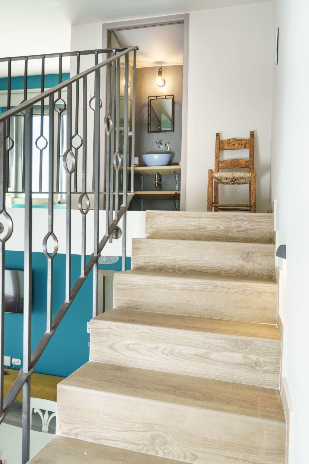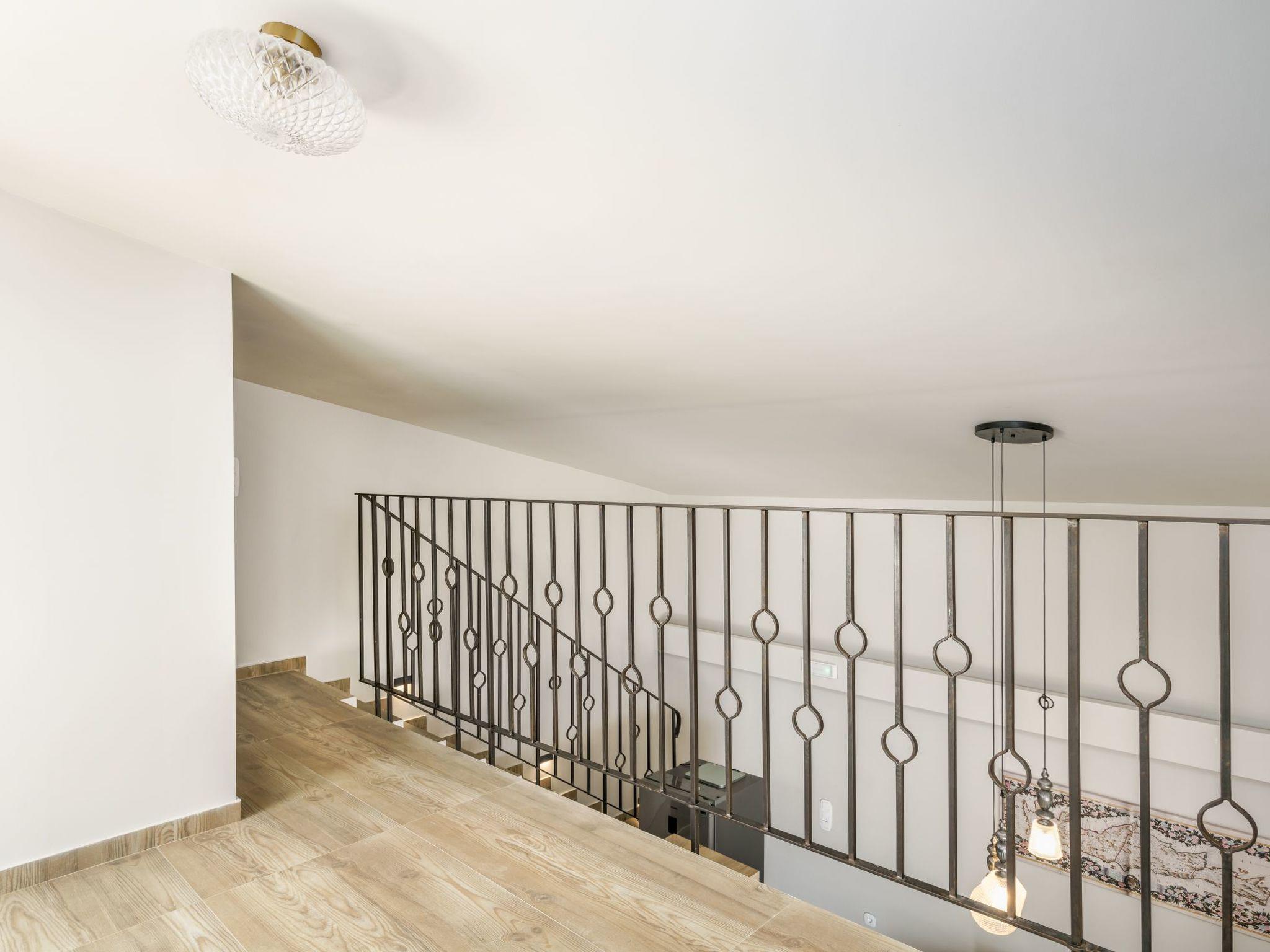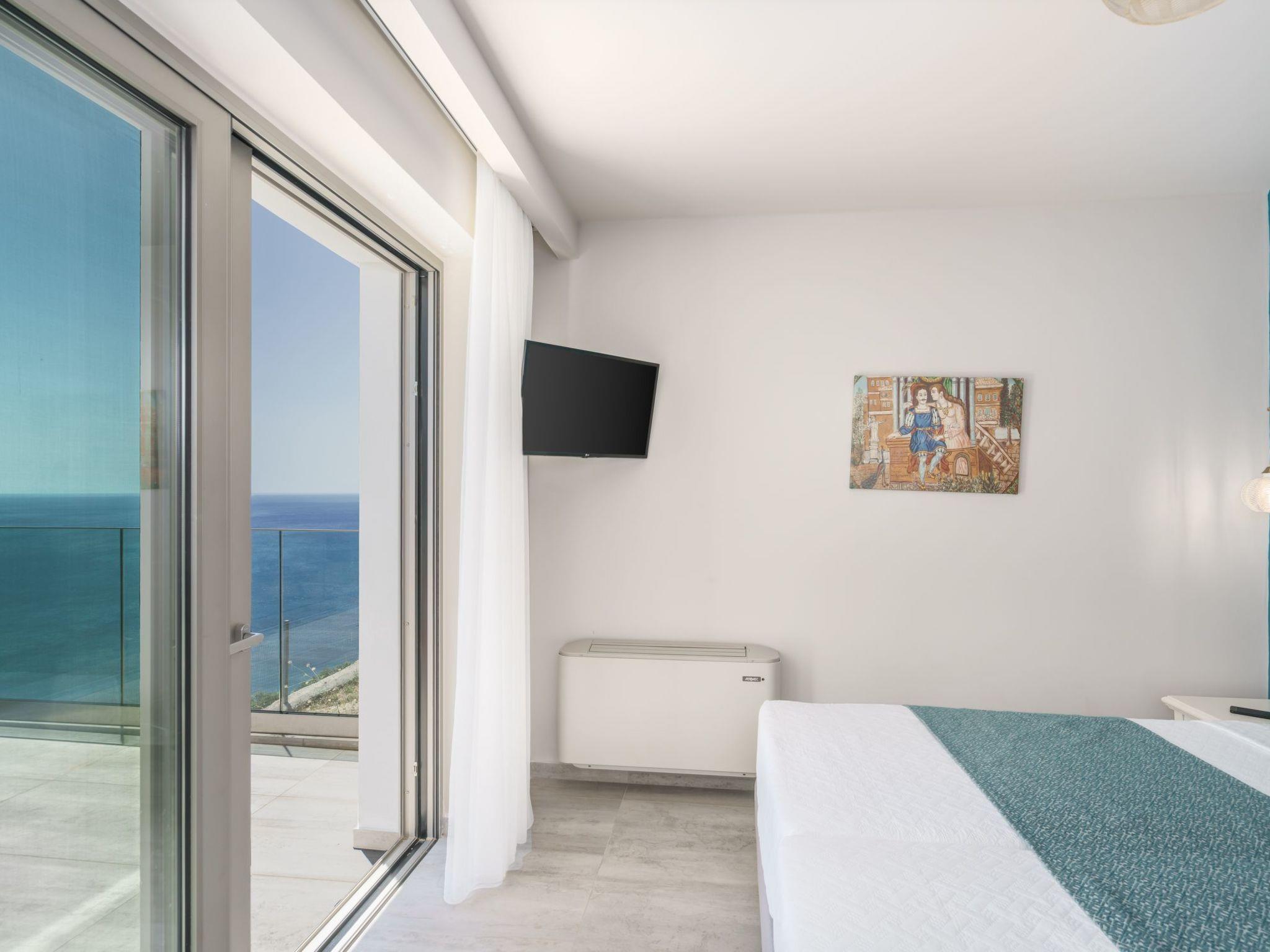 The villa includes two beautifully furnished double bedrooms, each with satellite TV and terrace access that offers breathtaking sea views. Modern bathrooms are equipped with hair dryers, toiletries, and plush towels for added comfort. The 2nd-floor loft houses the villa's second bathroom and additional bedding for a fifth guest, while modern heat pumps provide eco-friendly temperature control.