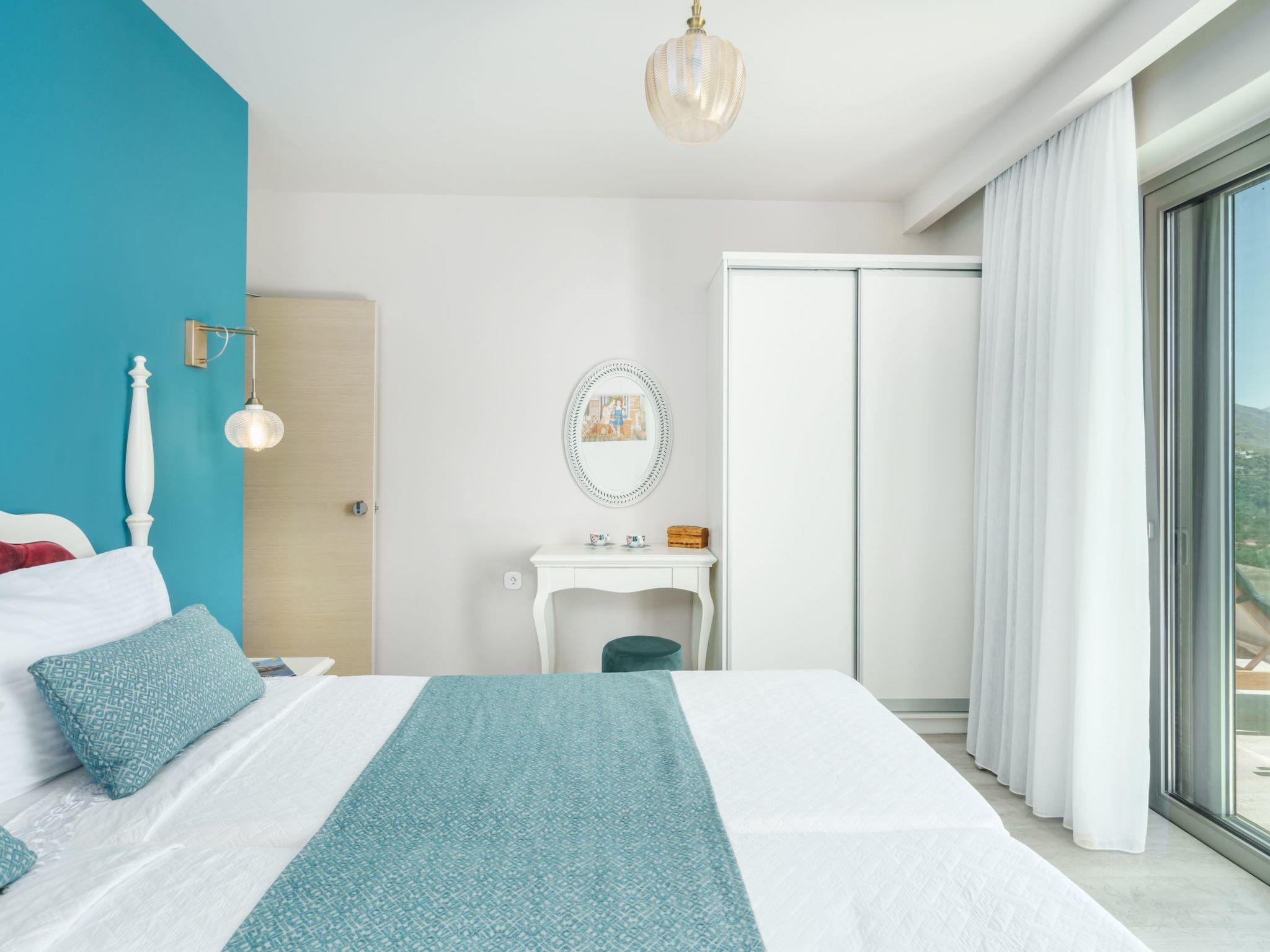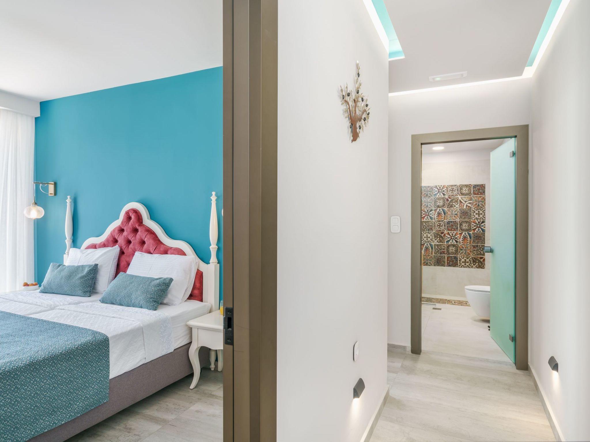Outside, Villa Venetsianiko boasts a private garden oasis with an inviting outdoor pool, built-in BBQ area for al fresco dining, and ample seating and dining spaces that create a seamless indoor-outdoor living experience. Pool towels and an outdoor shower add to the convenience and enjoyment of the Mediterranean island vibe.