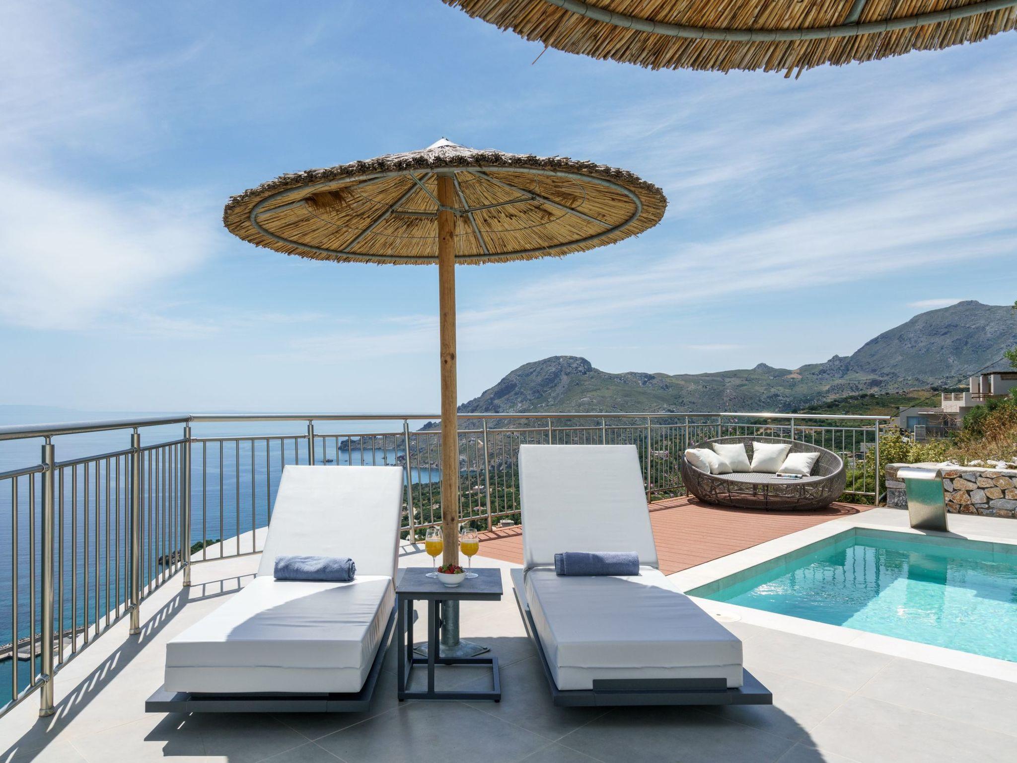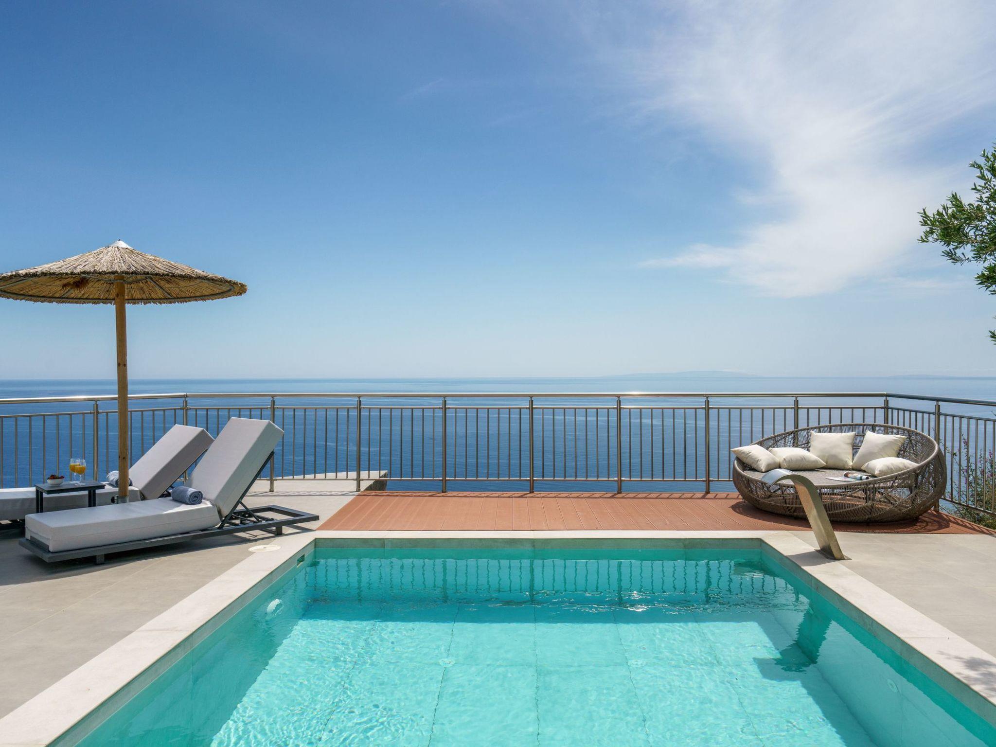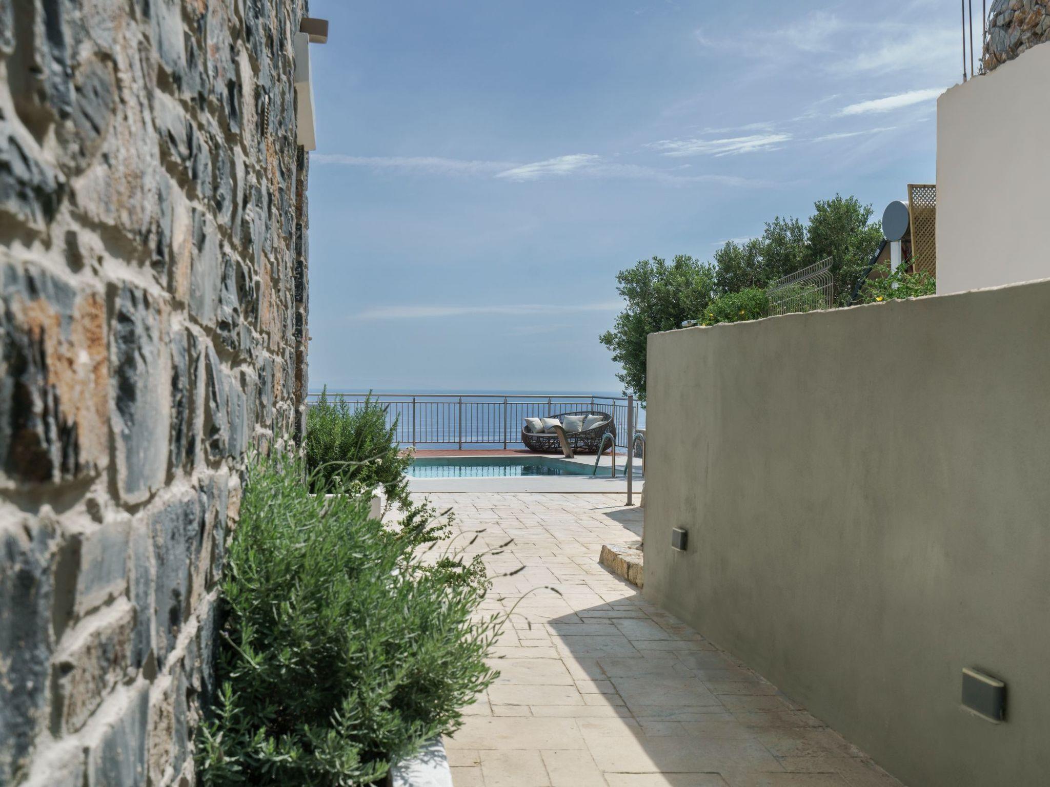 Guests can enjoy the stunning sea views and lush surroundings from the terrace. Outside, Villa Minoiko features a private garden oasis with a refreshing outdoor pool, an outdoor shower, and pool towels. A built-in BBQ area invites you to savor meals al fresco, complemented by outdoor seating and dining areas that capture the essence of Mediterranean living.