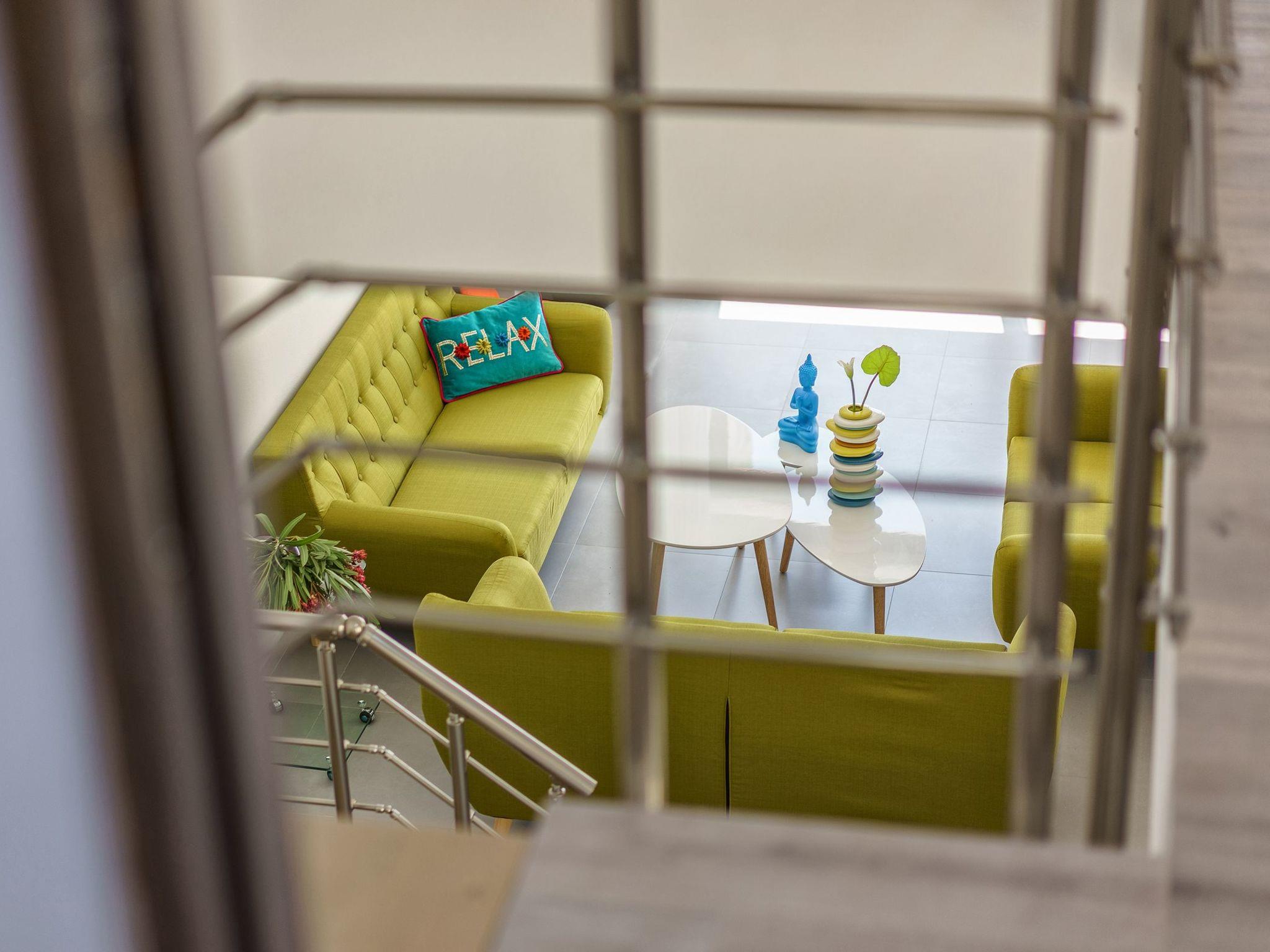 •Ground floor: Living room, kitchen, 1 bedroom with 2 single beds with air conditioning, private patio, and en suite WC/Showeroom