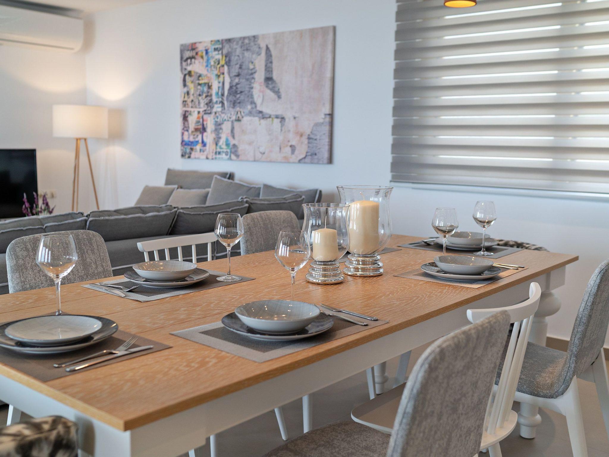 Floors Layout: •Ground floor: , Kitchen, living room with direct access to the pool (patio) TV, dining area, 1 bathroom, 1 bedroom with 2 twin beds, wardrobe, only window •First floor: 1 double master bedroom with ensuite bathroom, balcony and sea views 1 double bedroom with balcony and mountain view 1 Twin bedroom with balcony and sea views 1 Bathroom with jacuzzi