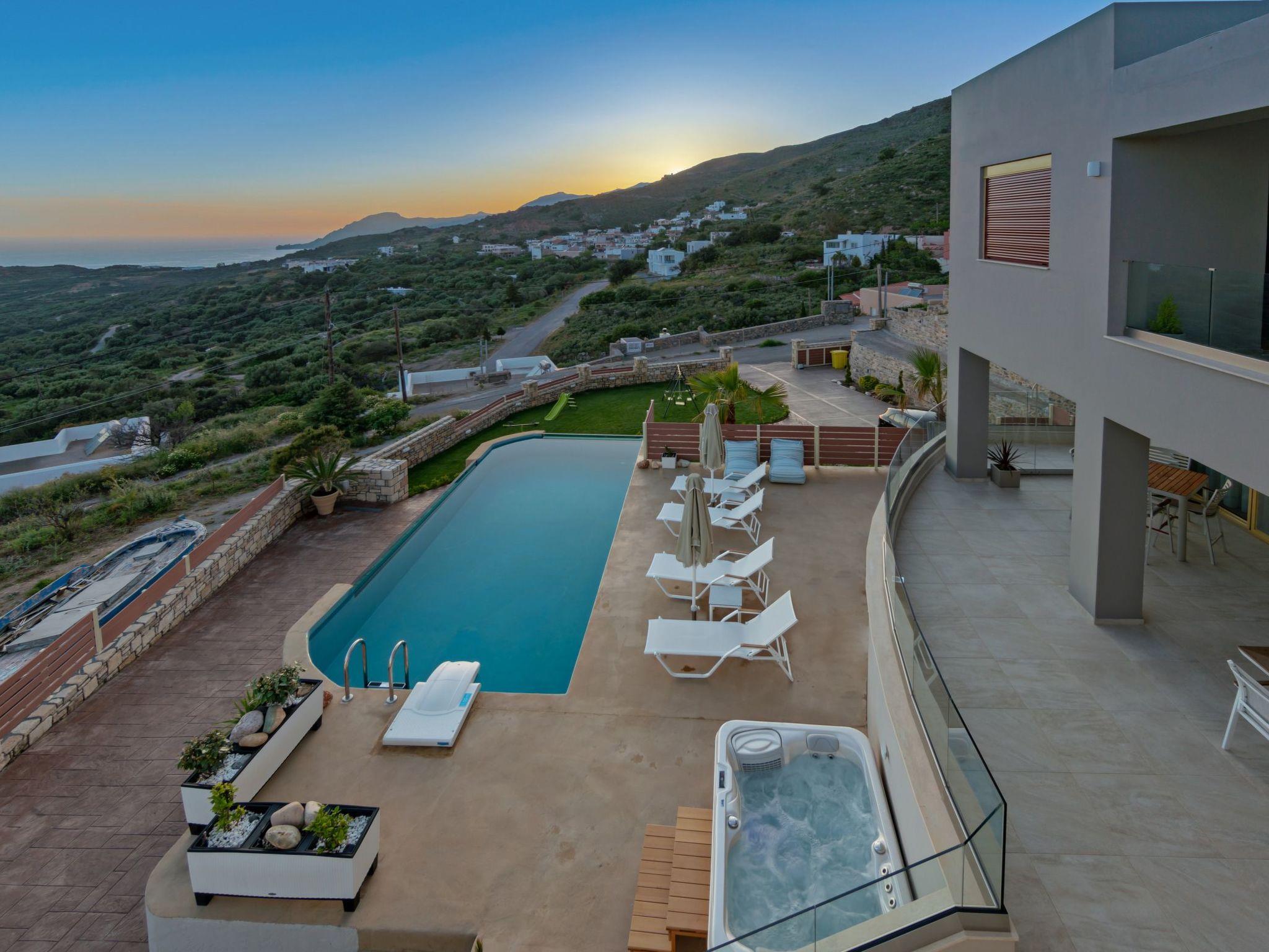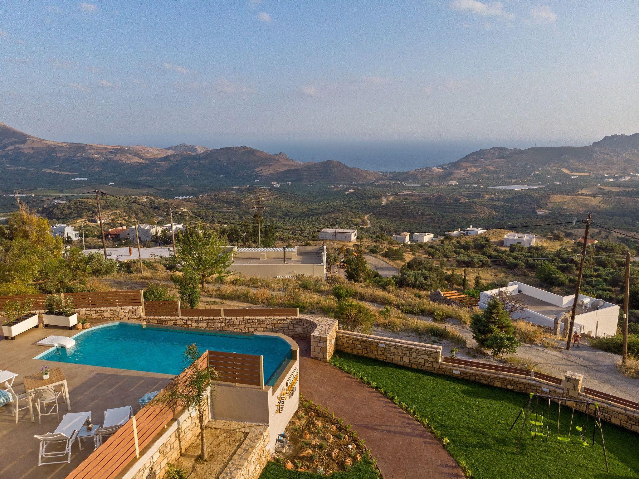 Welcome to Plakias sunset villa, located at Mariou village, at the outskirts of the lively town of Plakias in Rethymno ! Unforgettable holidays are guarantee in a beautiful villa, just 4km from the sandy beach of Plakias, restaurants and shops ! This newly built, four bedroom villa blends harmoniously with the beautiful landscape and offer gorgeous views of the Cretan sea, and the mountains. The modern and elegant decoration promises days and nights of relaxation. Plakias sunset villais a two storey house and its interior occupies a space of 200 m2. It accommodates up to 9 guests and is ideal for families and groups of friends who seek relaxation and memorable family moments. Villa features four lovely bedrooms (two double, and two with twin beds), one of which are on the ground floor and the other three on the first floor. Also, all bedrooms are sunny and airy. All bedrooms on the first floor havebalconies with breathtaking sea views. In addition there is a relaxing sitting area (veranda) on this floor where you can enjoy the beautiful sunset of Plakias. On the ground floor, is the fully equipped kitchen & the dining area with direct access to the pool where a beautiful garden with children’s playground, barbeque and table tennis are. A comfortable living room with a fireplace, located on this floor as well. The villa provides also 3 bathrooms (one with Jacuzzi). The design on both floors creates a cozy atmosphere and modern environment. In most areas you can enjoy the fantastic unobstructed view of the area and the sea! The outdoor space of Villa Plakias sunset provides everything you need for a memorable family holiday, including a 30 m2 private swimming pool, equipped with sun beds, umbrellas, where you’ll love spending your time, just enjoying the sun and the summer breeze! Furthermore, there is an outdoor sitting area, where you can treat yourself to nice glass of wine or just prepare a homemade meal in the BBQ facilities for the whole family are also available while your kids play right next to you, at the children’s playground. Spend some quality time with your loved ones and make the most out of your stay! Check out is 11:00 latest and check in is 15:00 earliest.