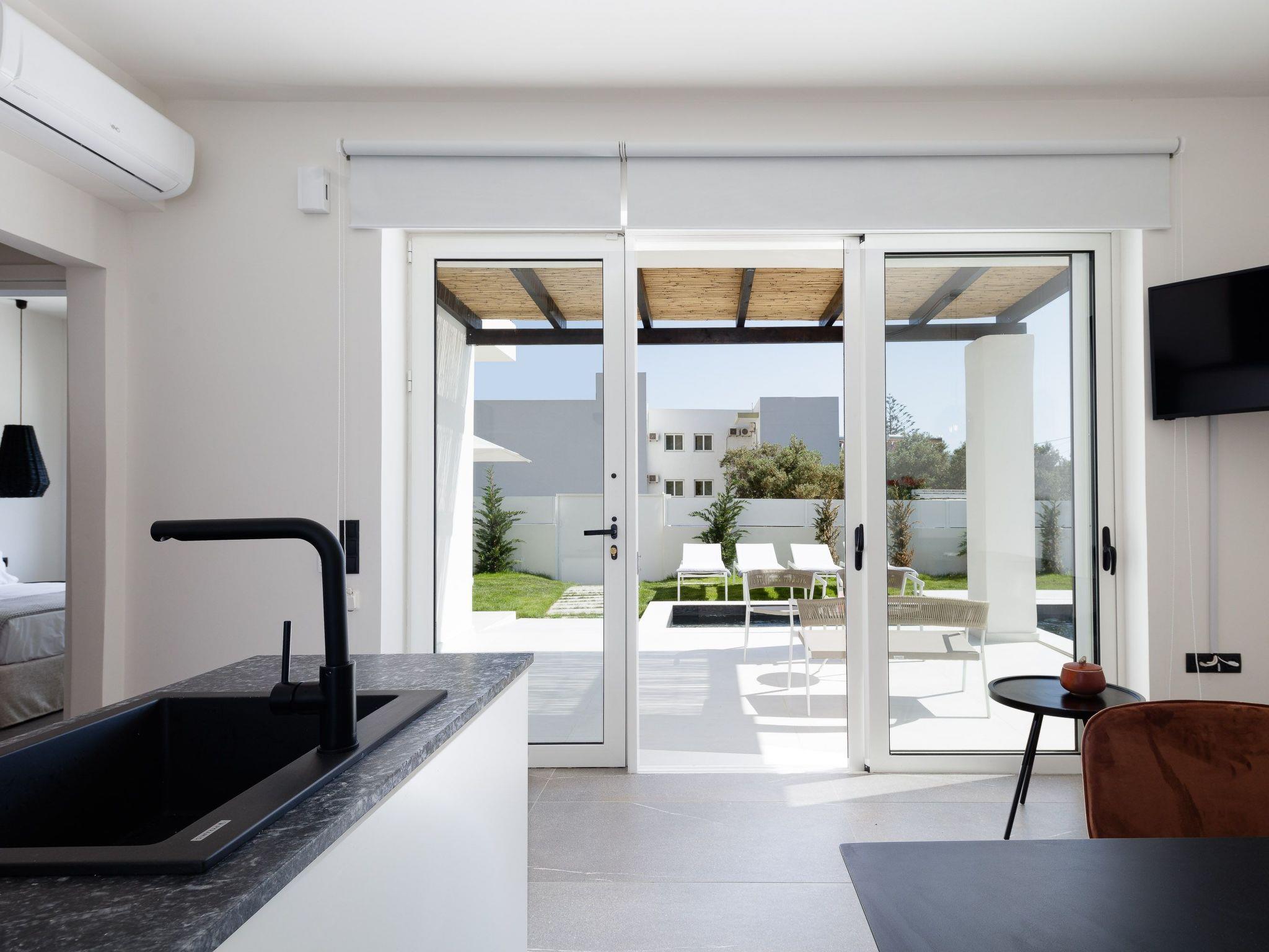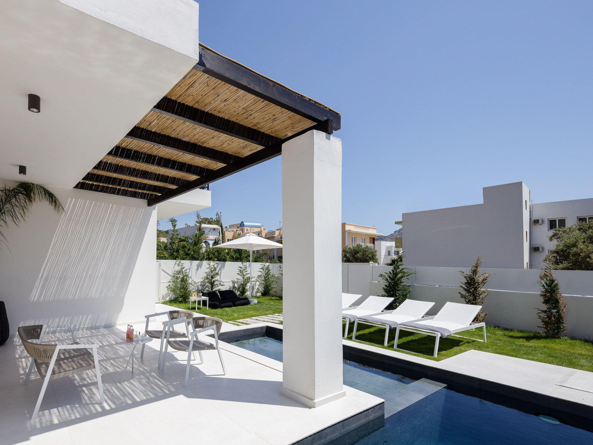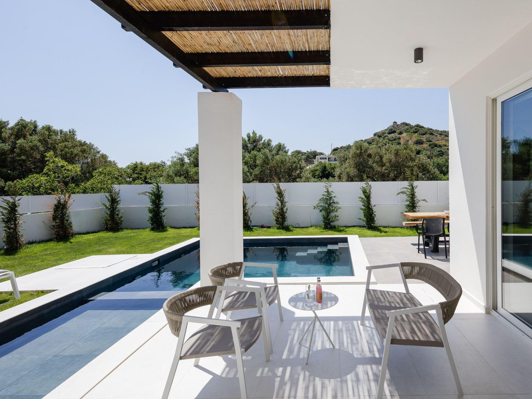 Exterior Area:-First of all, all the exterior areas of the property are private and also provide full privacy - 16m2 swimming pool and depth 1.50- 3 x 1.50 m2 kids pool and depth 0.60m- Fully equipped portable barbecue area with gas- outdoor dining tables under shadows with views to the pool and the surrounding landscape- Different places to relax under a shade or under the sun along with sun beds, umbrellas, dining tables or exterior sofas- Parking spaces