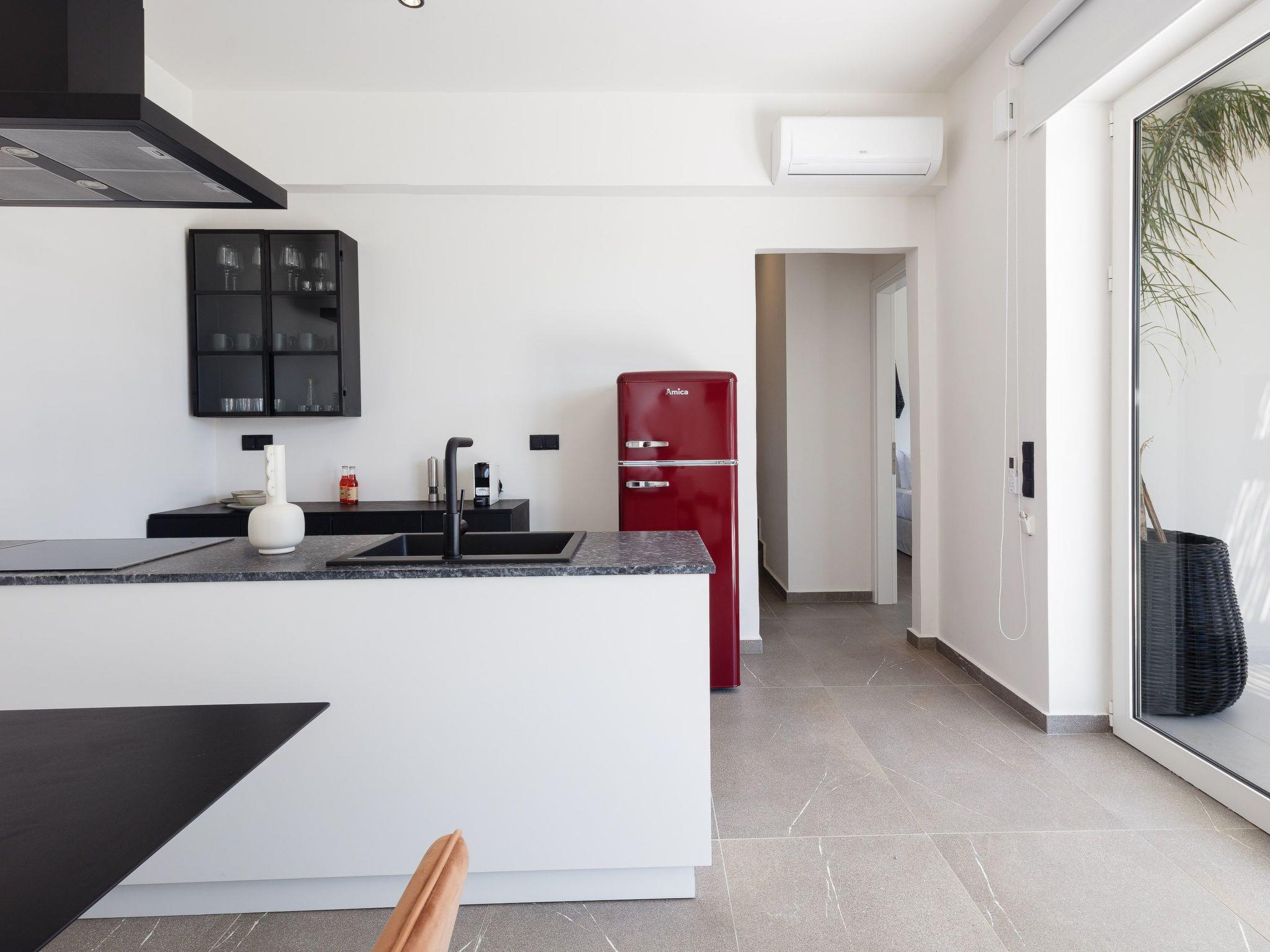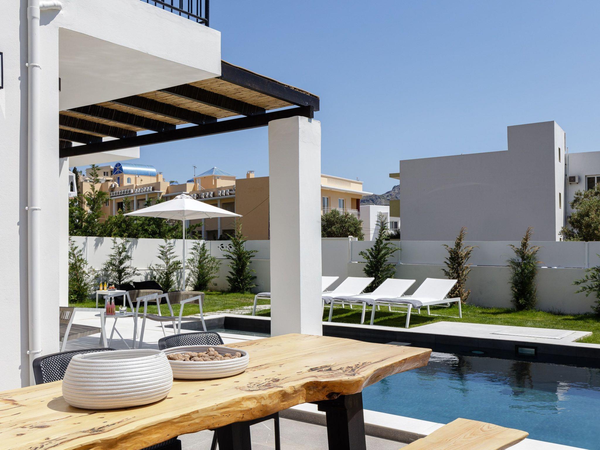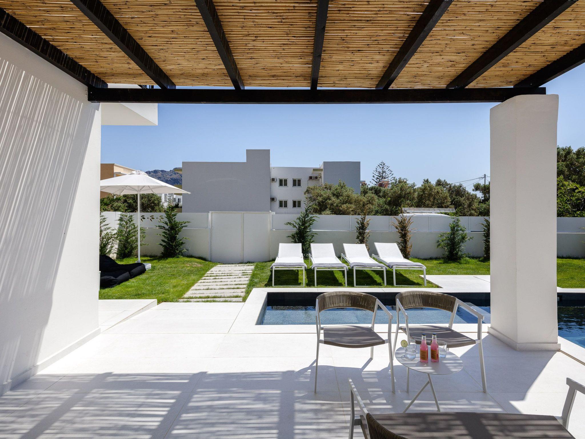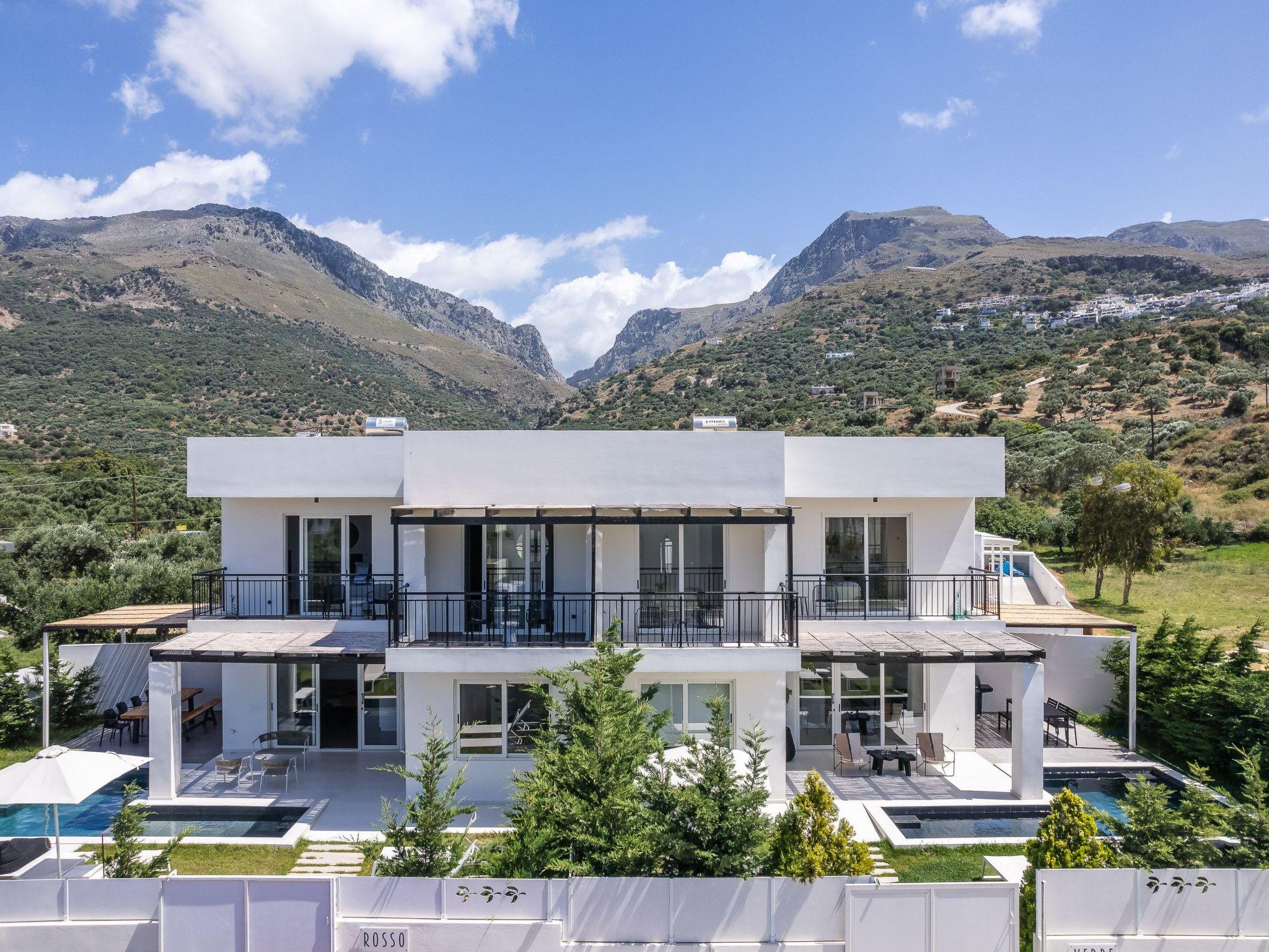 This Crete luxury villa is in the renowned holiday region of Rethymno. The Casa Filo Rosso villa can accommodate 7 adult guests in its light, airy, stylish, and relaxed setting on the ever-popular south coast of this Greek resort island.The living room is elegantly decorated in contemporary tones with ample comfortable seating for guests, a sound system, and board games for entertainment. There is air-conditioning provided throughout the premises. An open-plan kitchen and dining area also boasts a relaxed modern look and comes with all the required conveniences, including a 4-ring stove, an oven, dishwasher, freezer, fridge, toaster, microwave, a filter coffee machine, and a Nespresso.There are 3 guest bedrooms at the Casa Filo Rosso holiday villa, each with air-conditioning and 32-inch smart TVs. The sumptuous master bedroom has a king-size bed, balcony, and full ensuite bathroom, while the 2nd upstairs bedroom has also a double bed, a balcony, and a full ensuite bathroom. The downstairs bedroom has 2 single beds. There is also a WC and shower downstairs for guests. In addition, a fold-out bed is available to accommodate 1 extra guest if required and can be placed in any of the bedrooms.The villa has an exquisite outdoor entertainment area, complete with a private pool, comfortable seating, BBQ, dining facilities, and a children’s play area. Furthermore, the vacation rental offers parking for 3 vehicles. A welcome pack is provided as well as a cleaning service and amenities such as toiletries and towels.Secure your ideal Greek holiday now at Casa Filo Rosso and let its elegance envelope you in comfort and style!