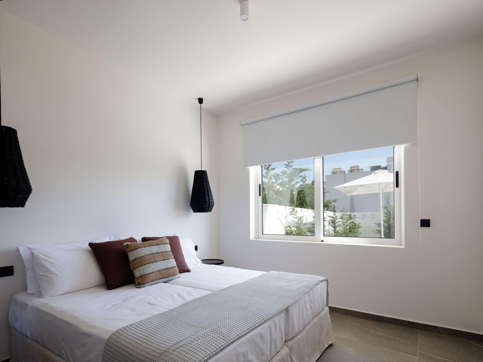 FLOOR LAYOUT•Ground floor: Kitchen and living room with direct access to the patio and pool area, dining table, 1 WC/Shower, 1 bedroom with 2 single beds, window (no balcony), A/C, TV - 32 inches •First floor: 1 master bedroom with double bed, ensuite bathroom with shower, A/C, private Balcony, TV - 32 inches and safe. 1 Bedroom with 2 single that can be made one double, ensuite bathroom/shower, A/C, private Balcony, TV - 32 inches