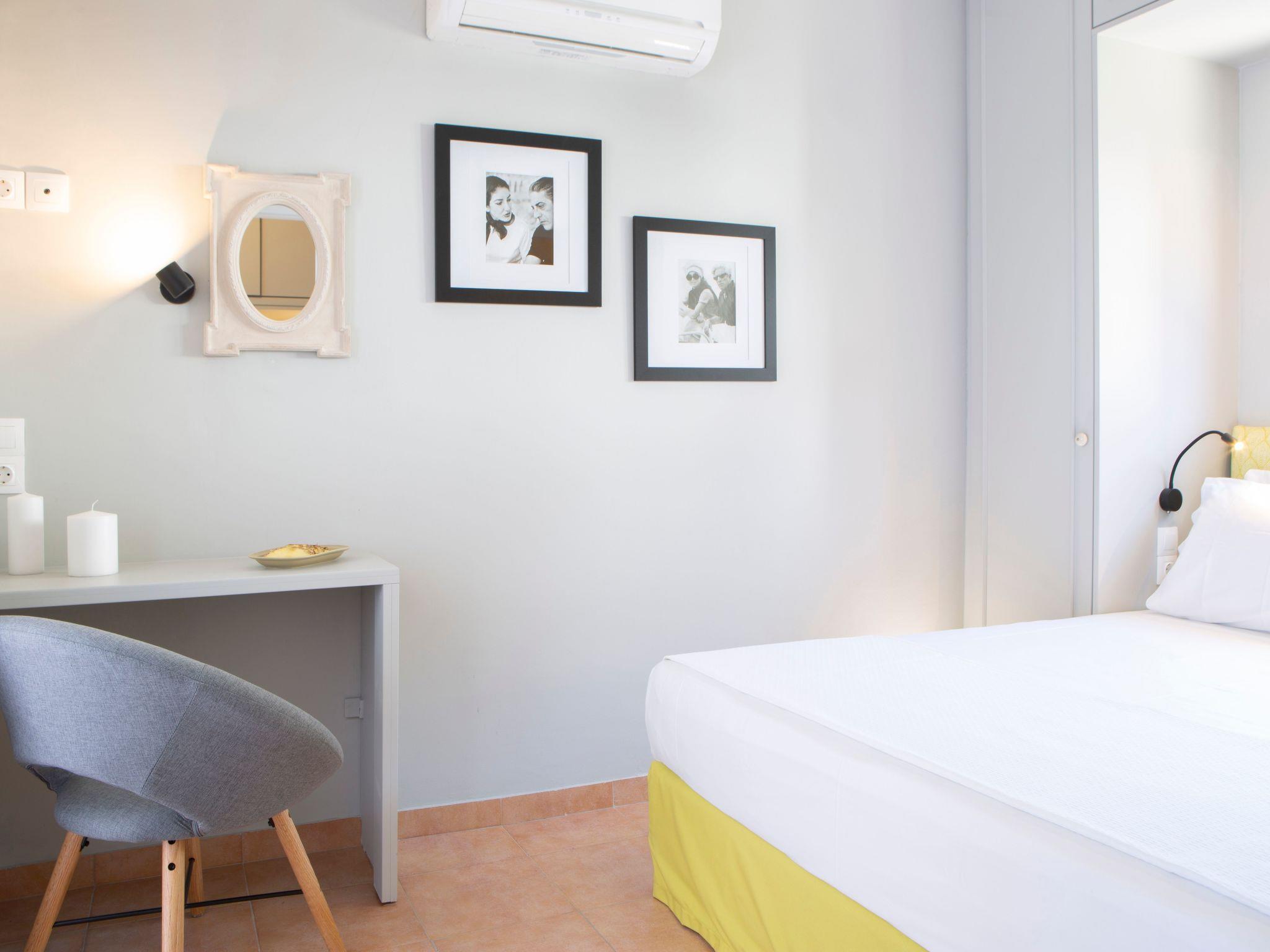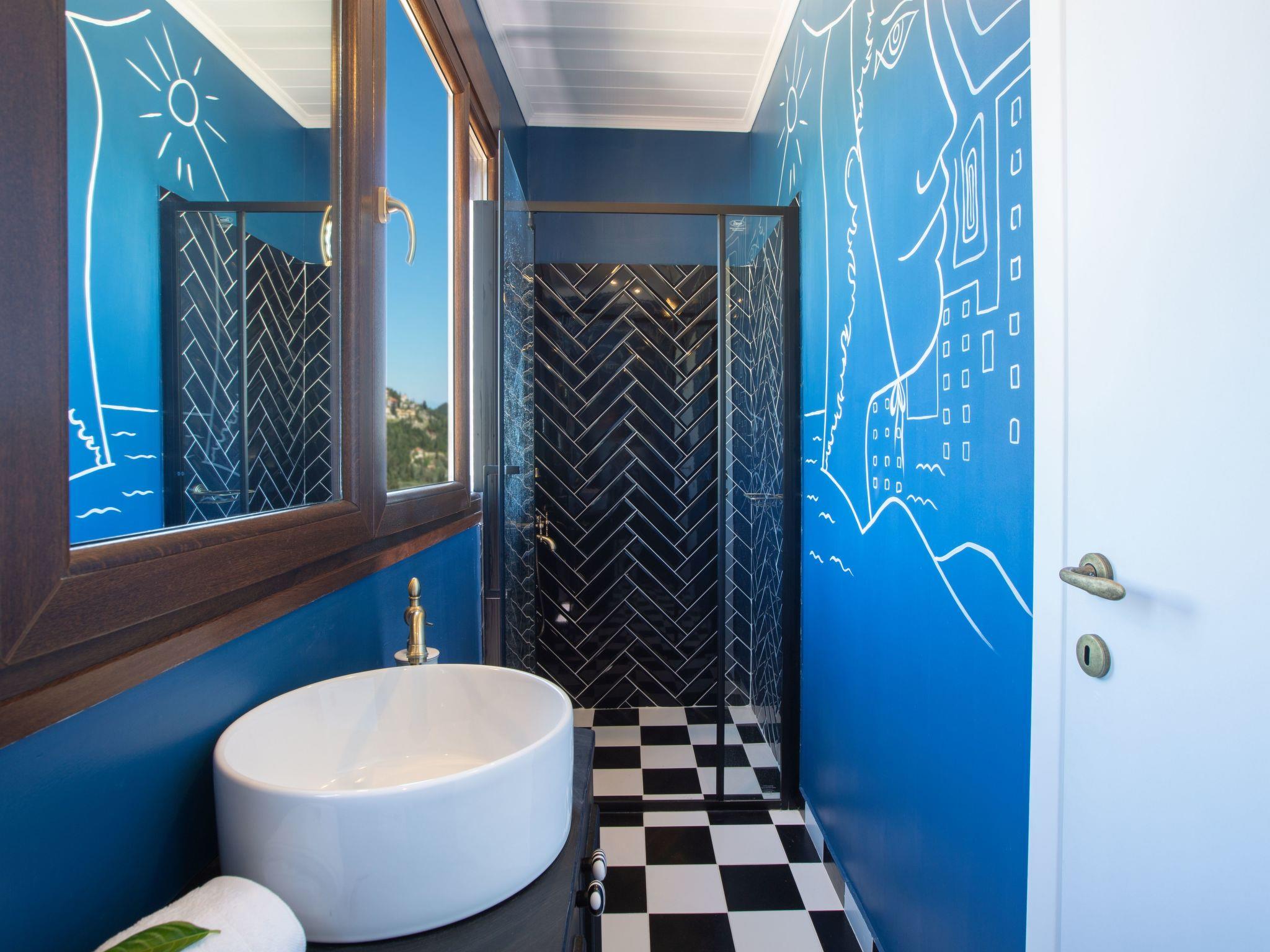 Villa Artemis is thoughtfully divided into a main house and an adjacent guesthouse, catering to privacy and space for all guests. The main house features an open plan kitchen and living area, bathed in natural light from the wide sliding glass doors that offer easy access to the swimming pool area and showcase the villa's remarkable sea views. Comfort is paramount, with two bedrooms upstairs equipped with in-room showers, en-suite WCs, and large windows that frame the unparalleled beauty of Lefkada’s seascape. The guesthouse provides additional privacy with its two single beds, which can be transformed into a king-size bed upon request, accompanied by an en-suite shower room and WC, ensuring every guest enjoys a personalized and restful stay.