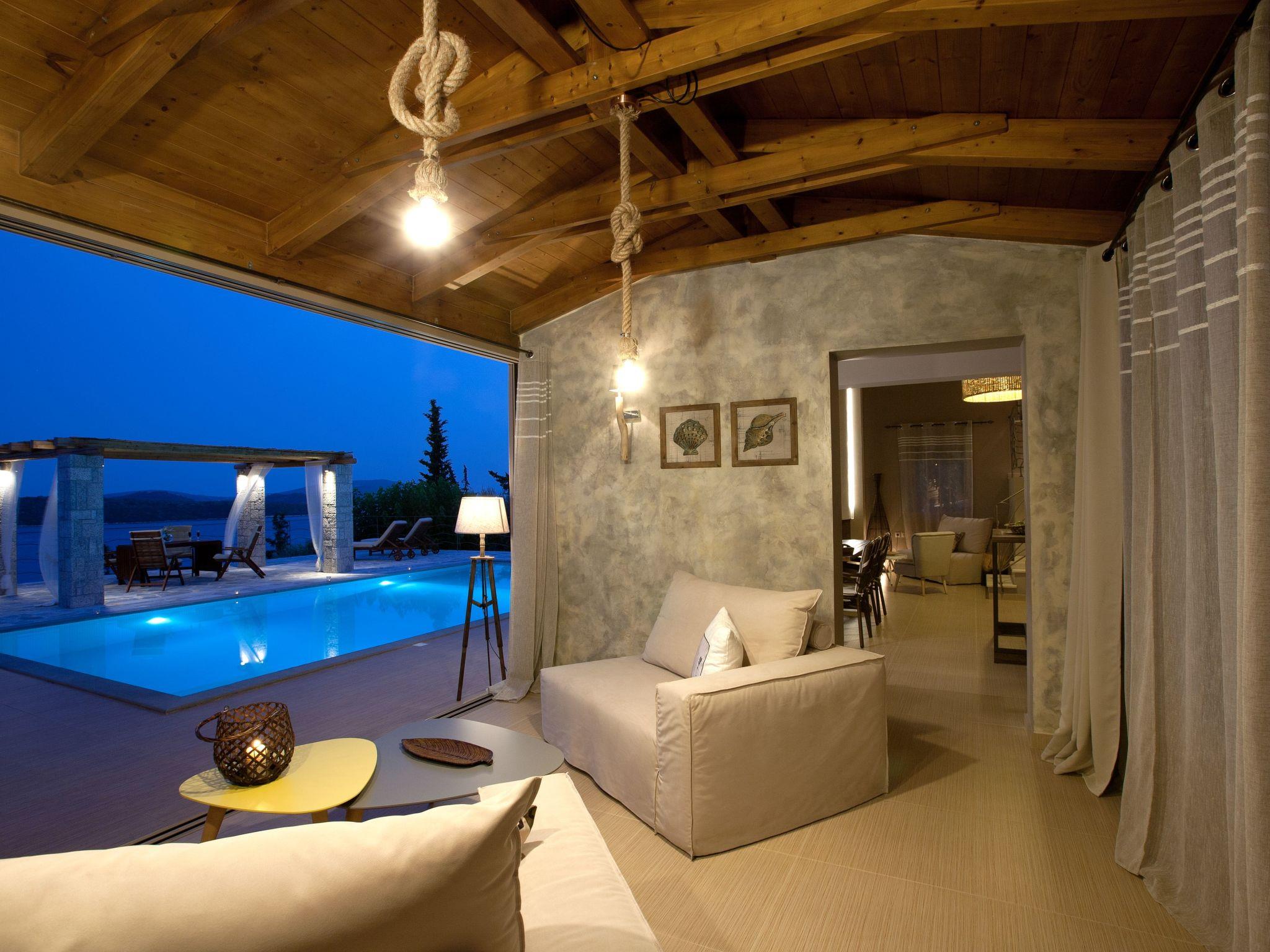 Perched just above the sea amidst lush olive groves, this is a unique luxurious villa combining traditional Greek style with ultra modern design. Upon entering the villa the attention to detail in the design is immediately notable, detail that creates a harmonious feeling of holiday and relaxation.