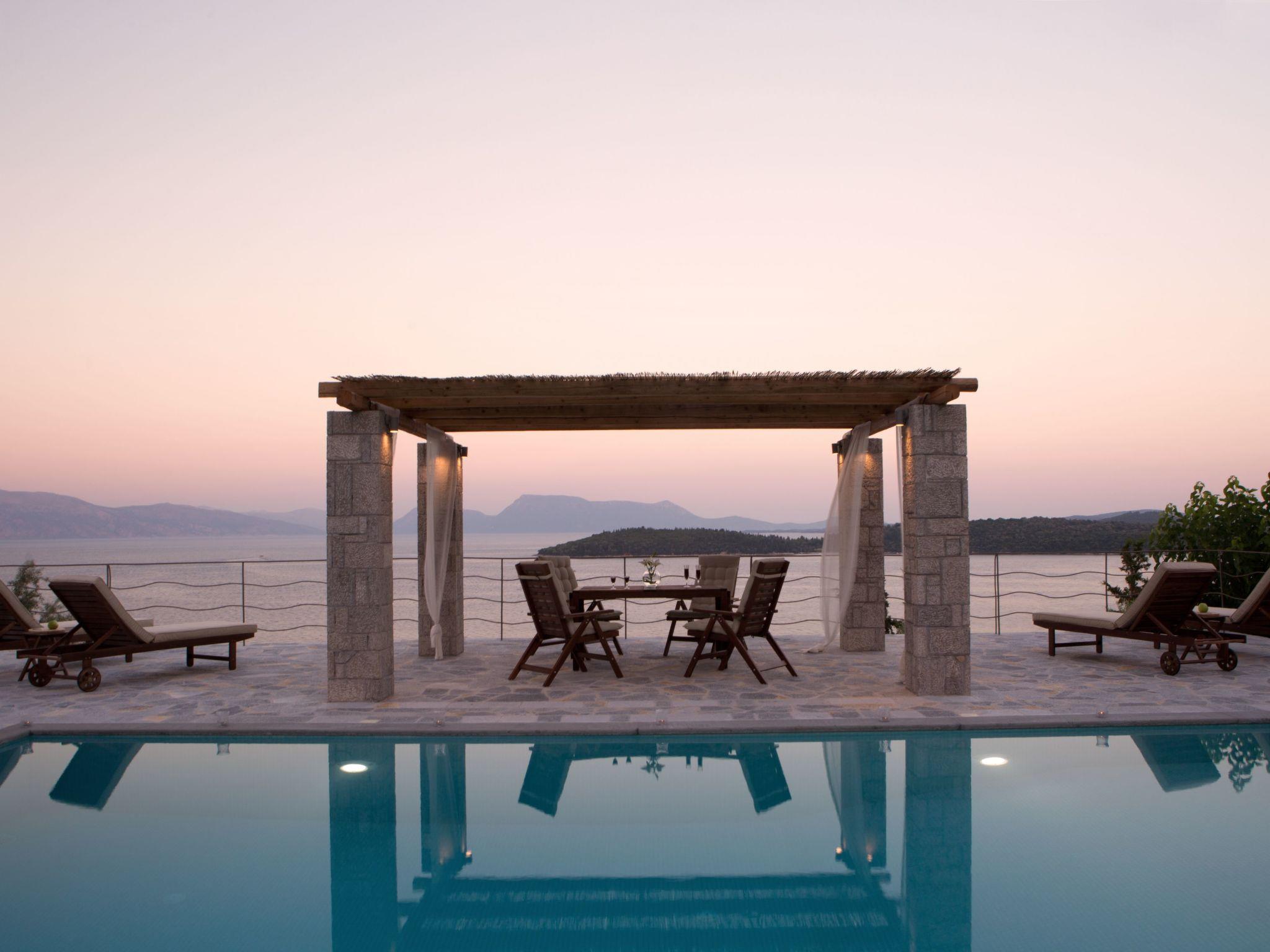 The luxurious villas are located on the magestic rock face , elevated 40 meters above sea level at ‘’Passas’’ Perigiali Lefkada. The unique location allows a breathtaking panoramic view of the satellite islands , the famous Scorpios , the evergreen Sparti , the poetic Mathouri and the magnificent Megannisi , within the magestic crystal clear blue waters of the Ionian Sea.