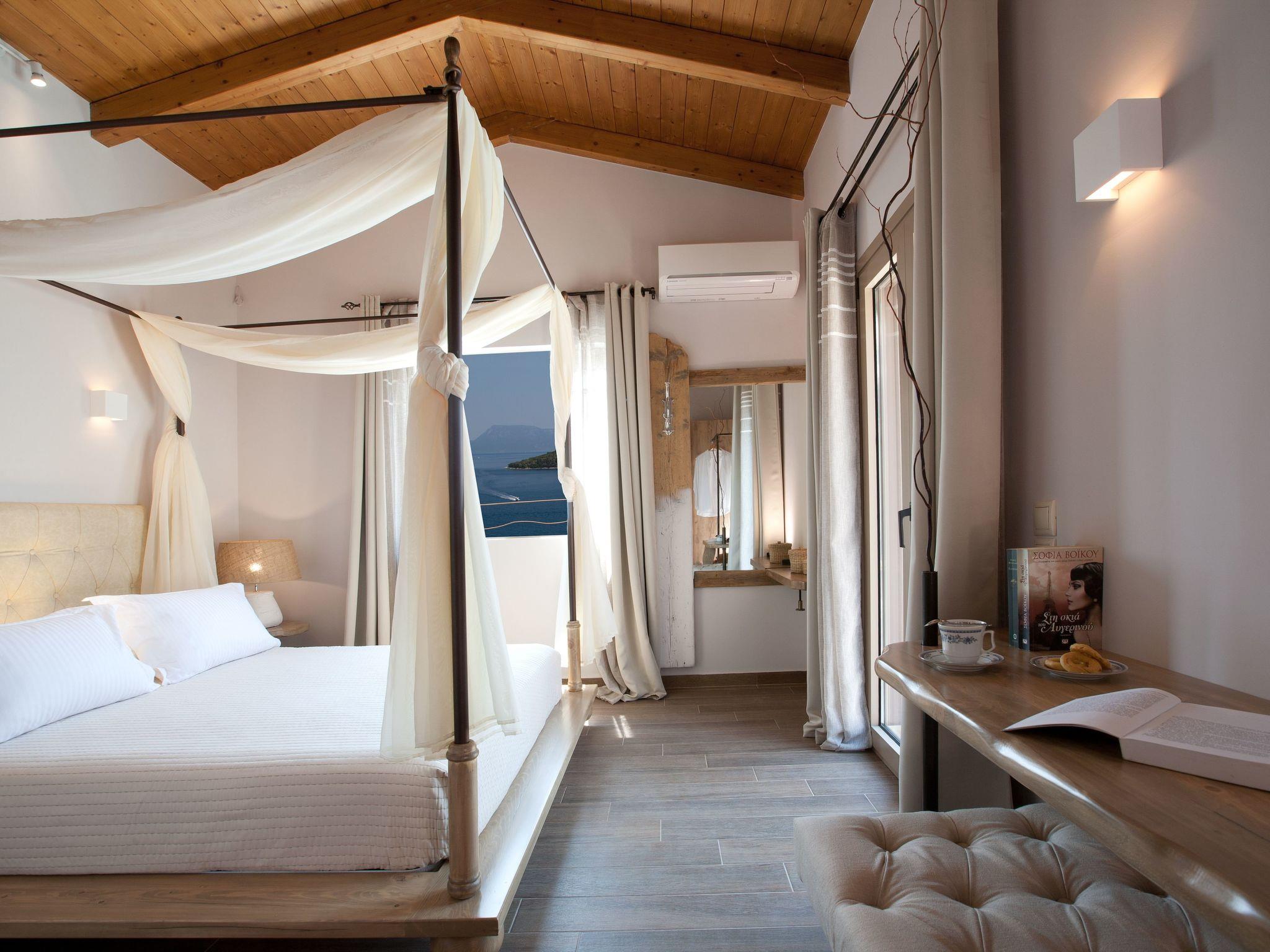 The villas are very close to the beaches of Passas and near Nidri and are uniquely designed with individual private pools having unobstructed views of the sea , both from within and out and are decorated and fully furnished with a combined rustic and modern decor using simple but impressive lines , materials of metal and wood , airy fabrics and bright colours blending harmoniously within the natural surroundings.