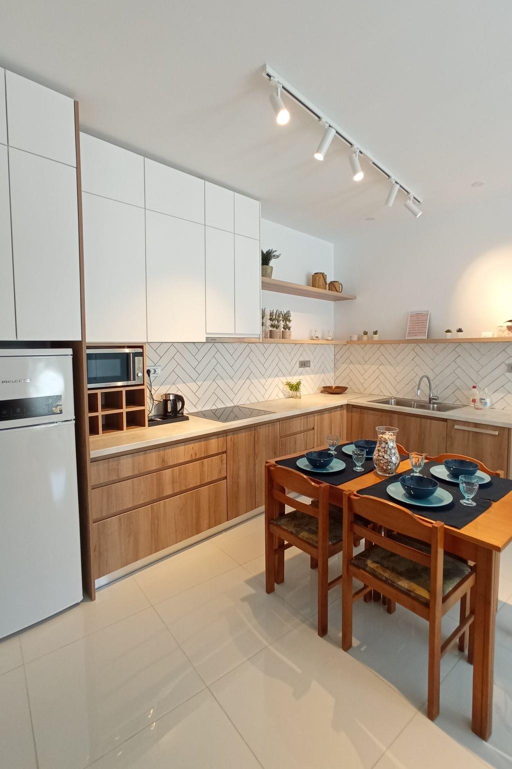 Inside, the house boasts all the necessities and comforts for a hassle-free vacation. The air-conditioned interior offers a cool respite from the summer heat, ensuring every moment spent indoors is enjoyable. A fan is also available to add an extra breeze to your stay. The holiday house includes a well-equipped living room with a flat-screen TV, ideal for unwinding after a day full of activities. Other modern conveniences include a washing machine for sole use, ensuring you can pack light and keep your holiday attire fresh. The kitchen, outfitted with a Ceran hob, coffee machine, and electric kettle, allows you to prepare your favorite meals with ease.