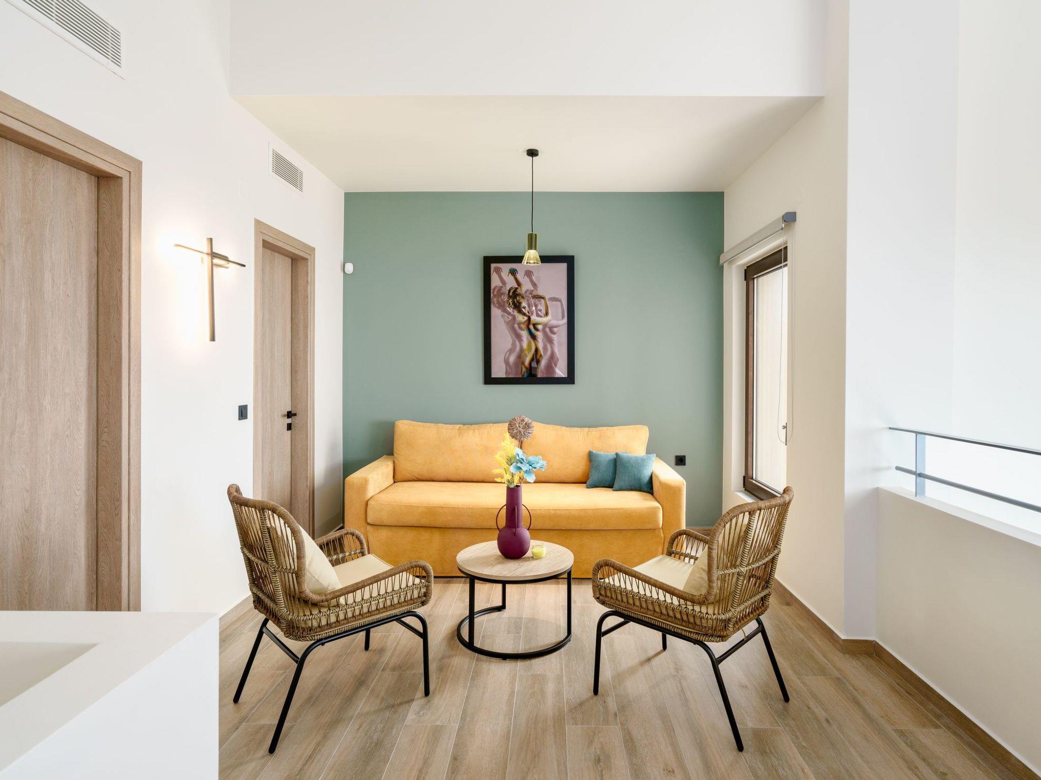 Living area with a sofa that can be converted into two single beds (0.90*2.00) upon request at an extra cost